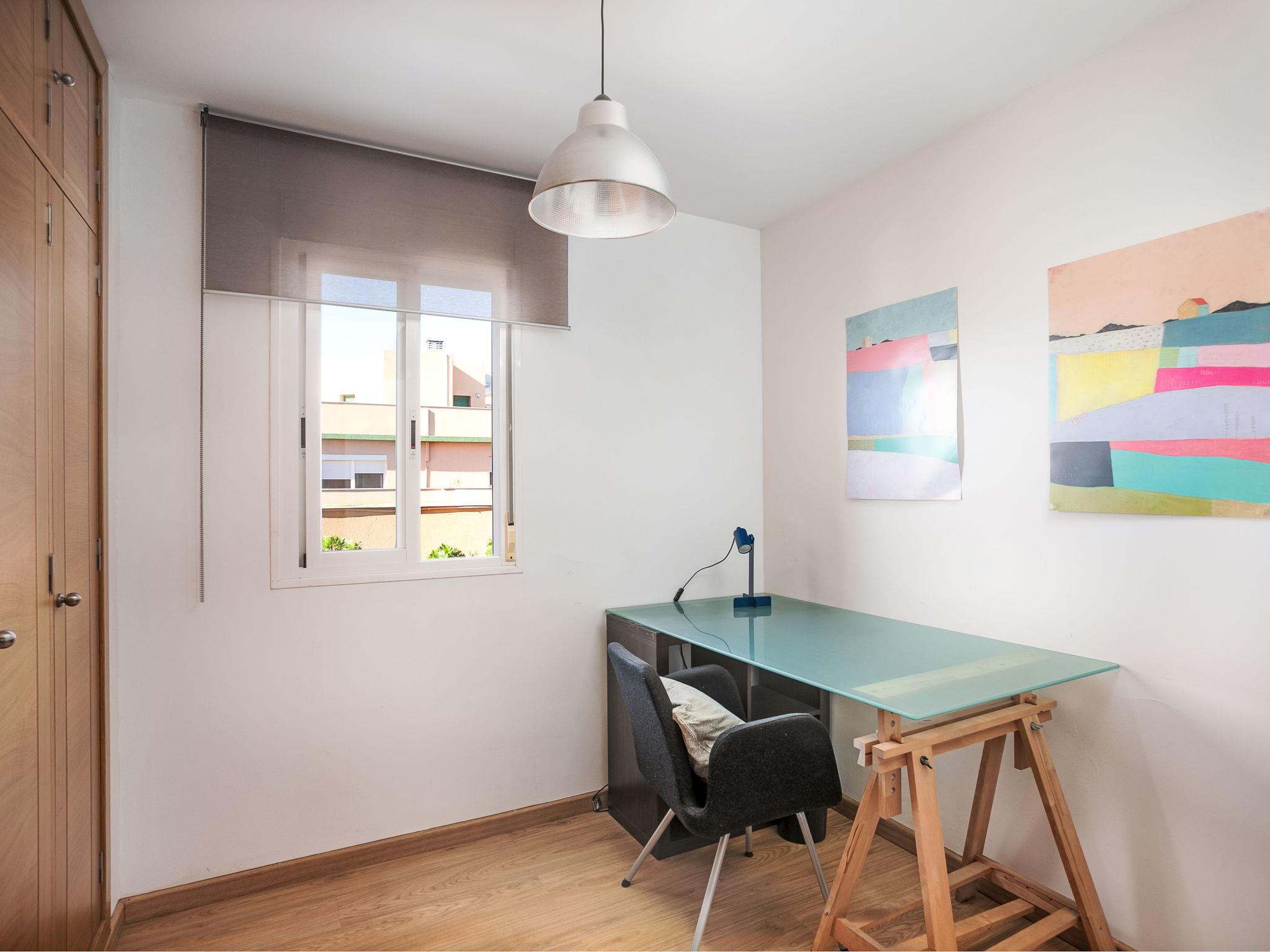 "Pinillo", 4-Zimmer-Wohnung 100 m2, im Dachgeschoss. Objekt geeignet für 4 Erwachsene + 2 Kinder. Geräumig und hell, schön und modern eingerichtet: Wohn-/Esszimmer mit Esstisch, Sat-TV, Klimaanlage und Warmluftheizung. Ausgang zur Terrasse. 1 Doppelzimmer mit 1 franz. Bett (150 cm), Klimaanlage und Warmluftheizung. Ausgang zur Terrasse. 1 Doppelzimmer mit 2 Betten (90 cm). 1 Doppelzimmer mit 1 Ausziehbett (2 x 80 cm, Länge 160 cm). Küche (Backofen, Geschirrspüler, 3 Induktionskochplatten, Toaster, Wasserkocher, Mikrowelle, Tiefkühler, elektrische Kaffeemaschine). 2 Duschen/WC. E-Heizung. Grosse Terrasse 60 m2. Terrassenmöbel, Gartengrill. Panoramasicht. Zur Verfügung: Waschmaschine, Bügeleisen, Haartrockner. Internet (WLAN, gratis). Parkplatz Nr. 24. VFT/MA/21269 // Reg. Nr.: ESFCTU0000290210007428320000000000000000VFT/MA/212690