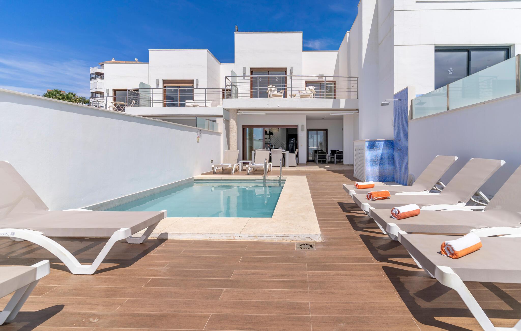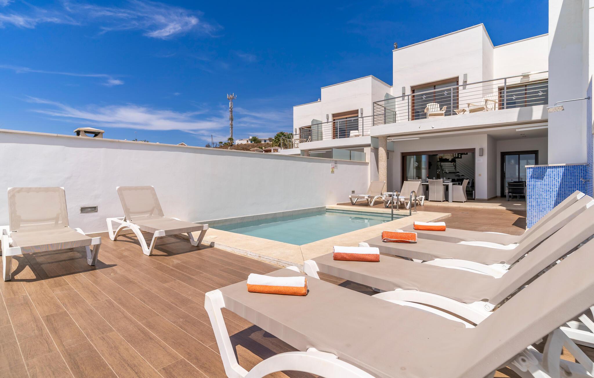 Verbringen Sie einen herrlichen Urlaub in diesem komfortablen Ferienhaus mit Pool und Meerblick.
