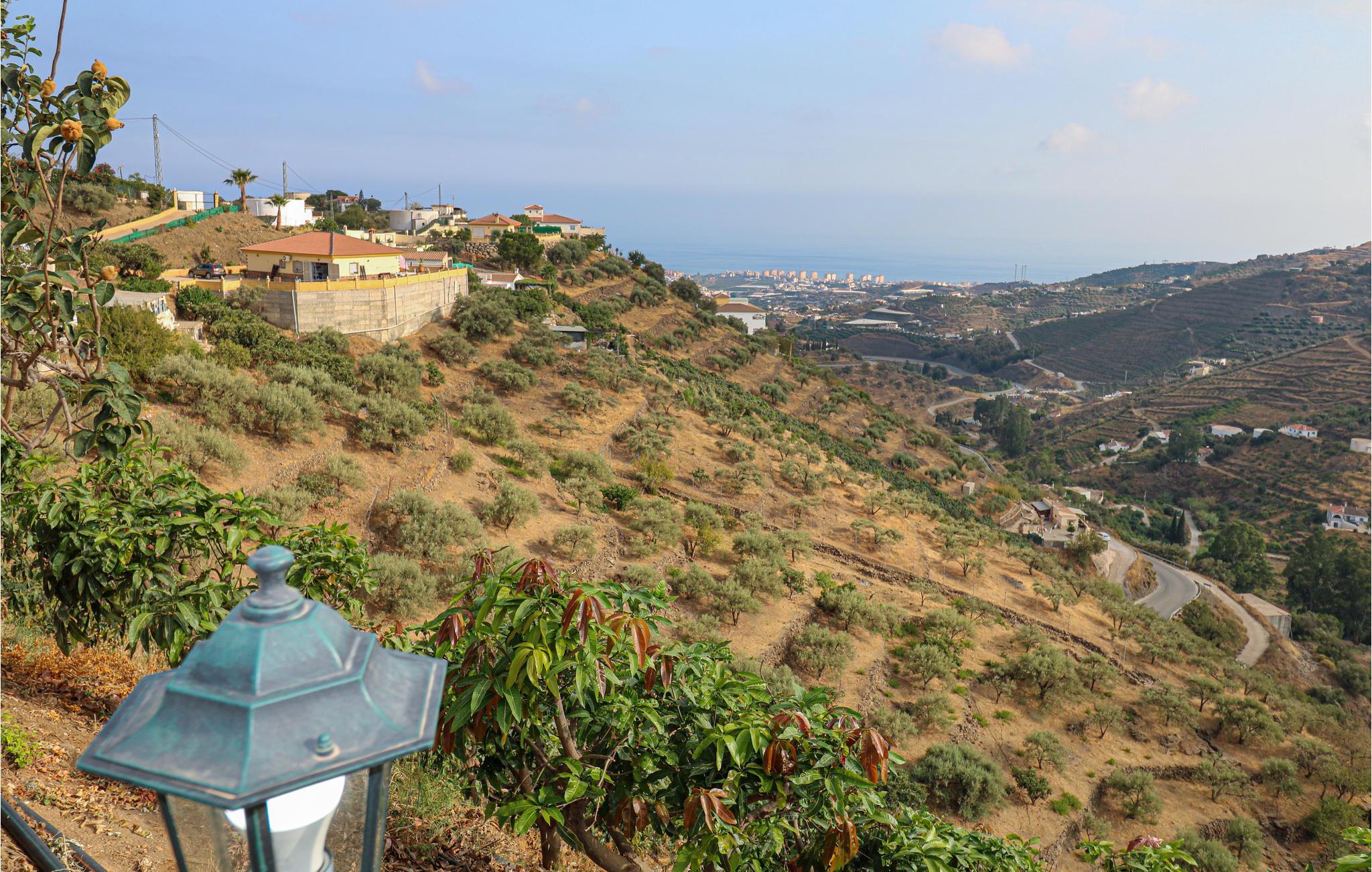 Blicken Sie oberhalb von Torrox auf die umliegenden Berge und das Meer.