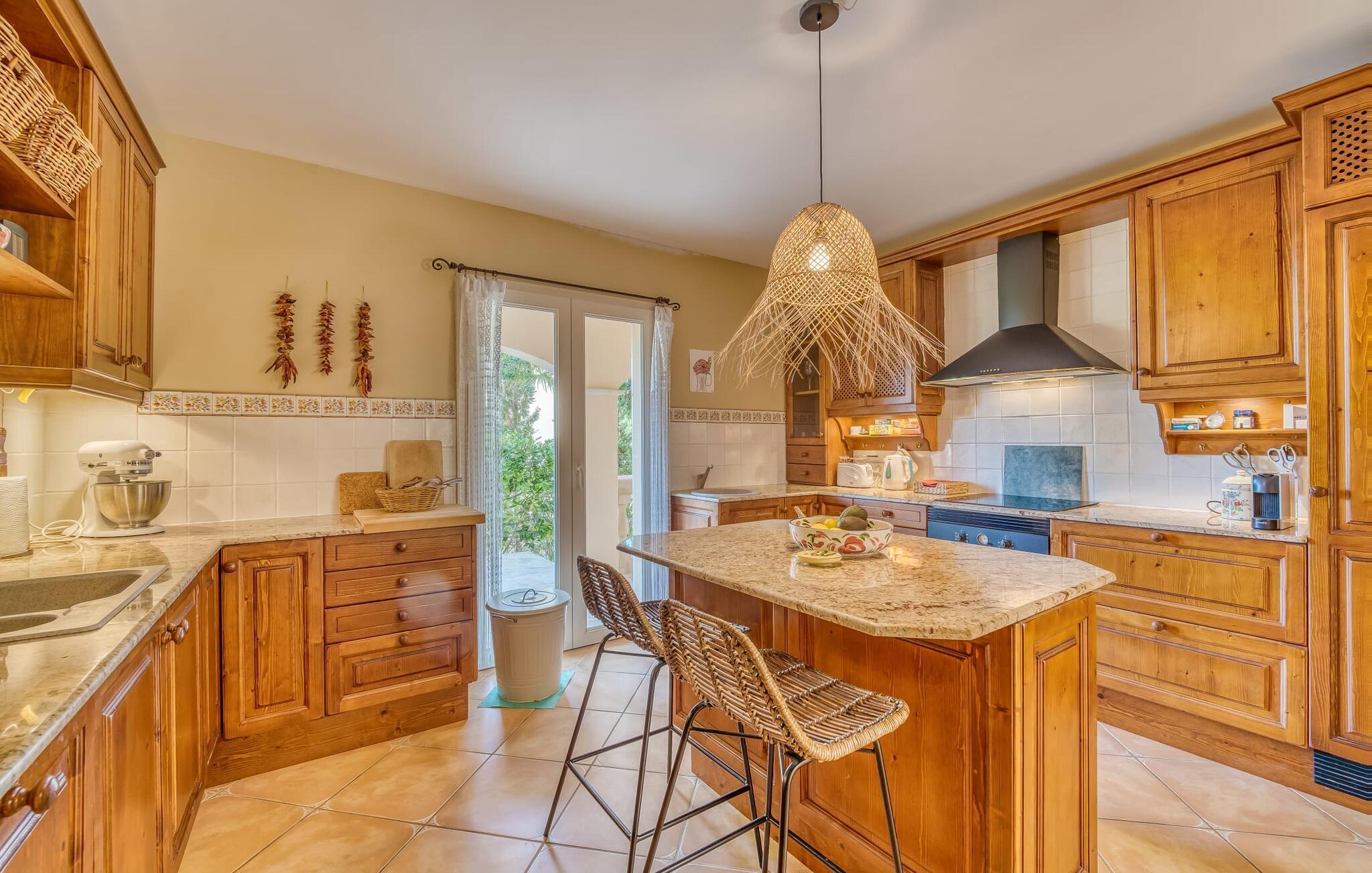 Es verfügt über einen Natursteinboden, bequeme Liegen, eine Außendusche und einen erfrischenden Pool, der über eine römische Treppe leicht erreichbar ist, ergänzt durch eine atemberaubende Aussicht, die die Alltagssorgen sofort dahinschmelzen lässt. Es ist der perfekte Ort, um sich zu entspannen, zu lesen, Yoga zu üben oder in der kleinen Außenküche zu kochen und Mahlzeiten im Freien zu genießen. Für Fitnessbegeisterte gibt es zwei 15 kg Hanteln, zwei Yogamatten und ein TRX-Band. Die großzügigen Terrassen- und Balkonbereiche der Villa, sowohl überdacht als auch offen, gewährleisten Privatsphäre für alle Gäste.