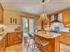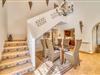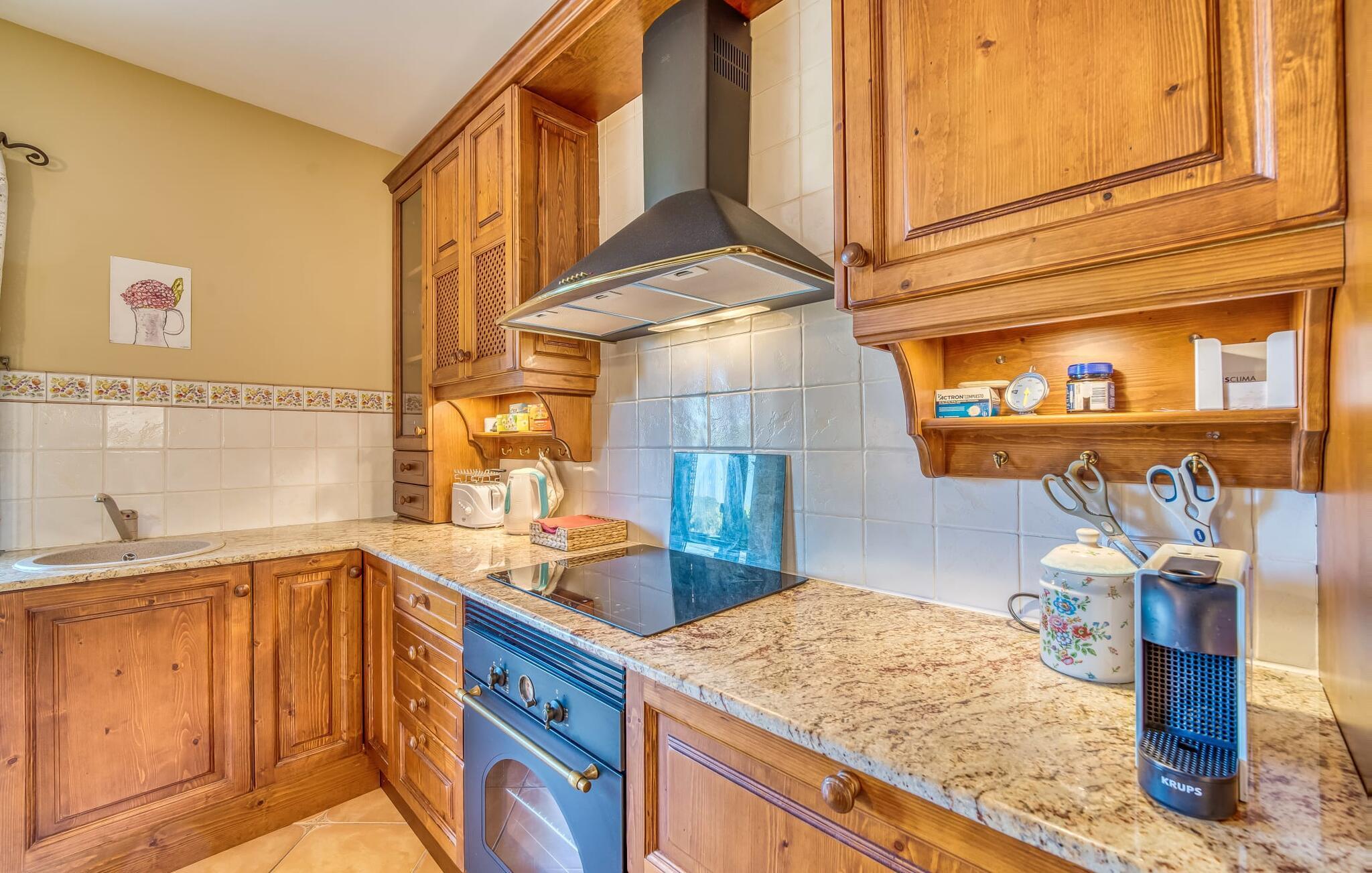 Das Haus ist von mehreren Punkten auf der Terrasse aus zugänglich. Im Inneren bietet das Wohnzimmer mit großem Sofa, TV und Kamin einen entspannenden Rückzugsort. Ein halbrunder Gang führt zum Essbereich, der mit einer geräumigen, voll ausgestatteten Küche mit einem kleinen Sitzbereich verbunden ist. Ein Schlafzimmer mit Doppelbett und ein Badezimmer befinden sich im Erdgeschoss, während sich im Obergeschoss zwei weitere Schlafzimmer (eines mit begehbarem Kleiderschrank) und ein zweites Duschbad befinden.