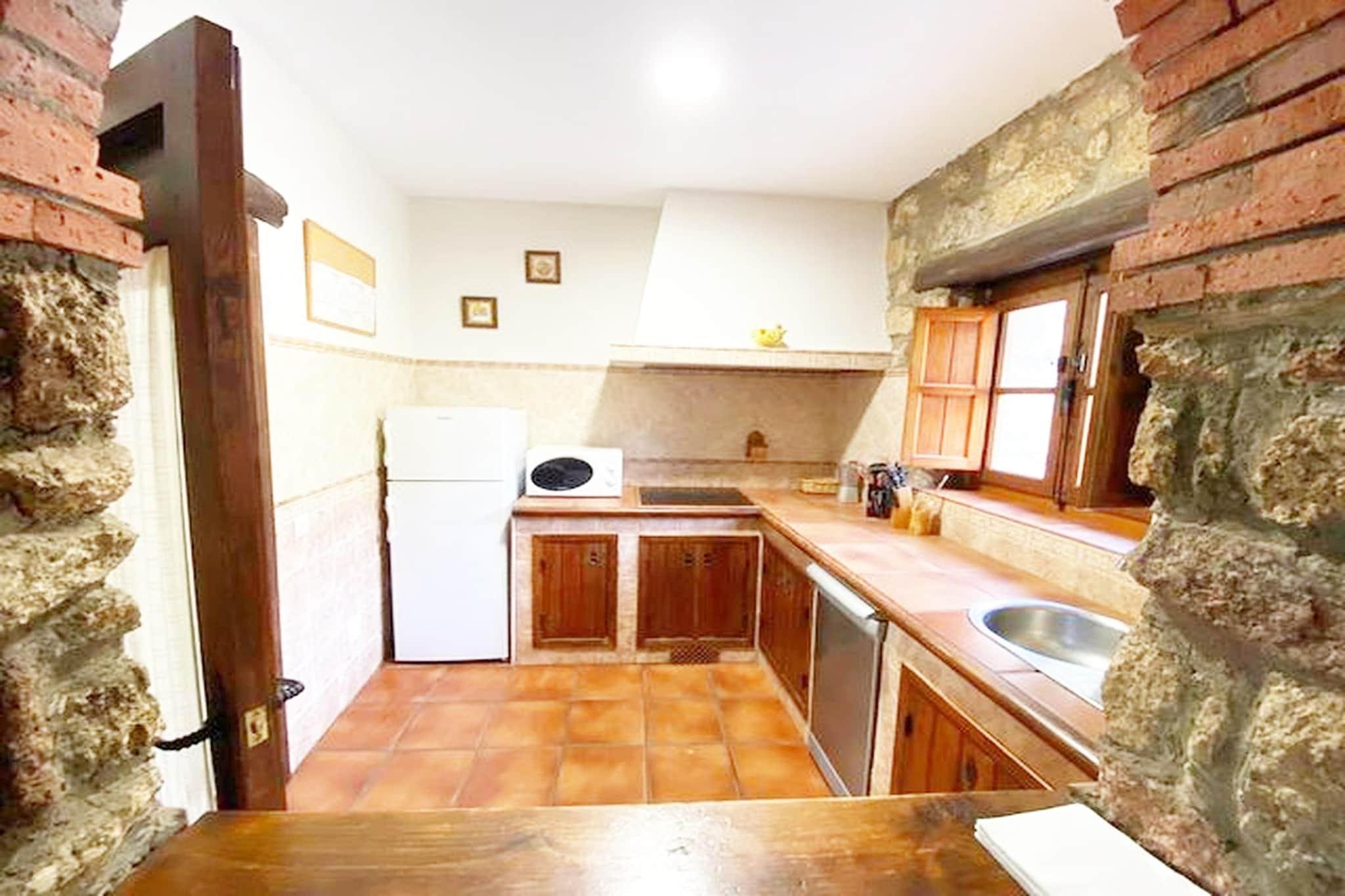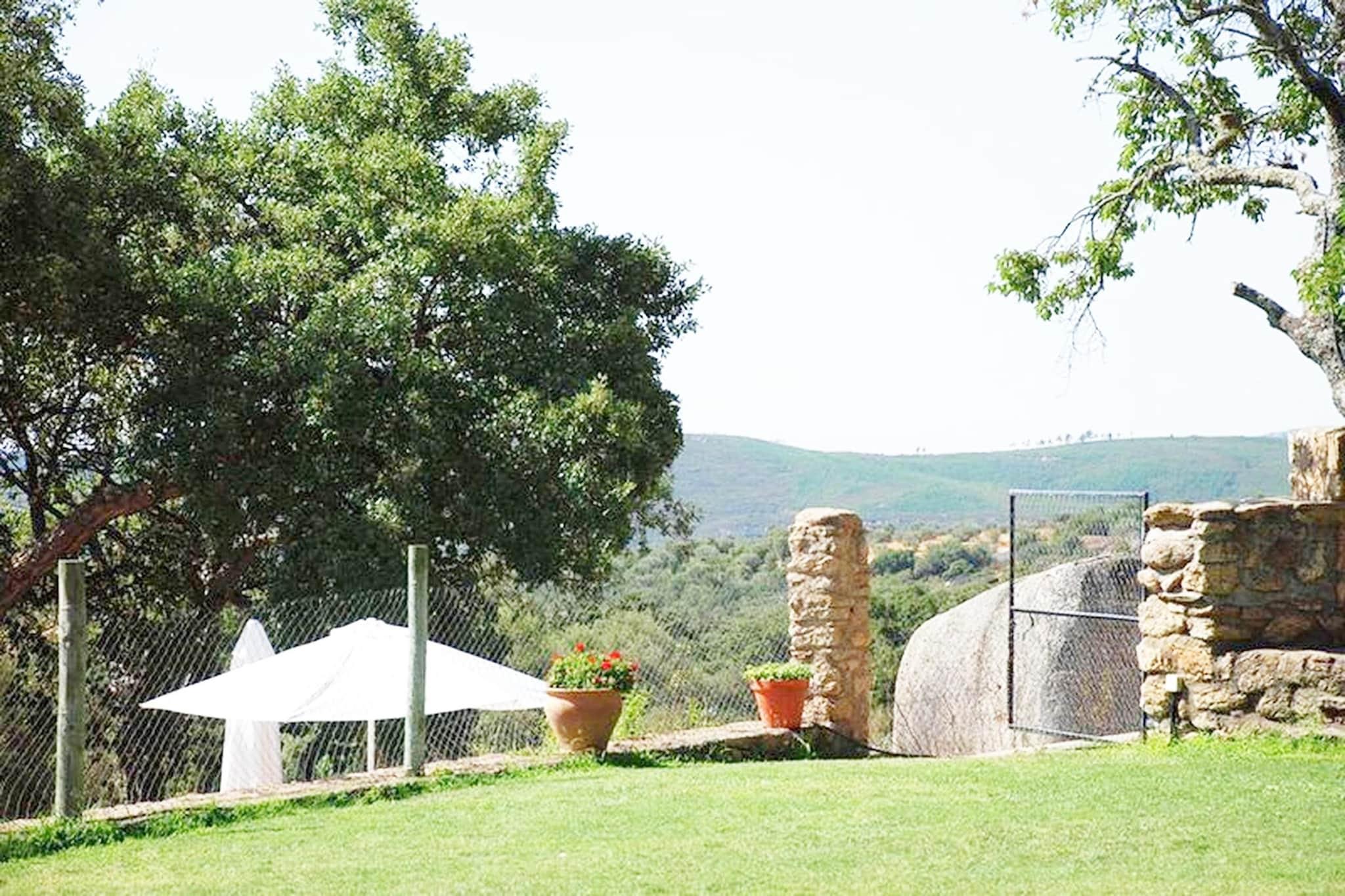 Tief in der wilden Schönheit von Valencia de Alcántara gelegen, bietet dieses abgeschiedene Bergrefugium die seltene Gelegenheit, abzuschalten und die Natur neu zu entdecken. Erreichbar über eine 4,5 km lange Schotterstraße, liegt das Anwesen einsam in einer Landschaft aus sanften Tälern, imposanten Gipfeln und absoluter Ruhe – ein perfekter Rückzugsort für Gruppen von bis zu zwölf Gästen, die Ruhe, Privatsphäre und den Charme der Natur suchen. Mit atemberaubenden Ausblicken in alle Richtungen lädt dieses Haus zu entspannten Morgenstunden, langen Gesprächen und sternenklaren Nächten ein. Im Inneren ist das Haus warm, geräumig und auf gemeinsames Beisammensein ausgerichtet. Drei einladende Wohn- und Esszimmer, jeweils mit Kamin, Fernseher und bequemen Sitzgelegenheiten, bieten viel Platz zum Verweilen und Entspannen. Die drei Küchen machen das Kochen für eine große Gruppe einfach und angenehm. Auf zwei Etagen erwarten Sie sechs gemütliche Schlafzimmer, die zum Entspannen nach erlebnisreichen Tagen einladen: Doppelzimmer für Paare und Zweibettzimmer, ideal für Familien oder Freunde. Das Haus bietet außerdem drei funktionale Badezimmer mit Dusche, WC, Waschbecken und Handtüchern. Draußen wird die Natur zu Ihrem privaten Spielplatz. Genießen Sie Mahlzeiten auf der Terrasse mit Panoramablick, entspannen Sie in der schattigen Hängematte oder erfrischen Sie sich an warmen Nachmittagen im privaten Pool. Der Garten und der Grillplatz laden zu langen Abenden im Freien ein, umgeben von frischer Luft und der Bergkulisse. In der Nähe erwartet Sie das charmante Valencia de Alcántara mit seinen malerischen Wanderwegen, prähistorischen Dolmen und der historischen Altstadt. Die an Portugal grenzende Region bietet zudem ideale Bedingungen für Tagesausflüge nach Marvão und Castelo de Vide. Ob Sie die Natur, die Geschichte oder einfach nur ruhige Momente mit Ihren Liebsten suchen – dieses Berghaus verspricht einen unvergesslichen Aufenthalt.