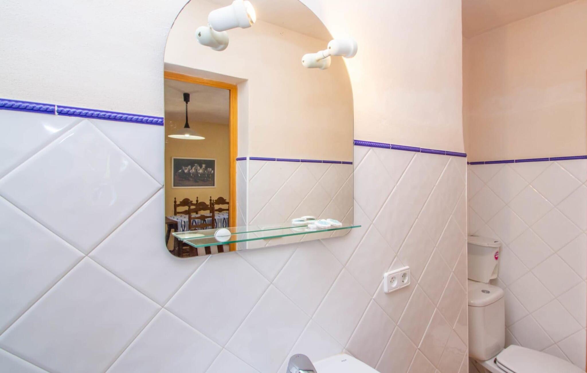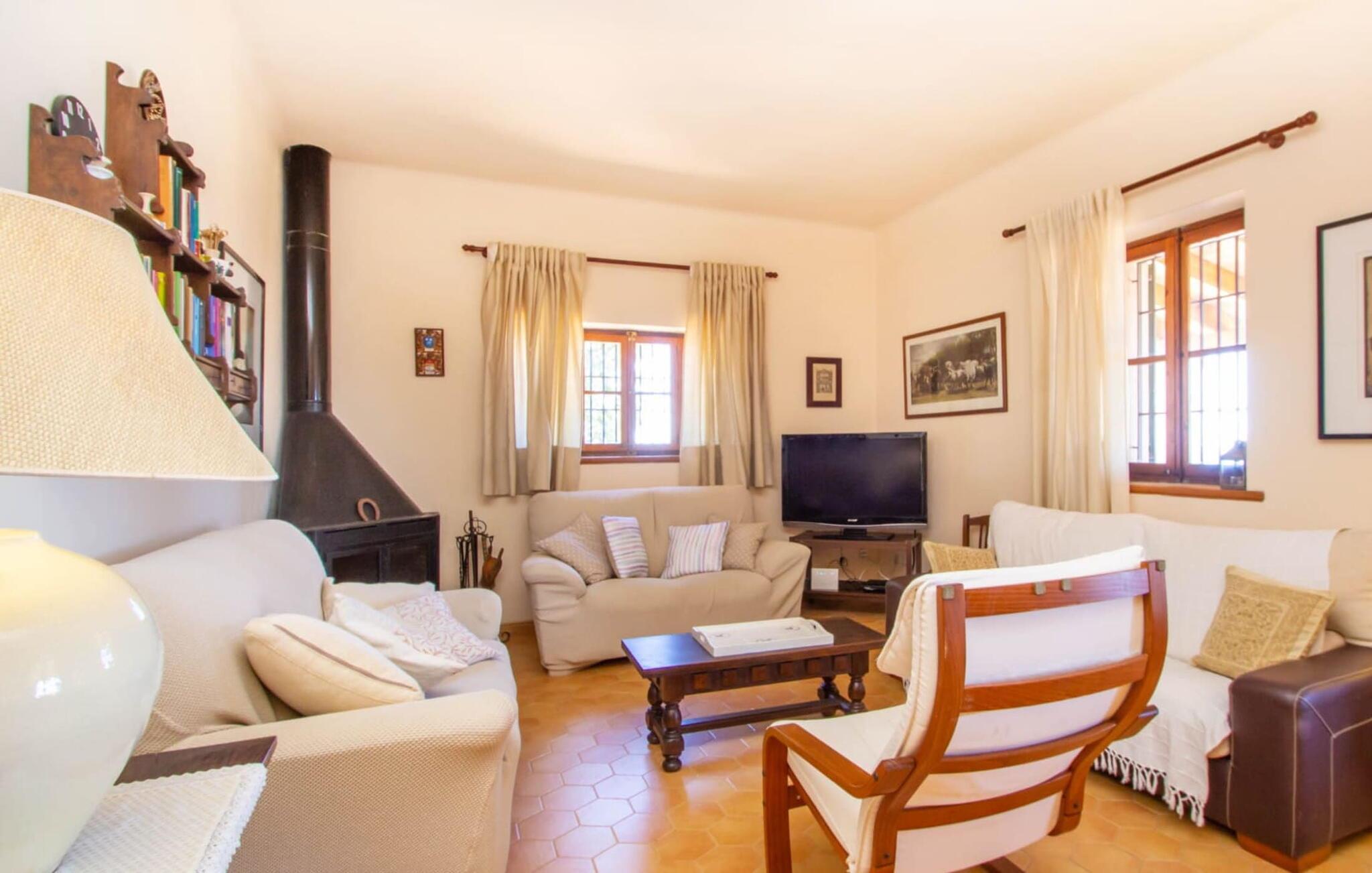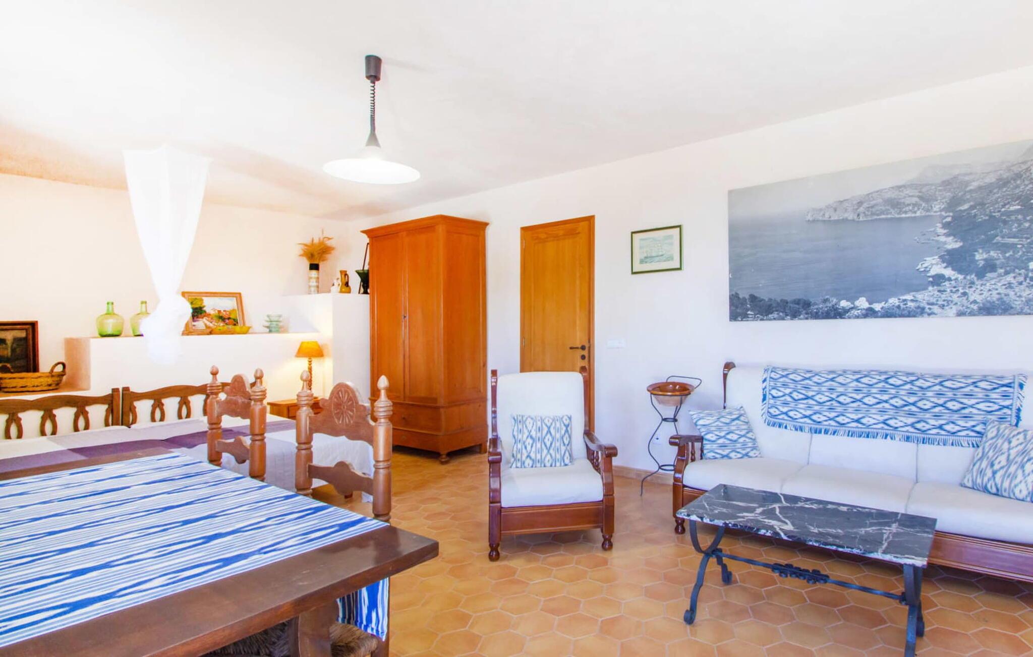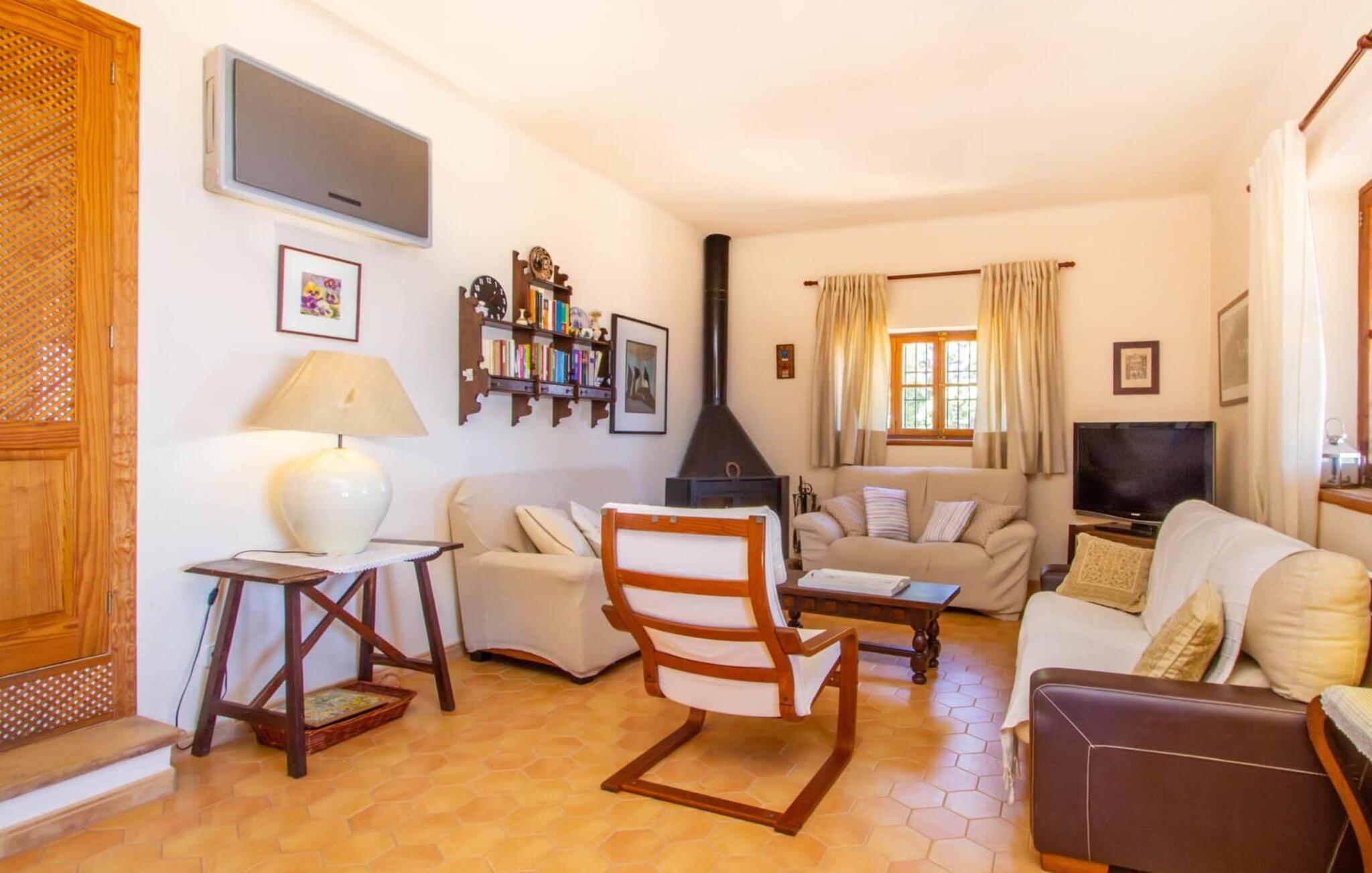 Das Haupthaus erstreckt sich über zwei Etagen und verfügt über zwei komfortable Doppelzimmer, ein Badezimmer mit Dusche und eine zusätzliche Toilette. Die offene Küche ist komplett ausgestattet und der Wohn-/Essbereich bietet den perfekten Ort zum Entspannen. Ein Anbau mit separatem Eingang bietet zusätzlichen Wohnraum, ein geräumiges Doppelzimmer mit eigenem Bad und ist somit ideal für Gruppen, die Privatsphäre suchen. Die Klimaanlage sorgt für Komfort in warmen Sommernächten, während die Einrichtung den authentischen mallorquinischen Stil widerspiegelt, perfekt, um in die lokale Kultur einzutauchen.