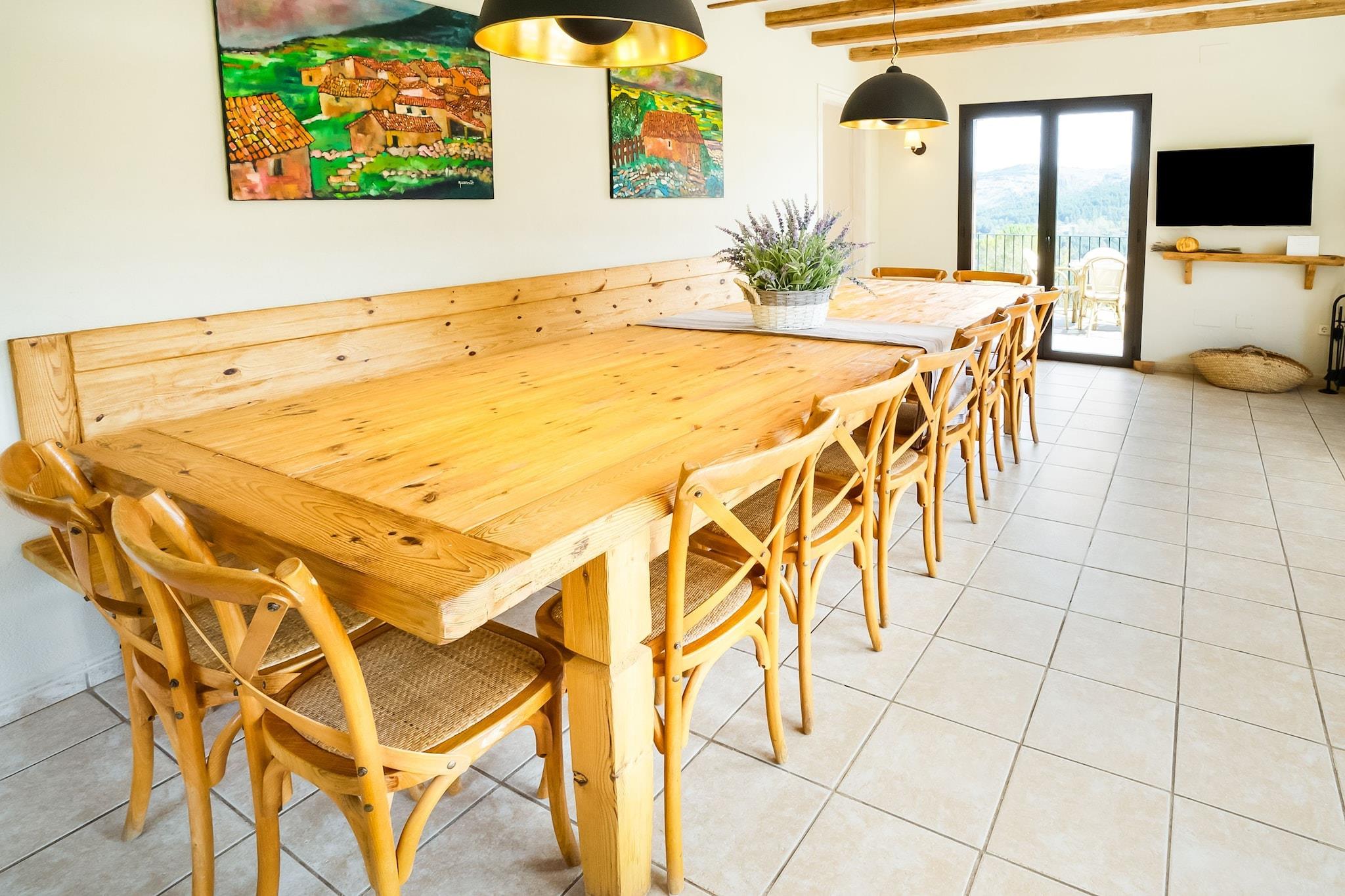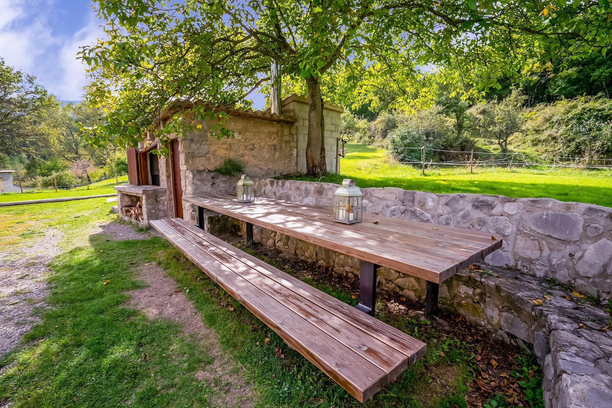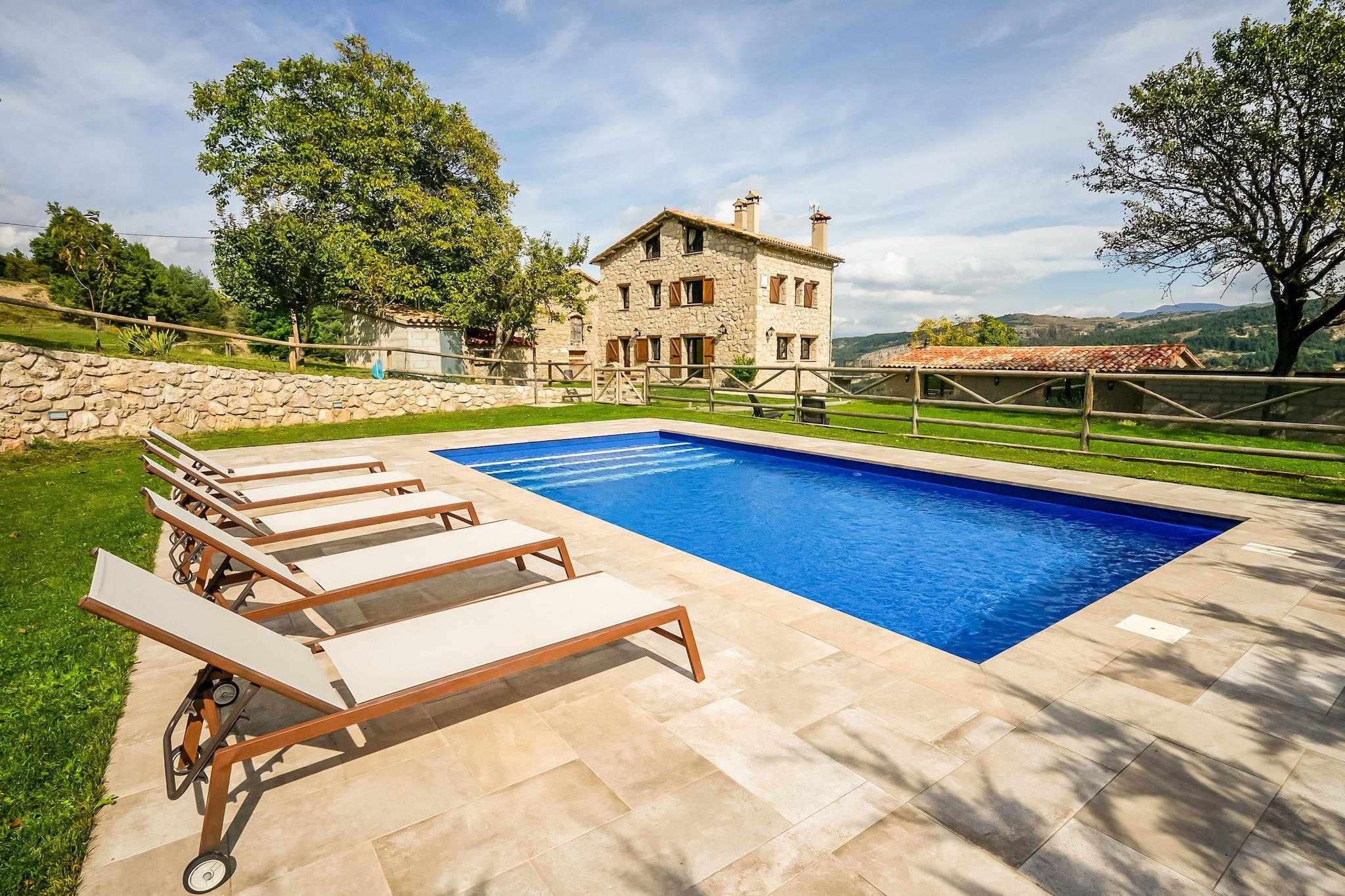 Traditionelles katalanisches Bauernhaus von 1864 komplett restauriert in Vallcebre, Sierra del Cadí. Seine privilegierte Lage bietet die Möglichkeit, die wunderschönen pyrenäischen Landschaften und die Aktivitäten des Berges zu genießen: wandern, radfahren, reiten, klettersteige, skigebiete ... Das Äußere des Bauernhauses ist sehr räumig, mit einer wunderbaren Außenterrasse mit Möbeln, um die Aussicht über das Tal zu genießen. Der Pool kann in den Sommermonaten genutzt werden. Das Haus ist in seiner Gesamtheit zu vermieten, verfügt über 8 Schlafzimmer mit Badezimmer, um die Privatsphäre der einzelnen Schlafzimmer zu gewährleisten. Die Einrichtung der Zimmer verbindet die traditionelle und rustikale Atmosphäre mit modernen Linien. Das Hauptgebäude besteht aus 6 Schlafzimmern verteilt auf zwei Etagen und die anderen 2 Schlafzimmer befindet sich in einem Nebengebäude. Es bietet Platz für bis zu 22 Personen (einschließlich Kinder). Dank der Großzügigkeit der Zimmer und individuellen Klappbetten können Sie Dreibettzimmer und sogar Vierbettzimmer schaffen. Das Dorf Vallcebre liegt im Naturpark von Cadí Moixeró, von wo aus Sie die mythischen Pedraforca, Puigmal und Catllaràs betrachten können.