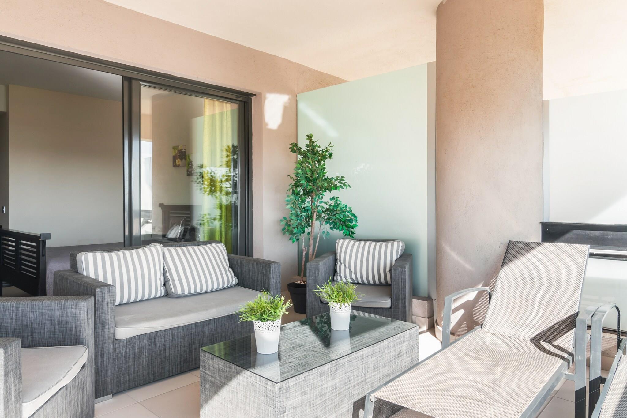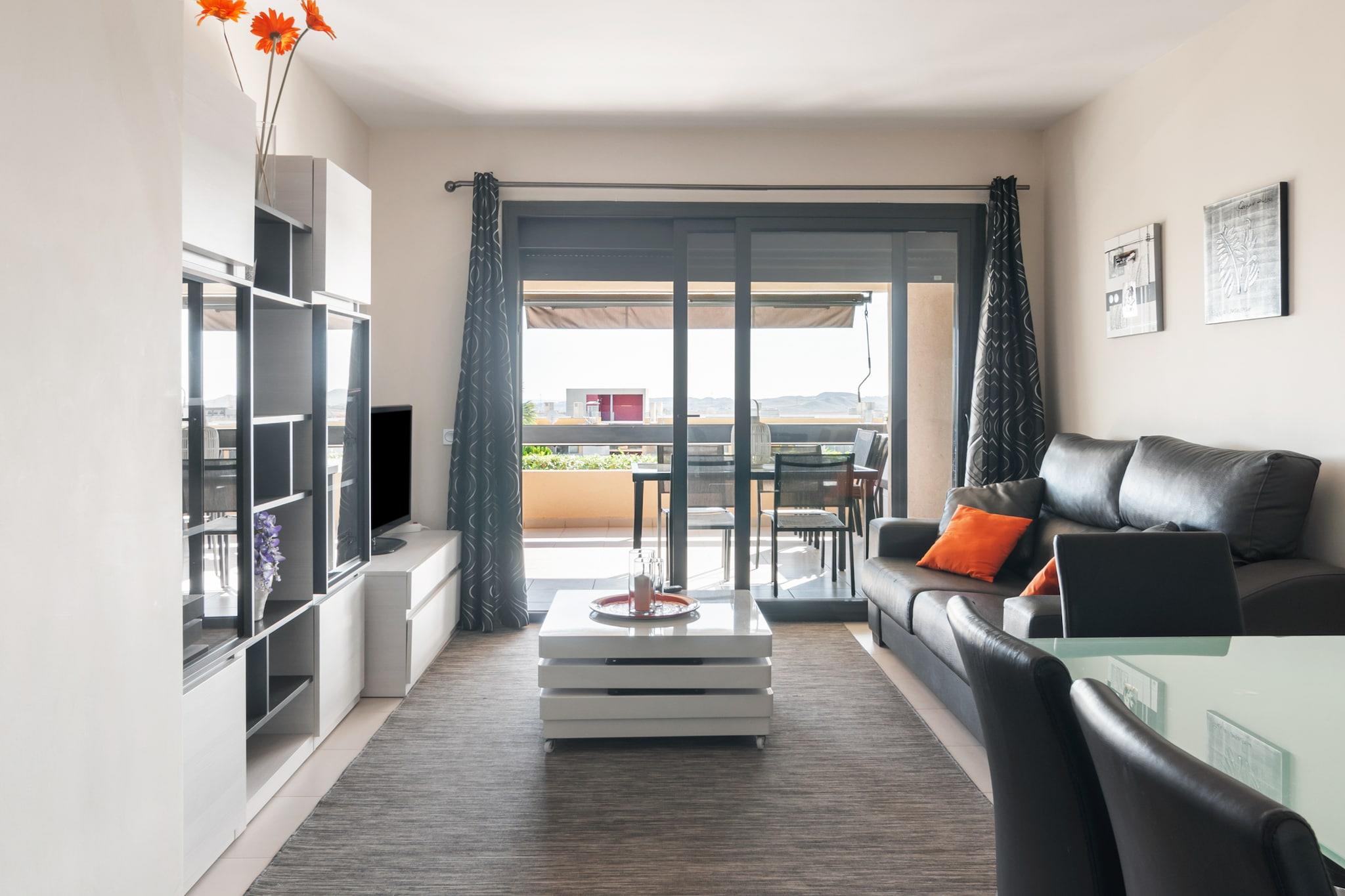 Schöne und moderne Ferienwohnung in einer ruhigen Umgebung, gelegen im Komplex Valle del Este Golf in der Nähe von Vera und ca. 10 Minuten von den wunderschönen Sandstränden bei Garrucha und Vera Playa entfernt. Auf der Vorderseite der Ferienwohnung gibt es einen 30 m² große Terrasse mit Aussicht auf das 5. Loch des Golfresorts. Die Ferienwohnung liegt im Erdgeschoss und ist über eine Treppe mit 7 Stufen zugänglich. Das Wohn-/Esszimmer ist hell und modern eingerichtet und mit Kabelfernsehen und natürlich WLAN ausgestattet. Die Klimaanlage kann auch als Heizung genutzt werden. Diese Region bietet ein herrliches Klima mit vielen Sonnentagen, wodurch die Ferienwohnung das ganze Jahr über ein perfekter Ort für einen unvergesslichen Urlaub ist. Das Resort bietet viele Einrichtungen, worunter ein Pool mit einer Länge von 25 m, ein Spa, Wellness, Golfstunden, Geschäfte, Restaurants und Bars. Außerdem gibt es einen kleinen Supermarkt und größere Supermärkte finden Sie im ca. 5 Minuten entfernten Vera. An der Küste gibt schöne Beach Bars, in denen Sie herrlich entspannen können. Die jungfräulichen Strände von Cabo de Gata und die Region Nijar mit wunderschönen Wüstenblumen und Vulkangestein sind auch zu empfehlen. Parken ist auf dem dazugehörigen Parkplatz möglich.