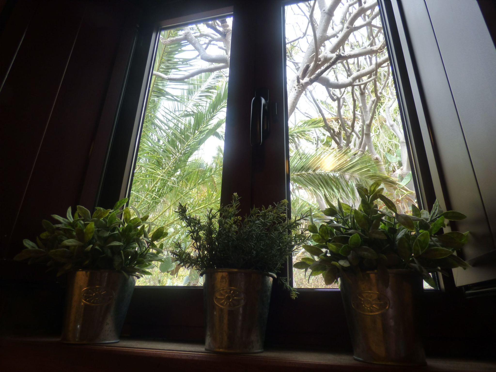 In der Veranda haben wir einen ausziehbaren Tisch aus Glas und Aluminium mit 4 Stühlen, ideal um im Freien zu essen, wir haben auch ein bequemes Sofa und einen Beistelltisch, ideal um sich auszuruhen, zu lesen, die Landschaft mit ihren Bergen und Palmenhainen zu betrachten. Garten mit Obstbäumen und Zierpflanzen. Die Terrasse ist mit Gartenmöbeln ausgestattet. Das Grundstück ist eingezäunt, so dass es auch für Kinder geeignet ist.