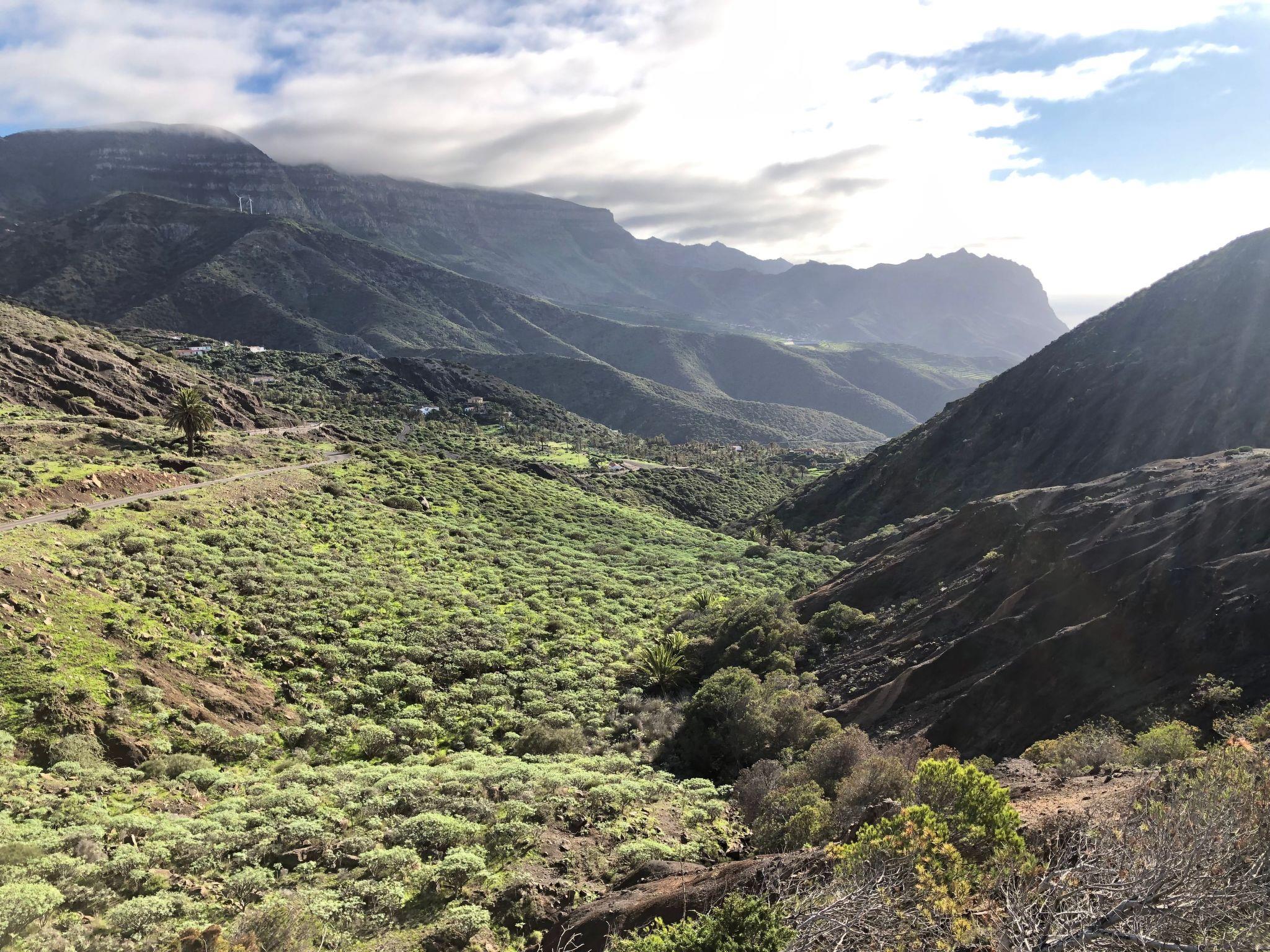 Ihre Oase auf La Gomera Das Haus liegt im Weiler Tazo, in der Gemeinde Vallehermoso, wo sich der größte Palmenhain La Gomeras mit mehr als 12.000 Exemplaren befindet und wo der beste Palmenhonig der Insel produziert wird, den Sie bei den örtlichen Erzeugern kaufen können. Die Temperaturen liegen das ganze Jahr über zwischen 18 und 37 Grad Celsius (70F-90F).