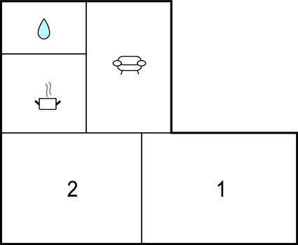 Badezimmer 4m2 (nr. 1) - WC. Warmes und kaltes Wasser. Badewanne