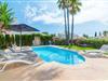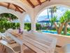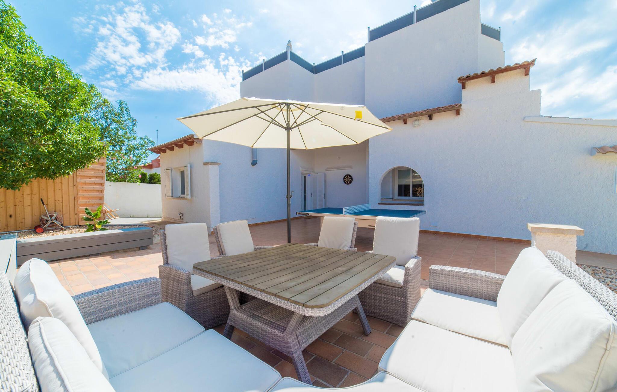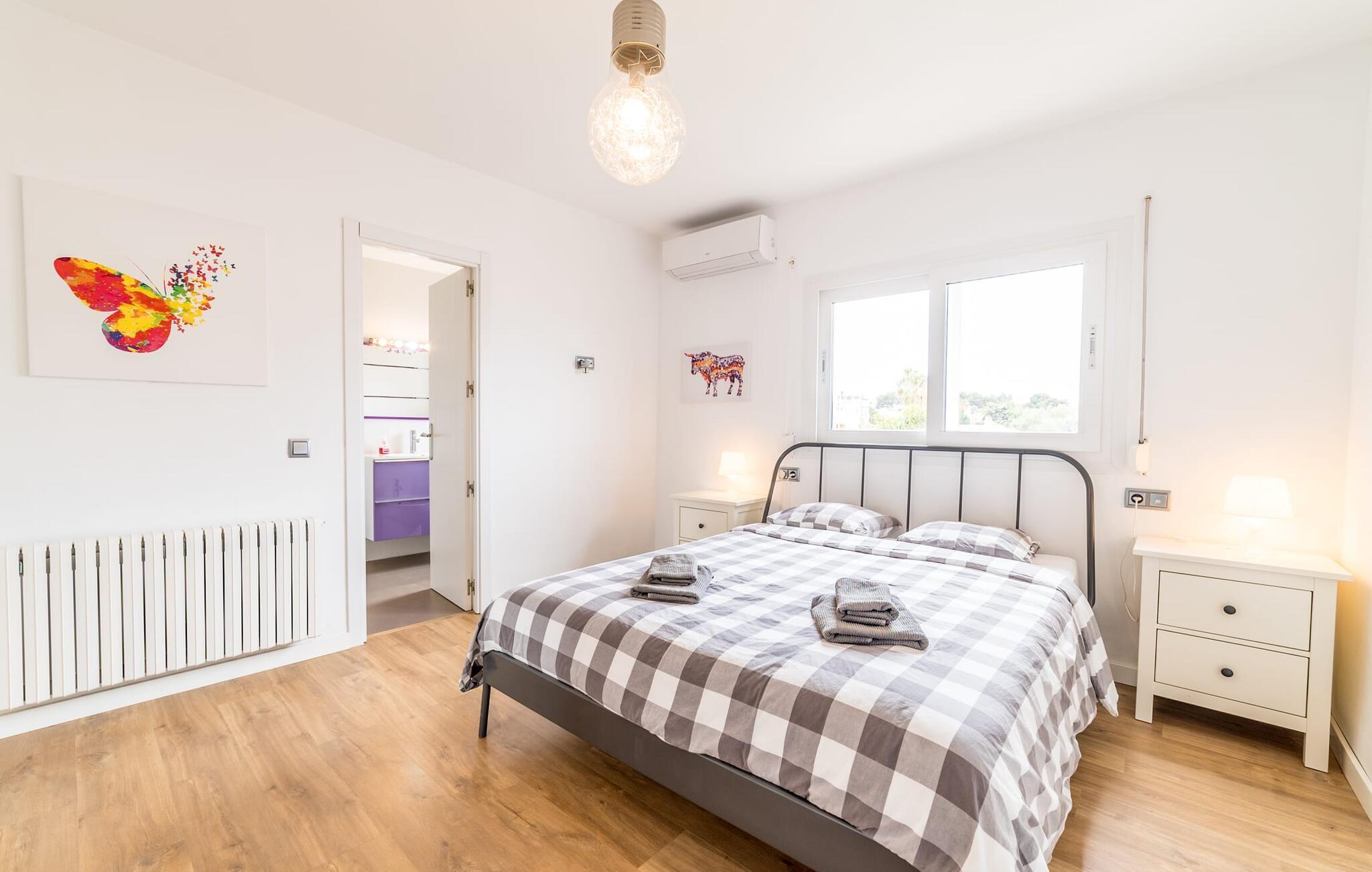 Diese wunderschöne weiße Villa in der ruhigen Wohngegend Badia Blava an der Südküste Mallorcas trägt den Namen „Verano“: Sommer! Und es macht seinem Namen, der an Sonne, Meer und Urlaub erinnert, alle Ehre: Das Haus mit zwei Etagen und vielen charmanten Rundbögen wurde in einem hellen und offenen Stil auf einem weitläufigen Grundstück in einem typischen Wohnviertel der Stadt erbaut Straßen. Es ist umgeben von einem großen Garten und verschiedenen überdachten und sonnigen Terrassenbereichen. Die stilvoll eingerichtete Dachterrasse bietet einen fantastischen Ausblick bis hin zum nahegelegenen Mittelmeer. Begleitende Kinder können sich auf der gepflegten Liegewiese oder im Pool austoben, aber auch Rutsche, Schaukel und Tischtennis stehen zur Verfügung. Erwachsene hingegen werden von den zahlreichen Möglichkeiten zum Entspannen begeistert sein: eine Sitzecke, eine Sonnenliege – Sie haben die Qual der Wahl!