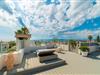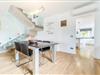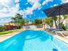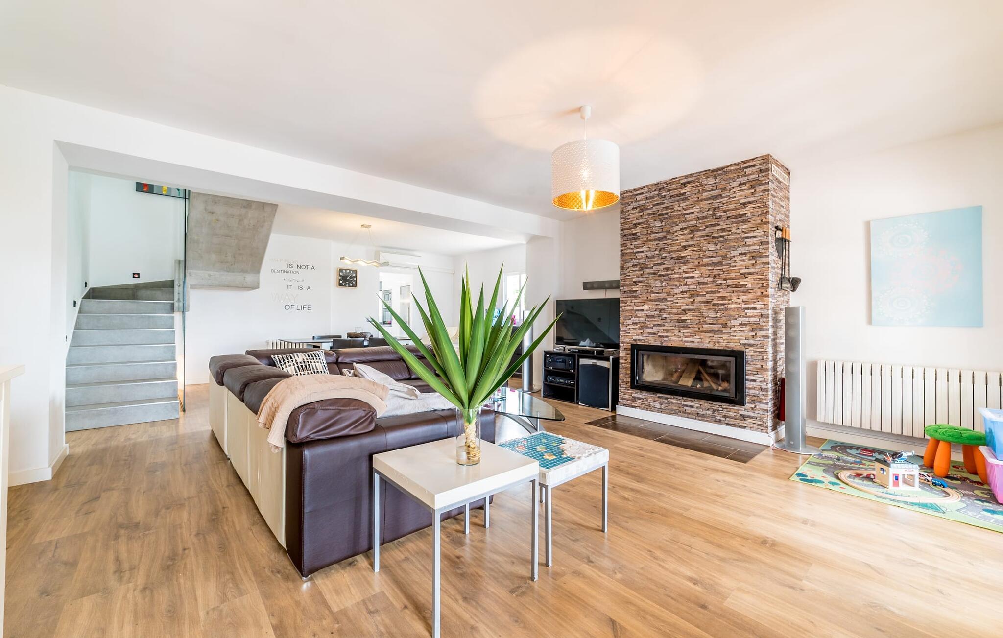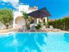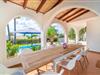 Das Innere der Villa ist modern, aber unglaublich warm und freundlich: Große Fenster lassen das mediterrane Licht herein, weiße Wände und eine offene Architektur verstärken das leichte, sommerliche Flair, das dieses Haus ausstrahlt. Im Erdgeschoss befindet sich der großzügige Wohn- und Essbereich, ausgestattet mit einer einladenden dunkelbraunen Ledercouch, auf der Sie einen spannenden Fernsehabend mit leckeren Snacks oder einen romantischen Abend vor dem Kaminfeuer verbringen können. Gleich nebenan steht der stilvolle Esstisch mit passenden Stühlen – hier können Sie die Gerichte genießen, die Sie zuvor in der offenen Küche zubereitet haben. Die Küche hat wirklich einiges zu bieten: geräumig, sehr schlicht und edel in strahlendem Weiß, hochwertig ausgestattet und bietet auch eine kleine Theke für Küchenhelfer. Neben einem separaten Badezimmer verteilen sich auf zwei Etagen die fünf geräumigen und dezent gestalteten Doppelzimmer, vier davon mit eigenem Bad runden Ihren Wohnkomfort ab.