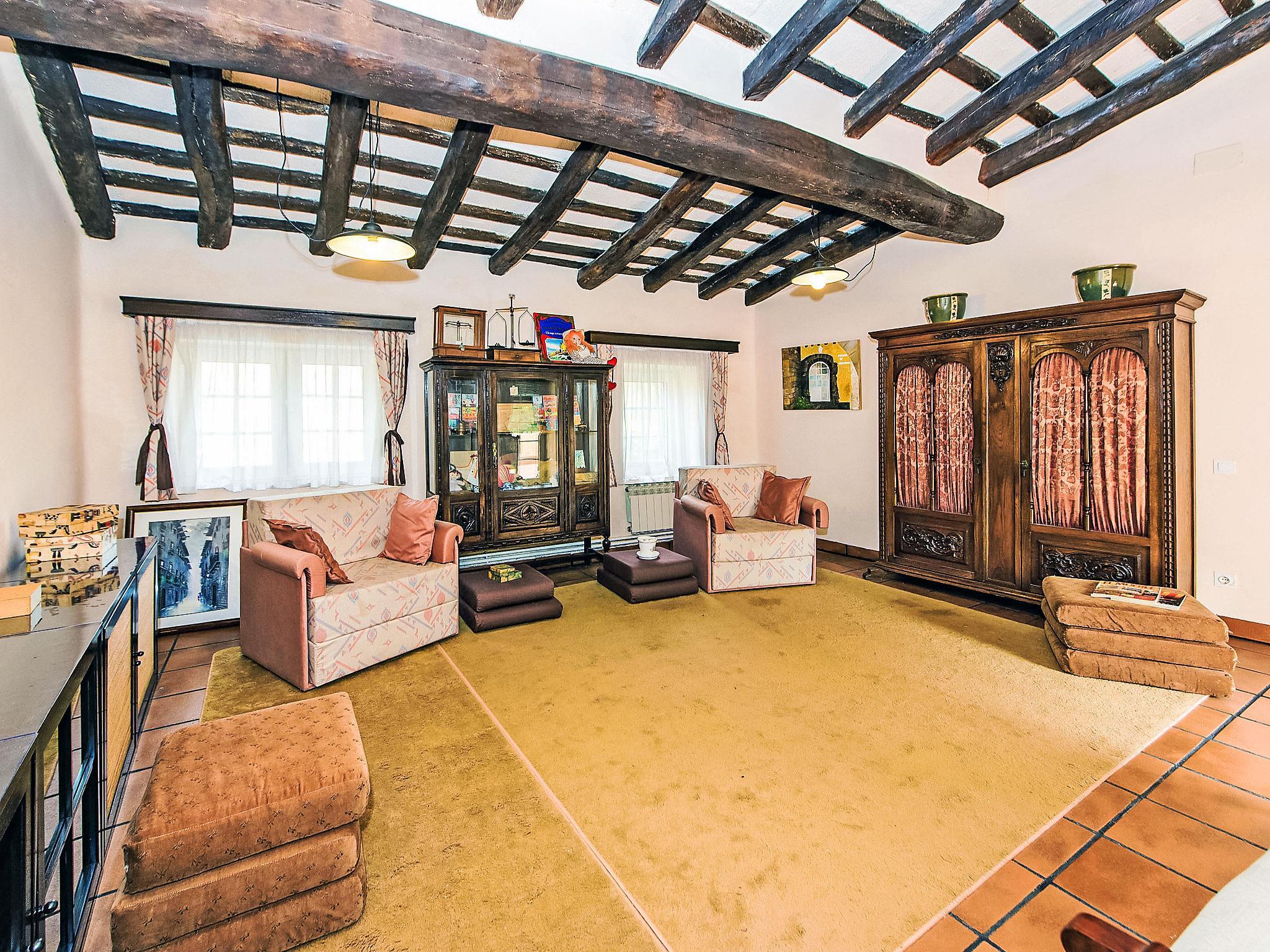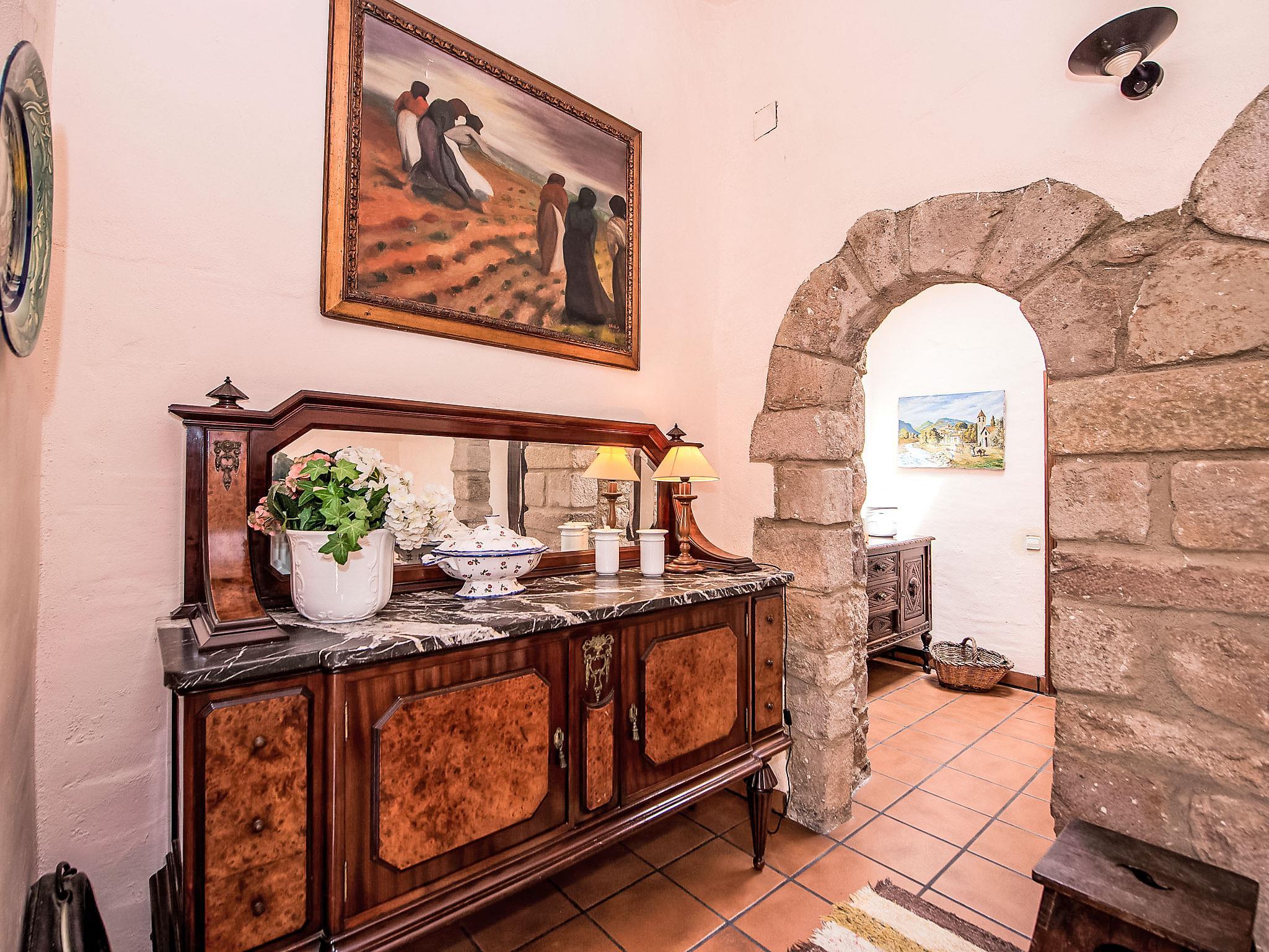 "Can Trullas", 5-Zimmer-Haus 200 m2 auf 2 Stockwerken. Rustikal eingerichtet: Eingang 20 m2 mit Digital-TV. Wohnzimmer mit TV. Ausgang zum Garten. 1 Zimmer mit 2 Betten (90 cm, Länge 190 cm). Ausgang zum Garten. Wohnküche (4 Kochplatten, Backofen, Geschirrspüler, Mikrowelle, Tiefkühler, elektrische Kaffeemaschine). Bad/Bidet/WC. Keine Heizmöglichkeit. Obergeschoss: 1 Zimmer mit 1 Doppelbett (180 cm, Länge 190 cm), Bad/Bidet/WC. 1 Zimmer mit 2 Betten (90 cm, Länge 190 cm). 1 Zimmer mit 1 Doppelbett (180 cm, Länge 190 cm). Ausgang zur Terrasse. Bad/Bidet/WC. Grosse Terrasse 40 m2, Gartensitzplatz 500 m2. Terrassenmöbel, Liegestühle (6). Sicht auf die Berge und den Wald. Zur Verfügung: Waschmaschine. Internet (WLAN, gratis). Maximal 1 Haustier/Hund erlaubt. HUTB005785