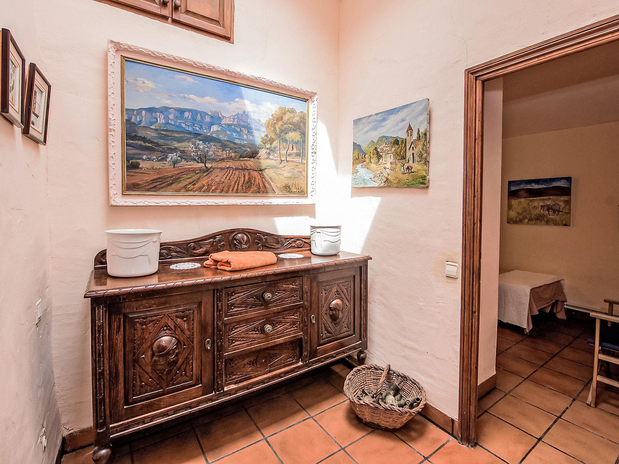 Rustikales Haus "Can Trullas", auf 2 Stockwerken, renoviert im Jahre 1992. Ausserhalb des Ortes, 1 km vom Zentrum von Viladecavalls, alleinstehende, ruhige, erhöhte Lage. Zur Alleinbenutzung: naturbelassenes Grundstück (eingezäunt), Schwimmbad nierenförmig (150 - 180 cm tief, saisonale Verfügbarkeit: 01.Mai. - 30.Sep.). Tischtennis, Pergola (40 m2). Zufahrt (300 m Naturweg). Parkplatz auf dem Grundstück. Einkaufsgeschäft 1 km, Lebensmittelgeschäft 1 km, Restaurant 1 km, Bushaltestelle 2 km, Bahnstation 1.5 km. Nahe gelegene Sehenswürdigkeiten: Montserrat 27 km, Barcelona 32 km. Bitte beachten: Fahrzeug empfohlen. Geeignet für Familien. Der Besitzer akzeptiert keine Jugendgruppen. Die Nachbarschaft ist sehr lärmempfindlich. Ruhe und gutes Benehmen wird erwartet. Das Haus befindet sich auf einem 150 Hektar großen Bauernhof, auf dem sich noch 2 weitere Häuser befinden. Waldgebiet, in dem Grillen gesetzlich verboten ist.