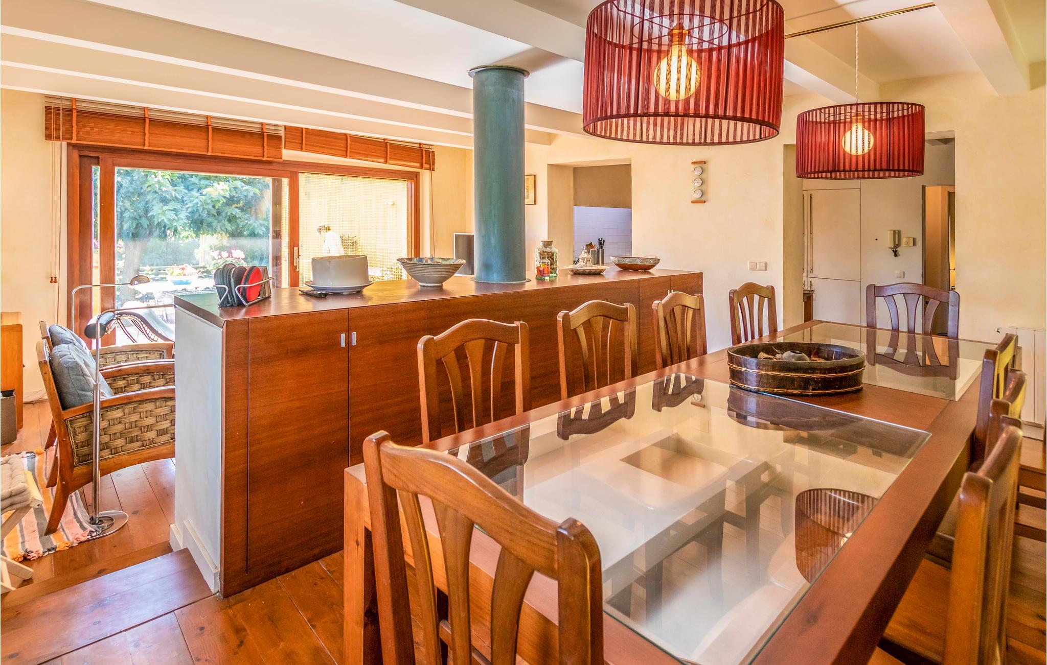 Im Erdgeschoss gibt es ein schönes, sehr geräumiges Wohnzimmer. Nebenan liegt die sehr schöne und komfortable Küche. Im ersten Stock des Hauses befinden sich 3 Doppelzimmer, 2 davon mit Doppelbetten und eines mit zwei Einzelbetten. Außerdem gibt es 2 sehr geräumige Badezimmer.