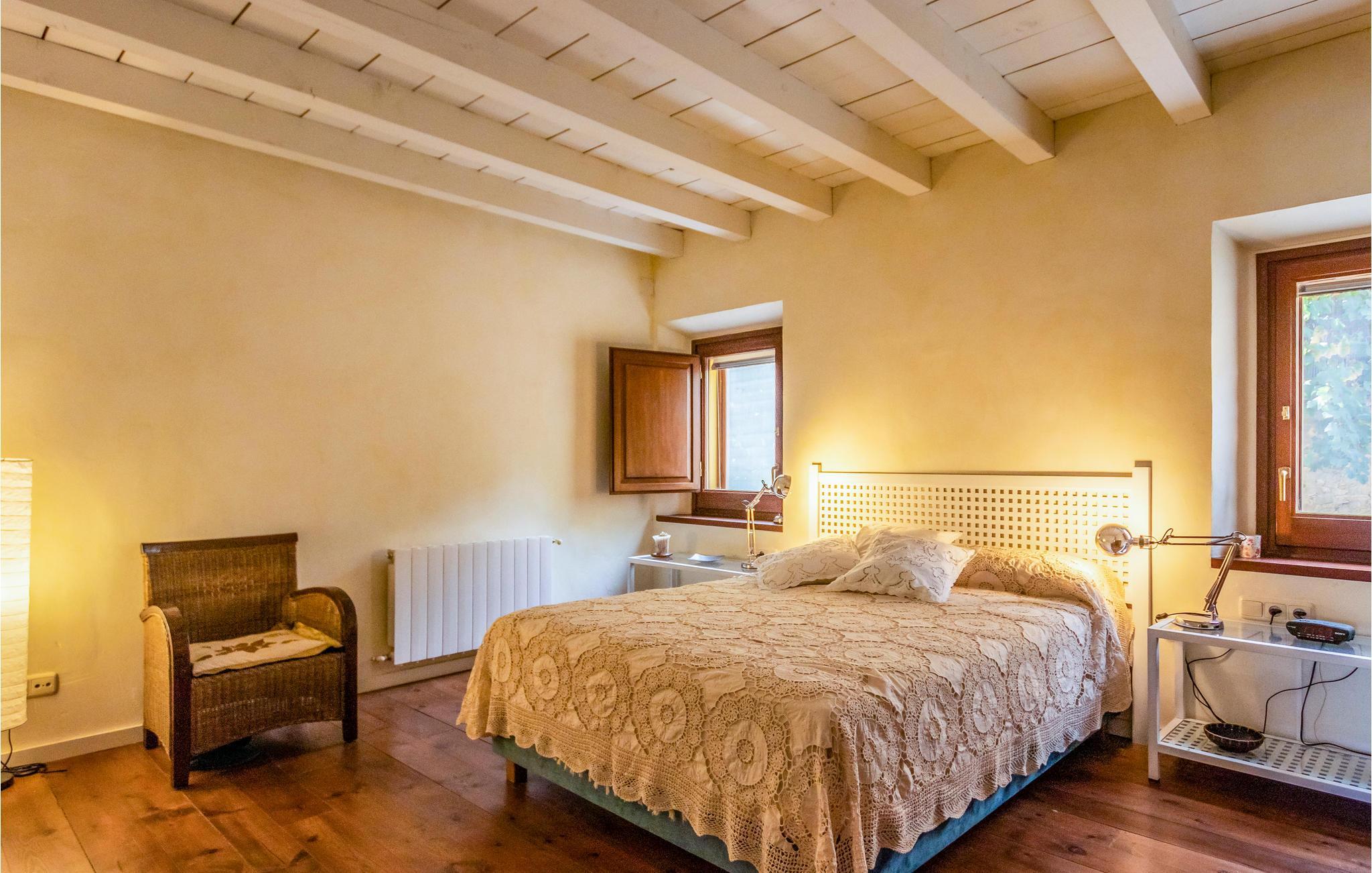 Wunderschönes Ferienhaus in Vilademuls, Girona. Das Haus verfügt über eine große Terrasse mit einer Treppe, die hinunter zum Garten führt, wo Sie im Sommer sich aufhalten können, da es dort viel angenehmen Schatten von Bäumen gibt. Die Terrasse ist ideal für Mahlzeiten mit Freunden oder Familie, denn es gibt einen Grill und ausreichend Gartenmöbel. Das Haus ist rustikal und modern eingerichtet. In den Wintermonaten lädt ein Kamin zum Aufwärmen ein.