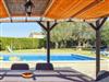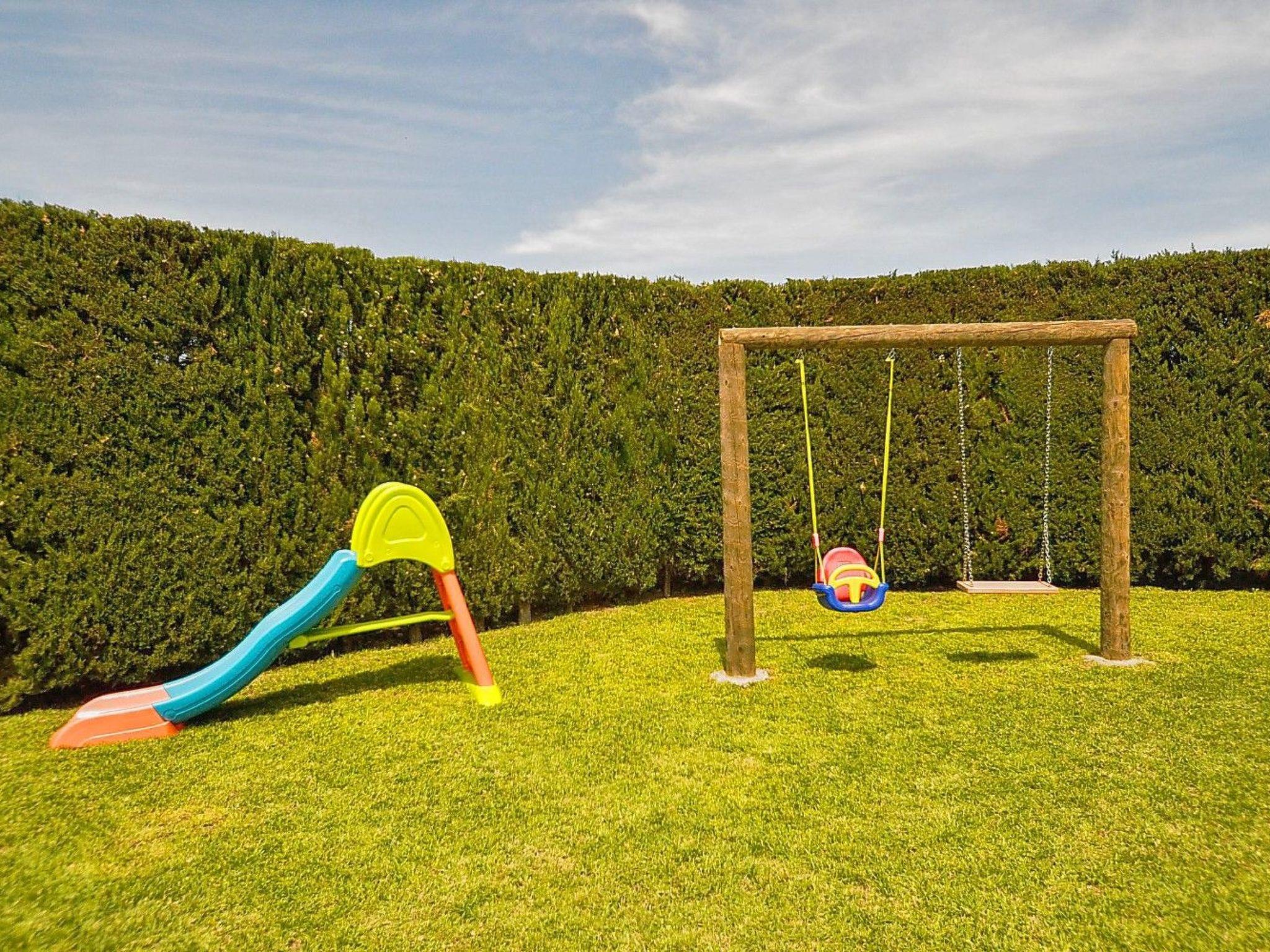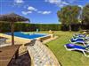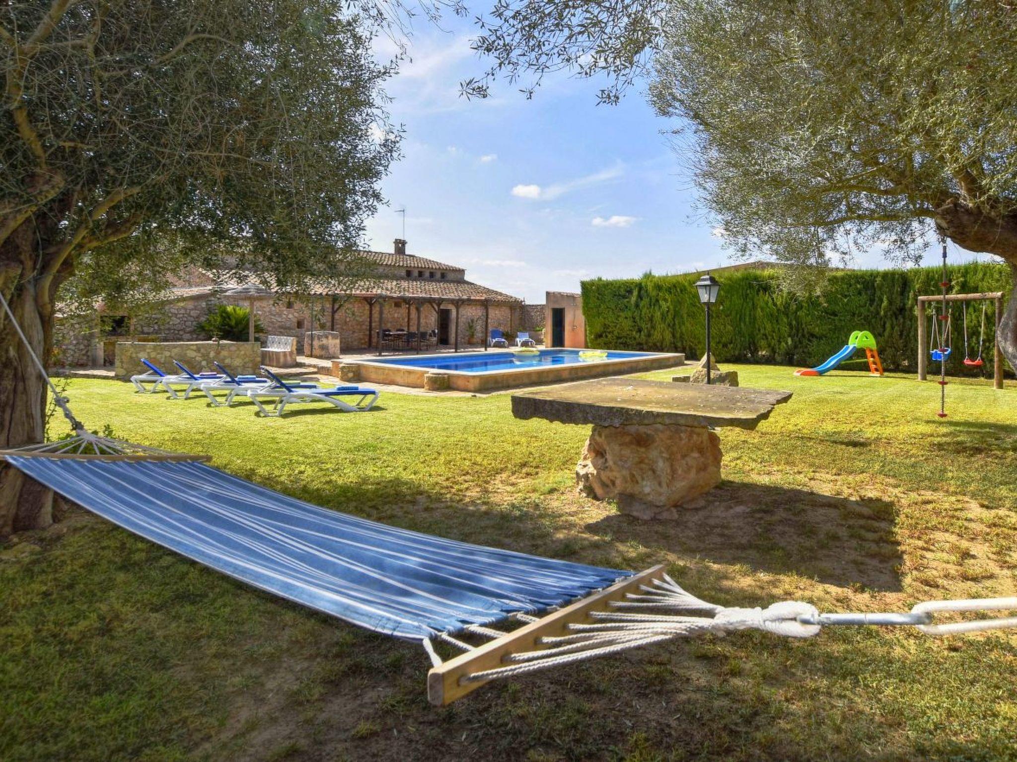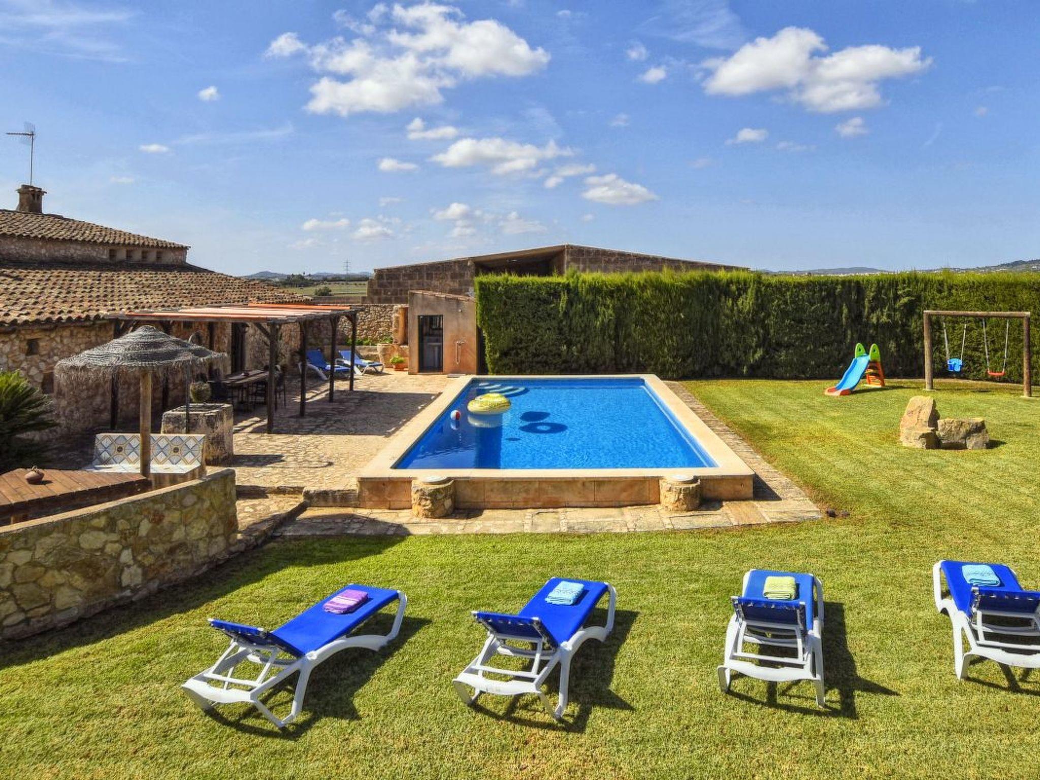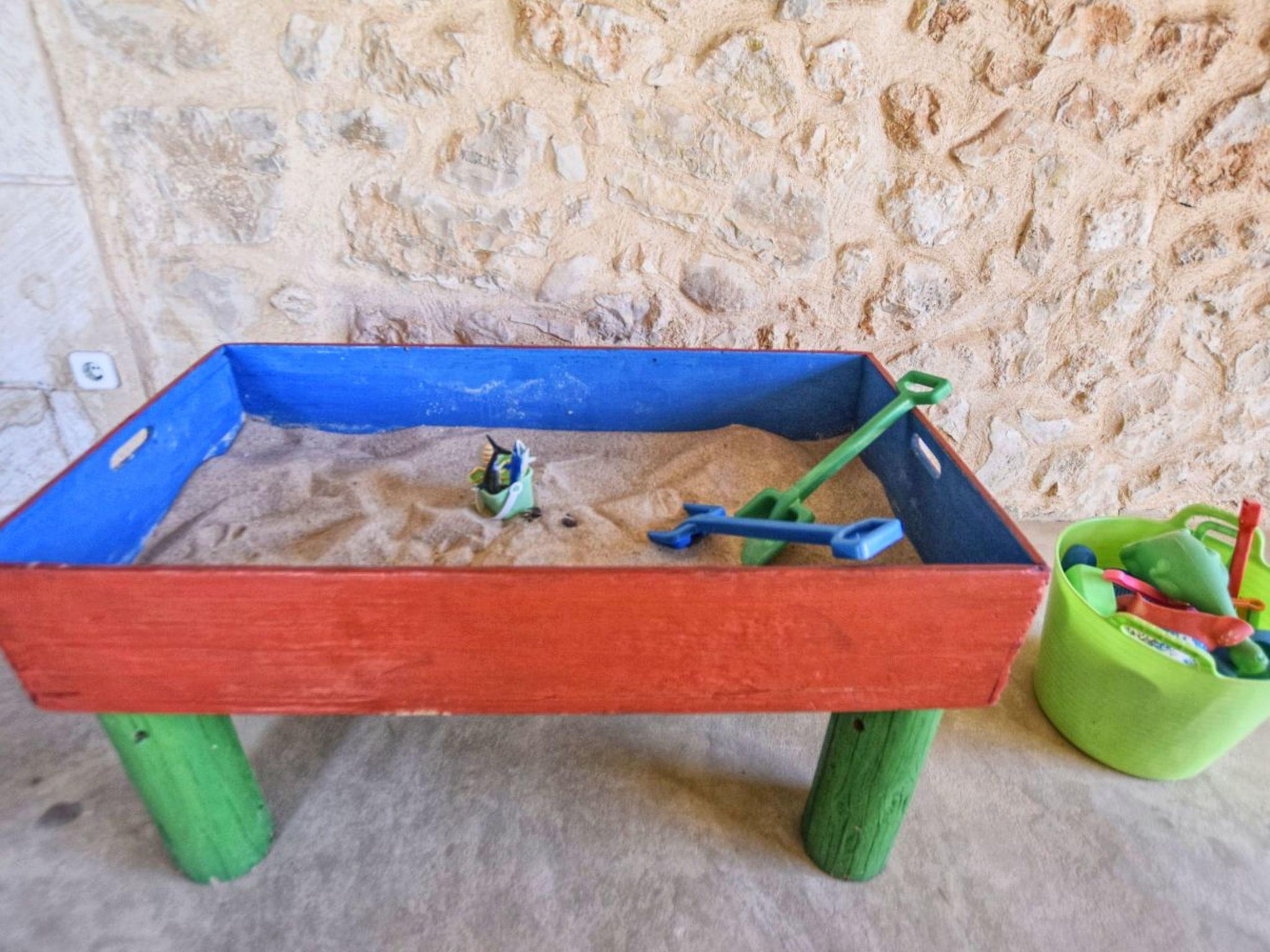 Die Finca hat eine wundervolle riesige Gartenanlage mit viel Rasenfläche einer Kinderrutsche mit Schaukel für die Kleinen, einem gemauerten Barbeque-Grill-Platz mit Schirm und Sitzbank gleich neben dem überdachten Essbereich vor dem Pool. Der 10 m x 5 m Swimming Pool hat eine Tiefe von 1,40 x 2,00 m sorgt für die nötige Erfrischung und die Sonnenliegen laden zum Sonne tanken ein. Am Pool gibt es eine Aussendusche und auch ein WC mit Waschbecken. Für etwas sportliche Betätigung steht im umgebauten Stall die Tischtennisplatte bereit und für die ganz kleinen auch ein mobiler Sandkasten.