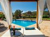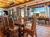 Im Inneren bietet die Villa einen Essbereich, der durch eine Klimaanlage gekühlt wird, Platz für acht Personen bietet und sich zu einem gemütlichen Wohnzimmer mit Kamin und Sat-TV öffnet. Die voll ausgestattete Küche, komplett mit einer Nespresso-Maschine und modernen Geräten, lässt sich mühelos mit Außenbereichen verbinden, einschließlich Essbereichen im Freien, einem Grill und ruhigen Lounge-Ecken.
