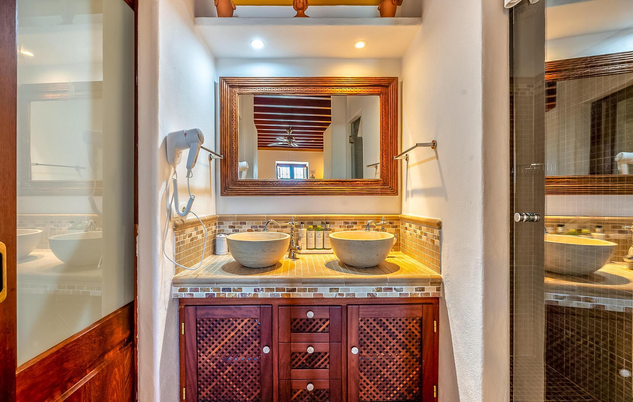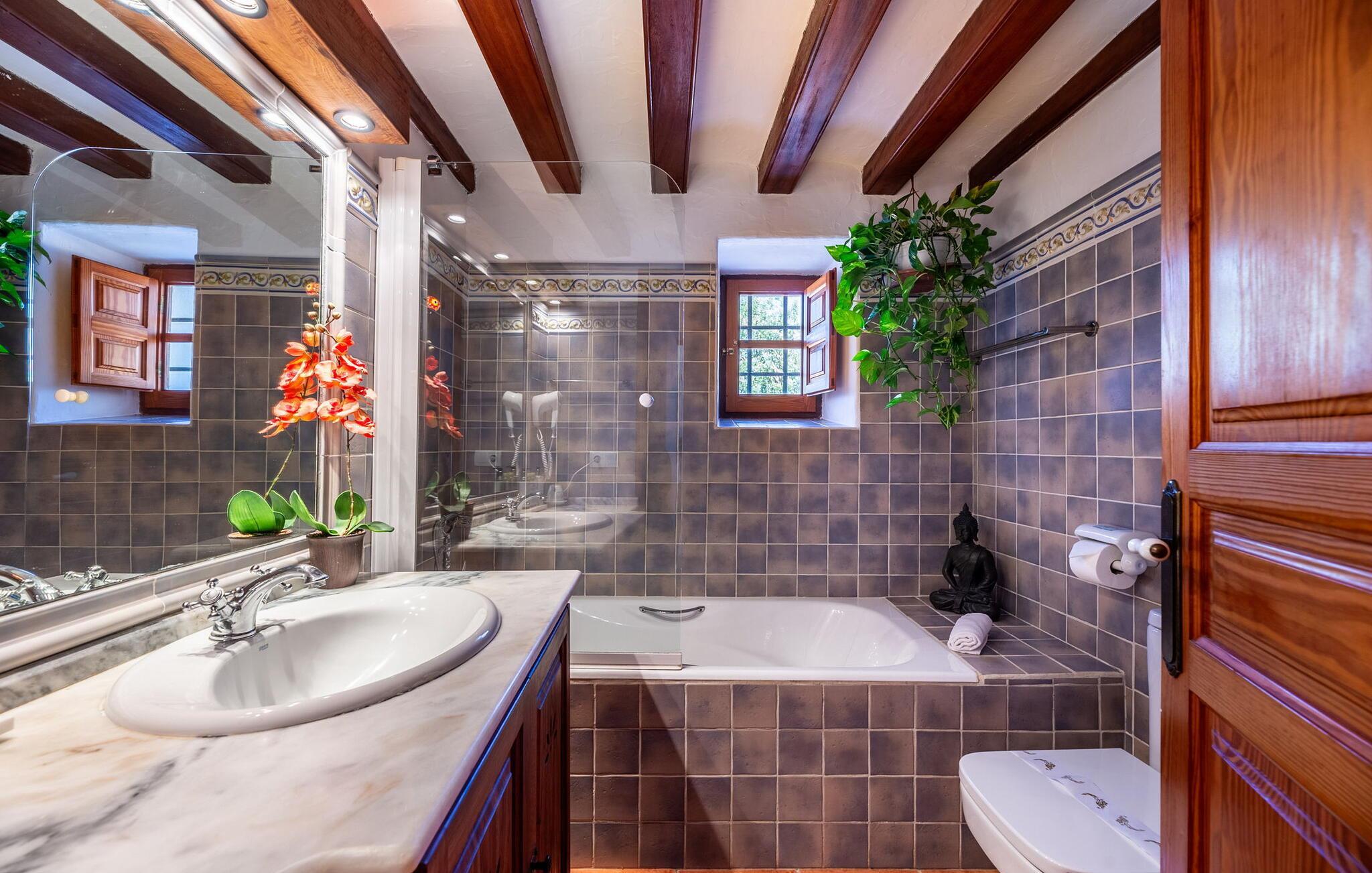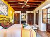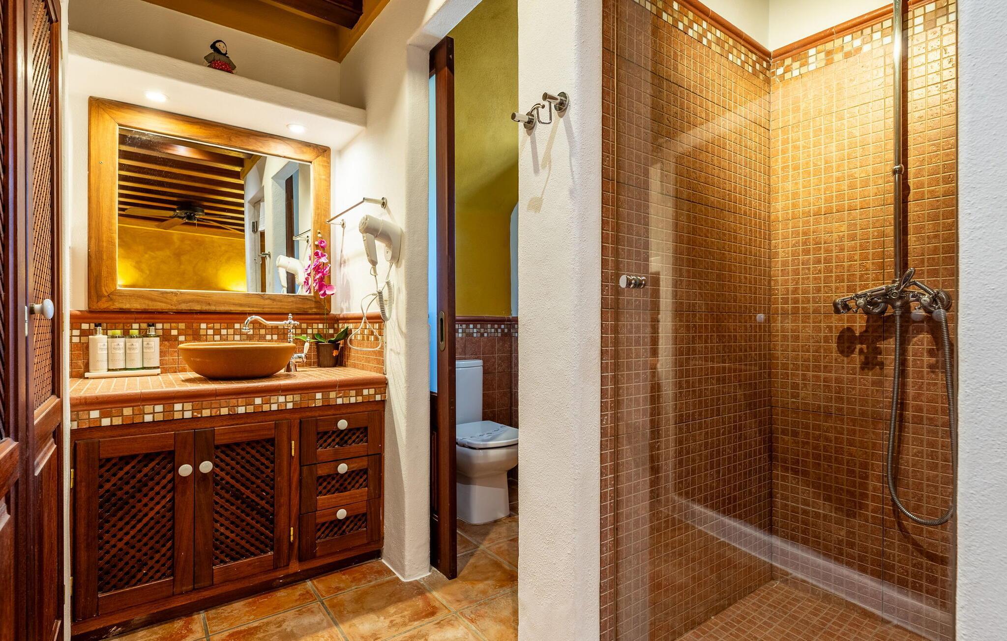 Mit fünf durchdacht gestalteten Schlafzimmern sorgt die Villa dafür, dass jeder seinen privaten Rückzugsort genießt. Im Erdgeschoss befinden sich zwei Zweibettzimmer mit Klimaanlage, Ventilatoren und Fernsehern. Eines verfügt über ein eigenes Bad, während das andere Zugang zu einem Gemeinschaftsbad bietet. Im ersten Stock befindet sich ein ruhiges Doppelzimmer mit einem 160 cm breiten Bett, Klimaanlage, einem eigenen Bad und einem Fernseher. Ein Seitengeschoss fügt ein weiteres Doppelzimmer mit zwei Einzelbetten, einem eigenen Bad und einer privaten Terrasse mit gemütlichen Sitzgelegenheiten und atemberaubender Aussicht hinzu.