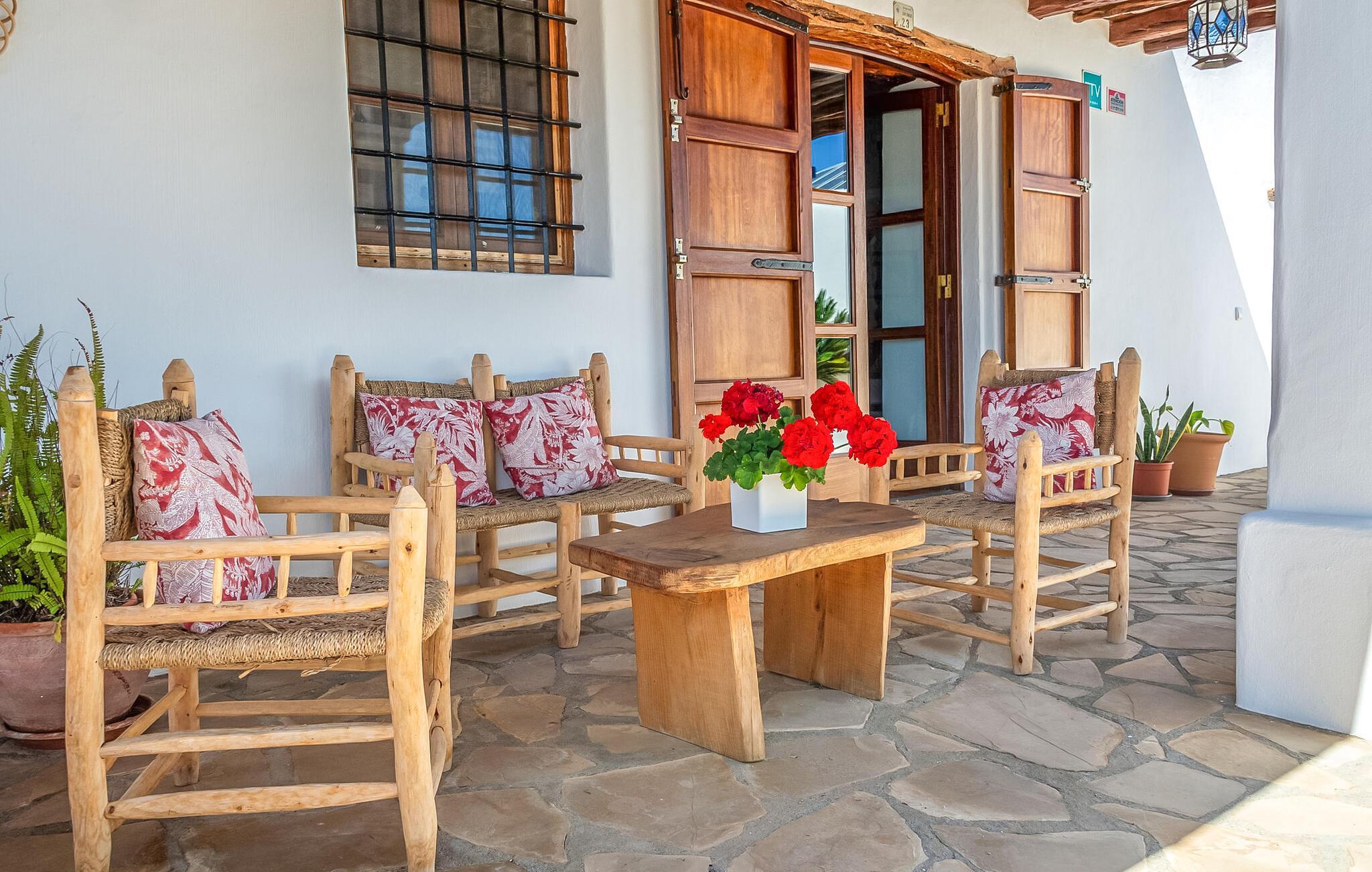 Auf einem 1.000 m² großen offenen Grundstück gelegen, ist diese atemberaubende 250 m² große Villa auf Ibiza eine Oase der Entspannung und des Stils, perfekt für einen unvergesslichen Urlaub. Vom ersten Moment an gibt die einladende überdachte Terrasse mit Plüschsofas den Ton für Komfort an.