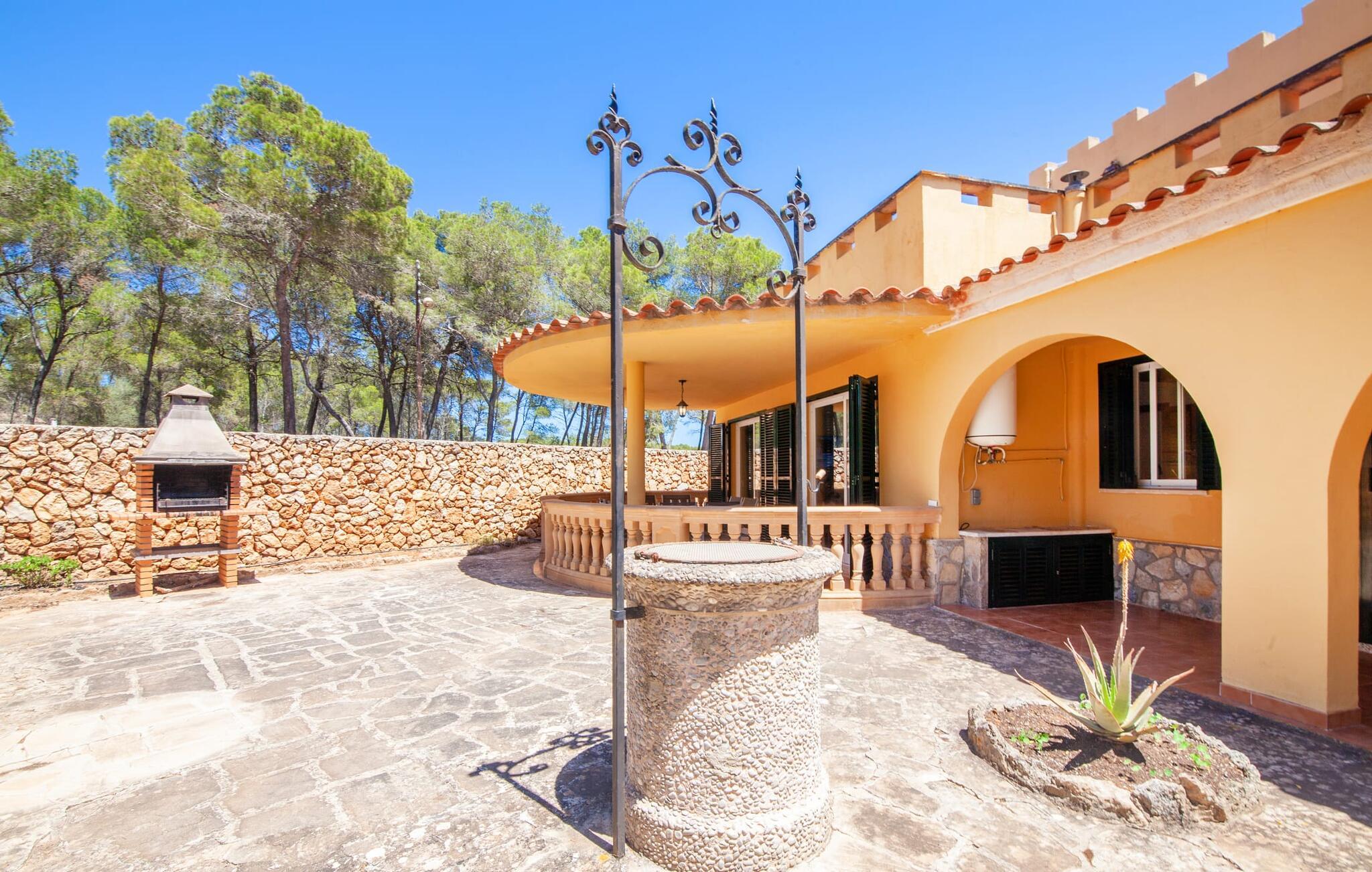 Du liebst Natur und Strände? Ihr Lieblingspool ist das offene Meer? Dann suchen Sie nicht weiter, denn mit der Villa „del Mar“ haben Sie Ihr ideales Feriendomizil gefunden. Die Lage der Finca mitten im Parc natural de Mondragó ist einfach unbezahlbar. Direkt vor den Türen der Finca beginnen wunderschöne Wanderwege durch den Park. Bis zum Postkartenstrand Cala Mondragó sind es nur wenige Meter. An der von Pinienwäldern umrahmten Bucht können Sie mit allen Annehmlichkeiten einen schönen Strandtag verbringen. Es gibt Restaurants und Strandbars sowie Duschen, Toiletten, Sonnenschirme und Liegen. Cala Mondragó ist der mittlere der drei Strände im Naturpark. Die benachbarte Bucht S'Amarador erreichen Sie bequem zu Fuß über einen Küstenweg und den Calo des Borgit durch den Pinienwald. Egal für welche Bucht Sie sich entscheiden, Sie werden morgens einer der ersten und abends einer der letzten Besucher sein. Dem größten Trubel zwischendurch können Sie ganz klassisch bei einer Siesta auf der wunderschönen Gartenterrasse Ihrer Finca entgehen. Hier finden Sie bequeme Liegen und einen großen Sonnenschirm. Im Schatten der überdachten, halbrunden Terrasse können Sie zudem in aller Ruhe Ihre gemeinsamen Mahlzeiten genießen. Je nach Windrichtung ist die Abendunterhaltung einer Hotelanlage an der Cala Barca zu hören. Die dortige Kinderanimation lässt sich perfekt in das eigene abendliche Familienprogramm integrieren. An lauen Sommerabenden locken die mittlerweile menschenleeren Buchten wieder einmal. Ein Mondscheinschwimmen im Meer oder eine Flasche Wein am Strand sind romantische Möglichkeiten.