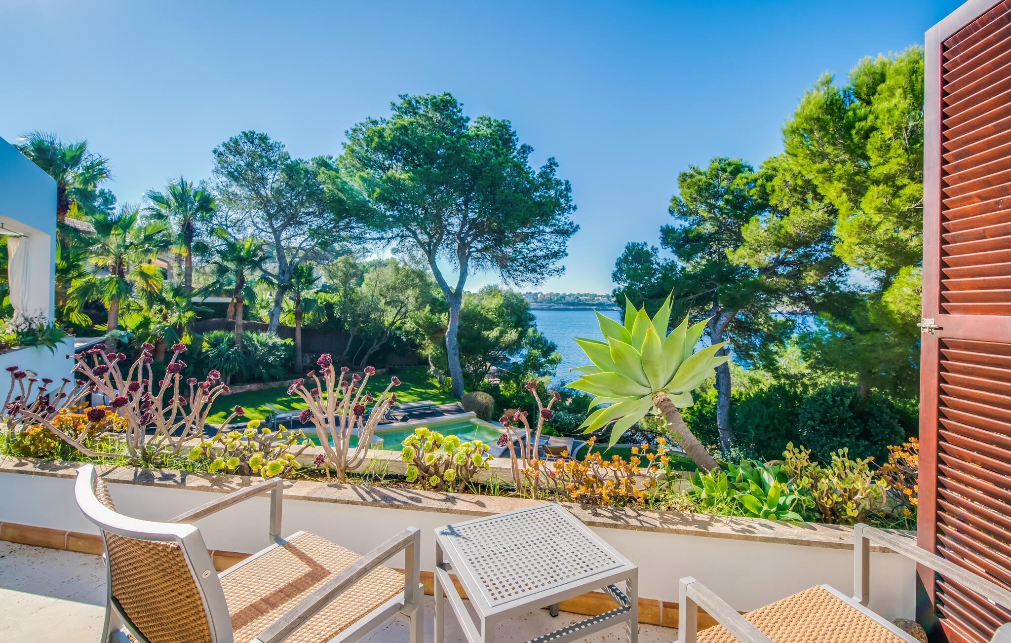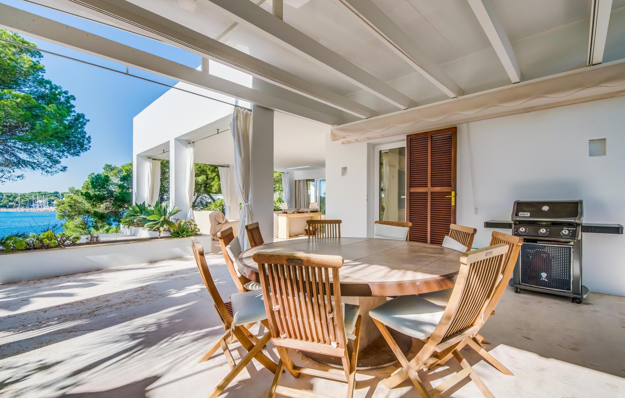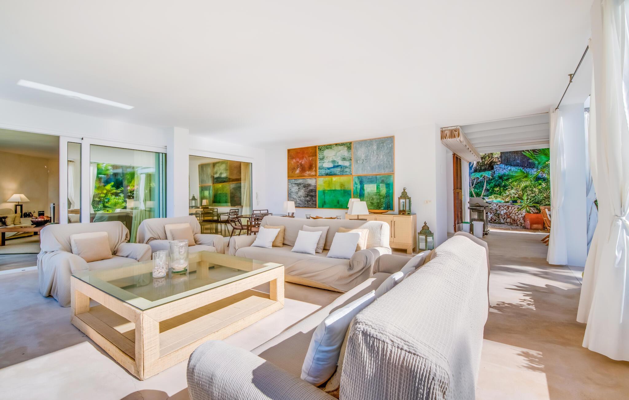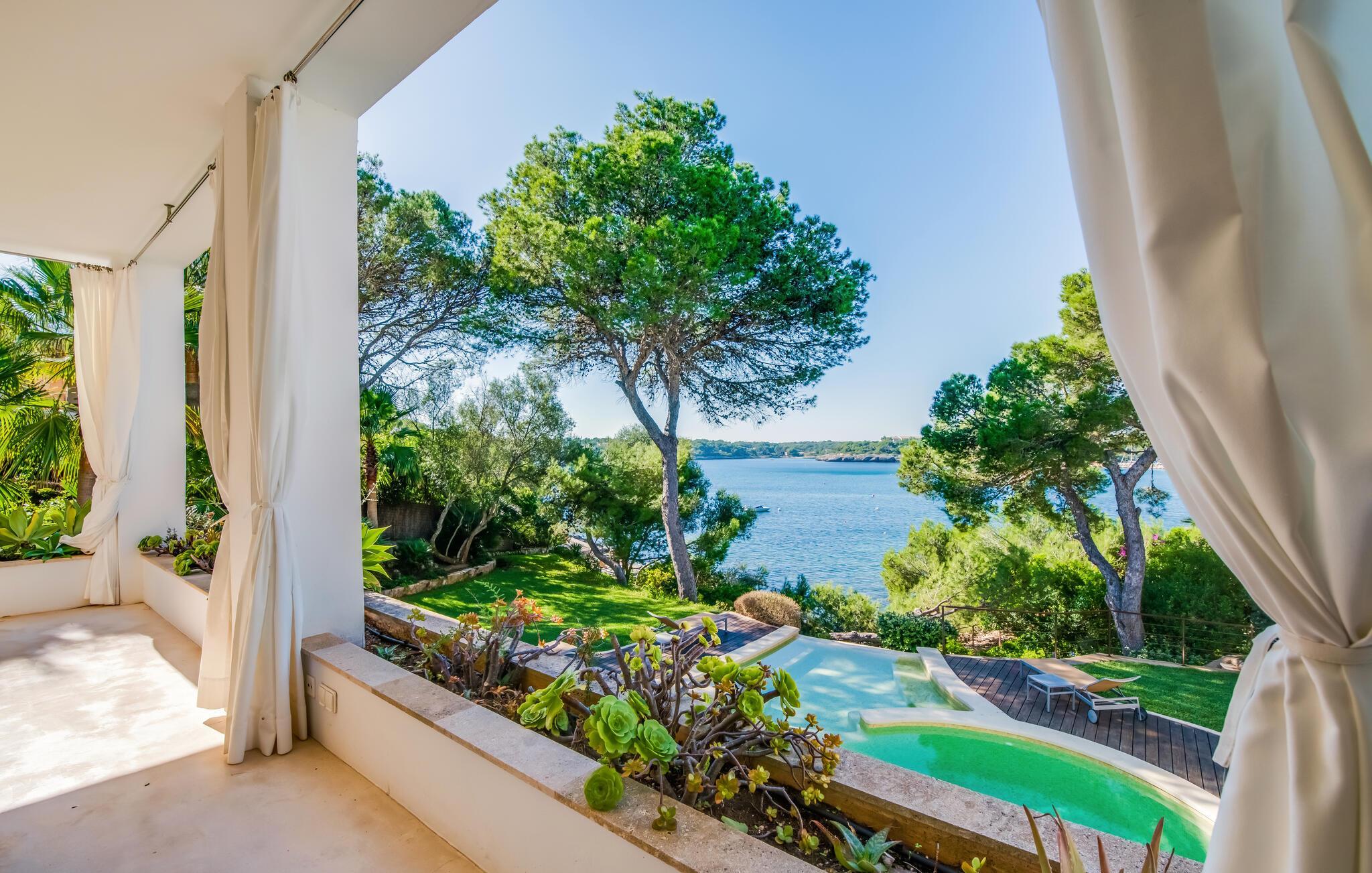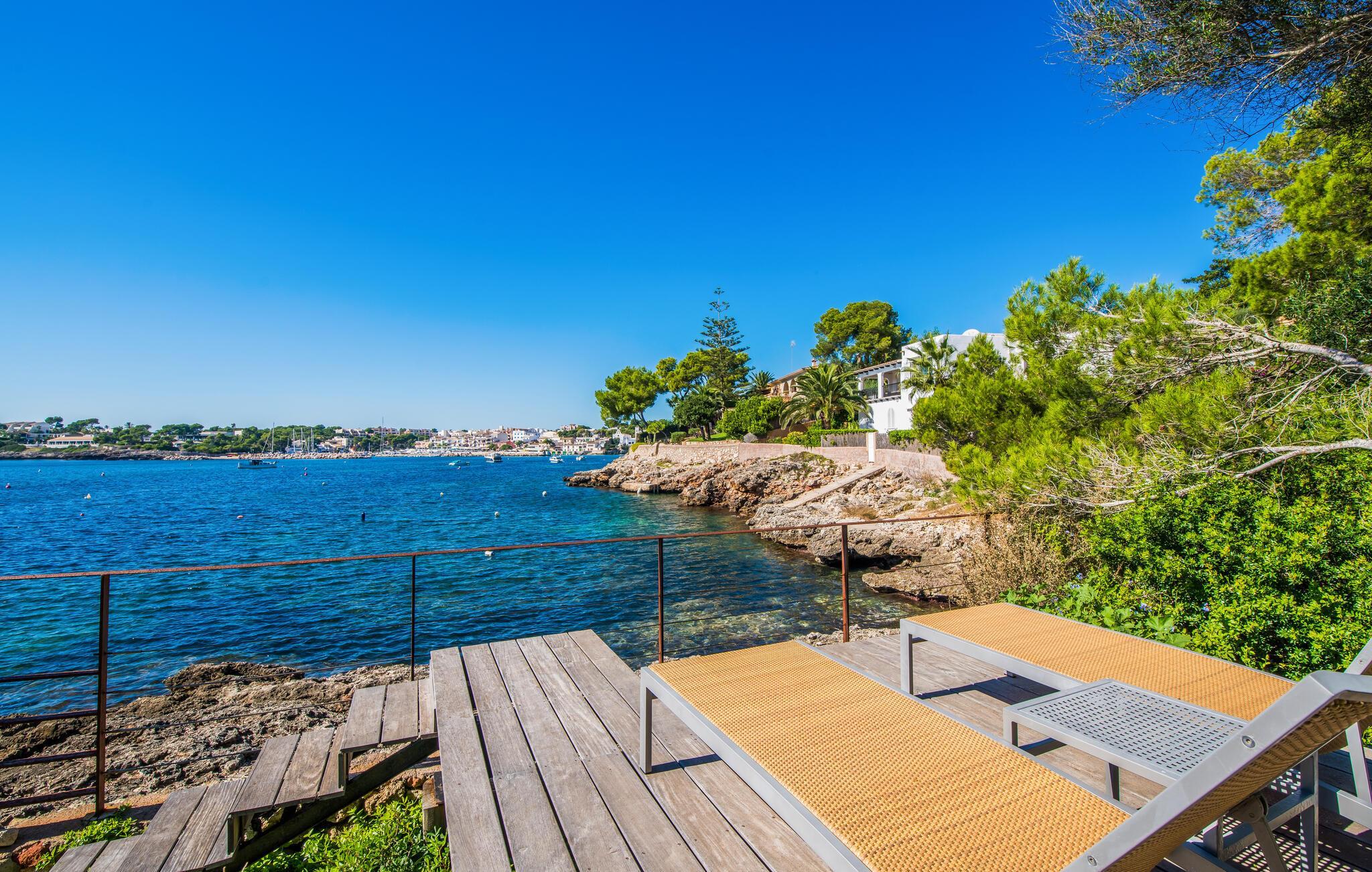 Diese großzügige Villa heißt Sie direkt an der bezaubernden Südostküste Mallorcas willkommen und bietet in ihrem geschmackvoll und hochwertig eingerichteten Interieur viel Platz für Freunde oder die Familie. Freuen Sie sich auf gesellige Mahlzeiten, plaudern Sie in großer Runde über vergangene Zeiten und lassen Sie die mediterrane Atmosphäre auf sich wirken, während der Alltag in weite Ferne rückt.