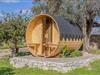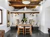 Das Haupthaus strahlt authentischen Charakter aus und verfügt über fünf Schlafzimmer mit Klimaanlage für ultimativen Komfort. Drei Schlafzimmer verfügen über Doppelbetten (160x190cm) und ein eigenes Bad mit Dusche, von denen eines einen unabhängigen Zugang hat. Ein weiteres Schlafzimmer mit Doppelbett (160x190cm) und ein Zweibettzimmer teilen sich ein Badezimmer mit Dusche. Die einladenden Wohn- und Esszimmer, jeweils mit Kamin, ergänzen die voll ausgestattete Küche und sorgen für einen warmen und funktionalen Wohnraum.