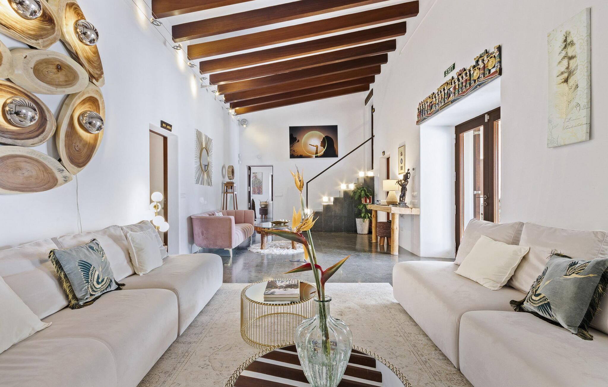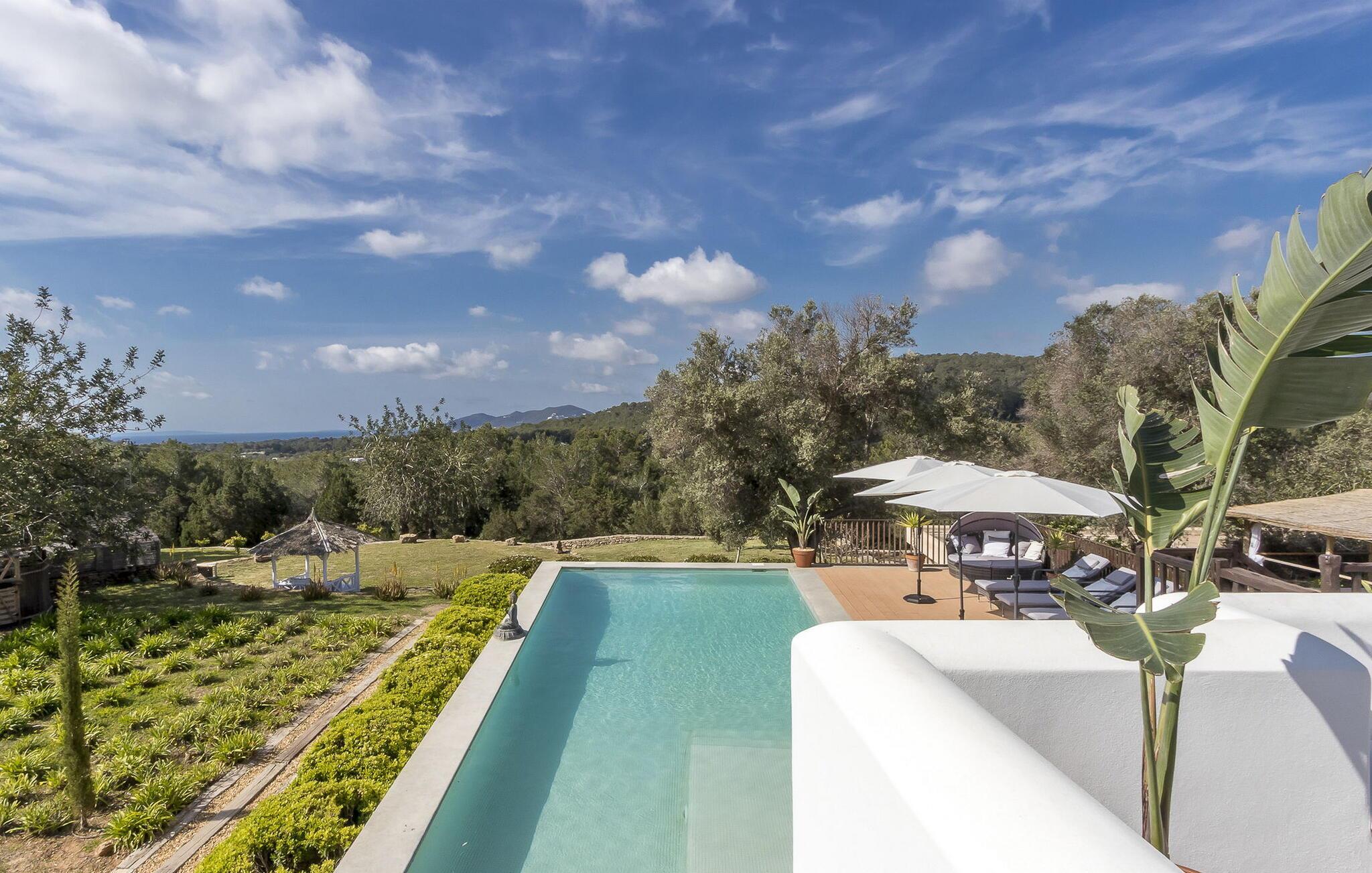 Dieses wunderschön restaurierte ibizenkische Bauernhaus verbindet perfekt rustikalen Charme mit modernem Luxus und bietet einen ruhigen Rückzugsort im Herzen der Landschaft. Umgeben von atemberaubender Aussicht und durchdacht gestalteten Räumen ist es der ideale Rückzugsort für Familien oder Gruppen, die Entspannung und Privatsphäre suchen.