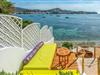 Im Außenbereich finden Sie zwei einladende Terrassen: eine überdachte Terrasse, die sich perfekt zum Entspannen im Schatten eignet, und eine offene Terrasse mit Blick auf das glitzernde Meer, komplett mit vier Liegestühlen, um die mediterrane Sonne zu genießen. Moderne Annehmlichkeiten wie WLAN, Smart-TV, Waschmaschine, Trockner und Safe sorgen für den Komfort von zu Hause. Ein privater Außenparkplatz trägt zum Komfort bei.