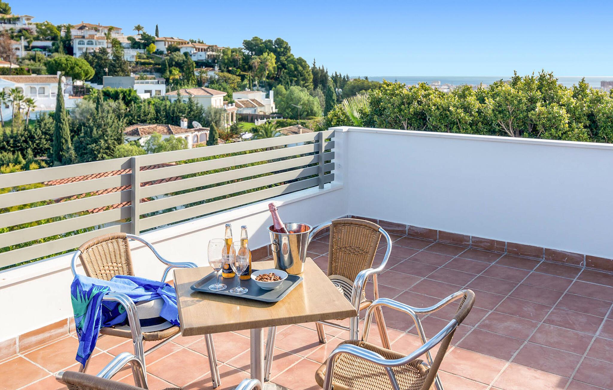 Genießen Sie den Blick auf das Meer in diesem komfortablen Ferienhaus mit Pool.