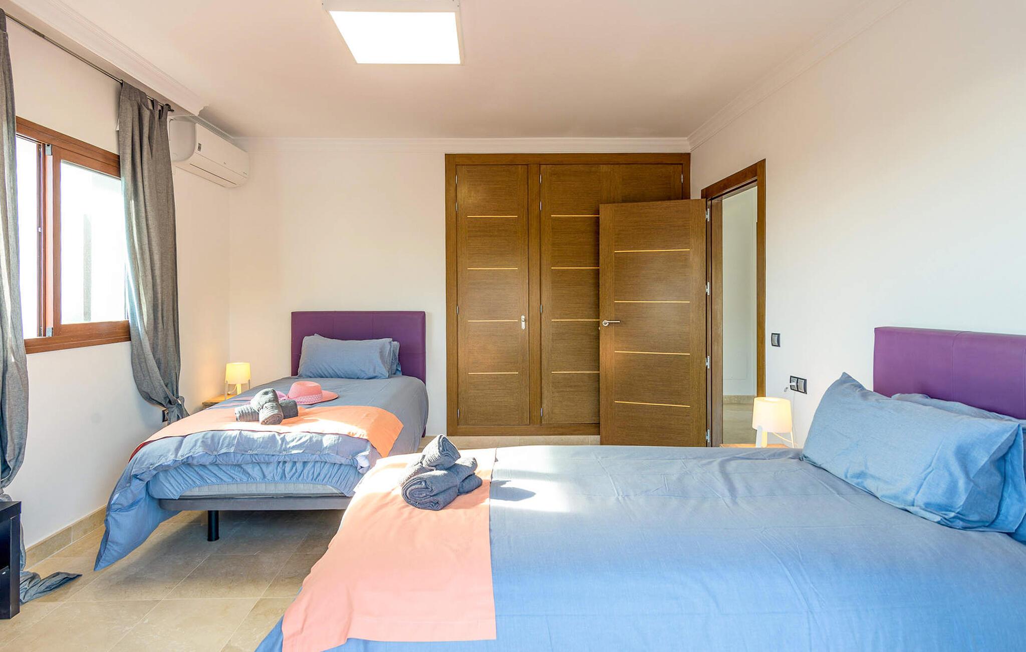 Willkommen in dem fantastisch gelegenen Haus, das Sie nur eine kurze Fahrt vom Strand begrüßt und den idealen Rahmen für einen abwechslungsreichen Urlaub mit der ganzen Familie bietet. Genießen Sie schon beim Aufwachen die herrliche Aussicht und bereiten Sie die Mahlzeiten mit Blick auf den Pool zu.