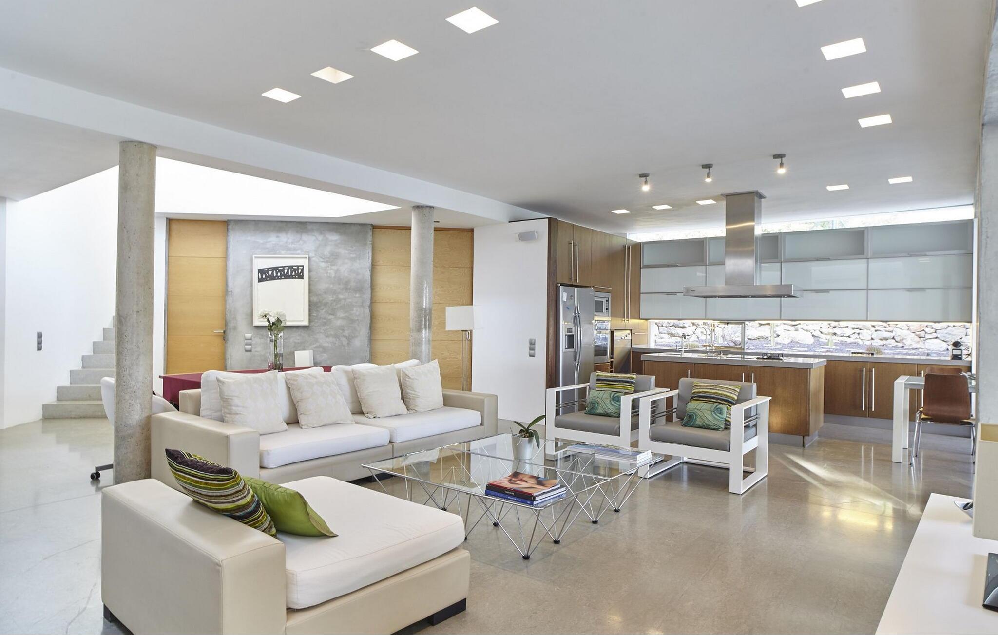 Das Haupthaus verfügt über ein großes offenes Wohnzimmer mit einer voll ausgestatteten Küche und einem Essbereich. In diesem Bereich gibt es ein Gäste-WC und einen Waschraum mit Bügeleisen, Waschmaschine und Trockner.