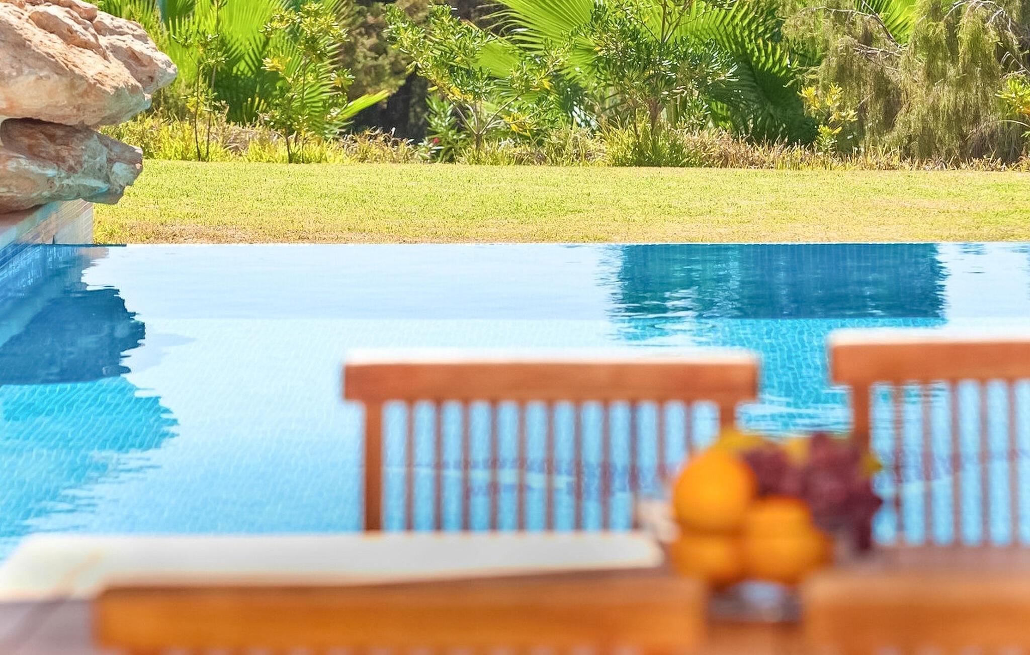 Draußen verfügt die Villa über einen Infinity-Pool, der von einem schönen Garten umgeben ist, einen Essbereich mit einem Tisch für 8 Personen, einen Grill und ein zusätzliches Badezimmer mit Dusche.