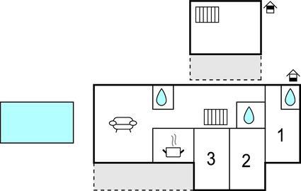Badezimmer 3m2 (nr. 2) - WC. Warmes und kaltes Wasser. Dusche