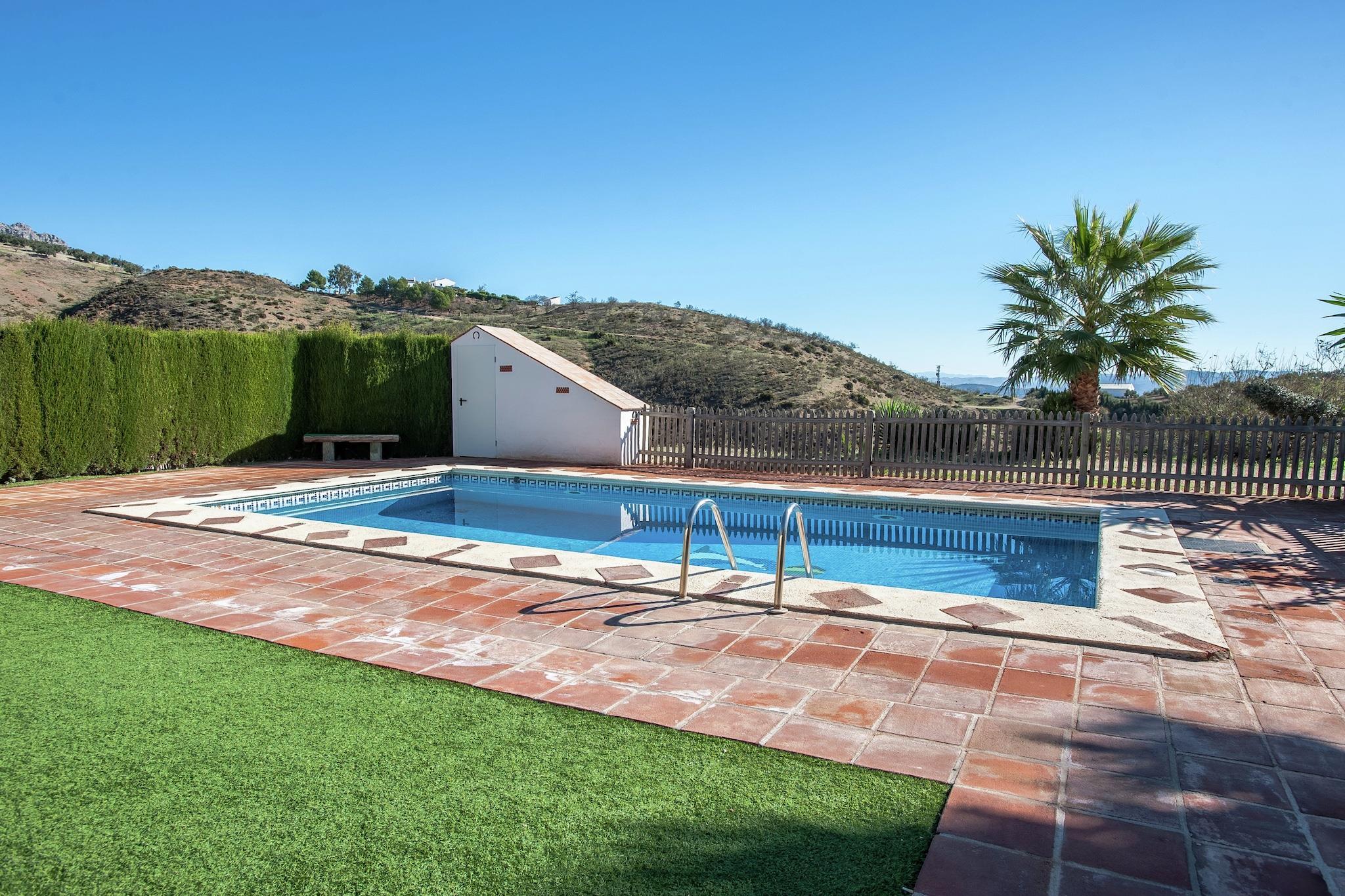 Entspannter andalusischer Rückzugsort Inmitten der ruhigen Landschaft von Villanueva de la Concepción verbindet dieses charmante Ferienhaus andalusischen Charakter mit familienfreundlichem Komfort. Genießen Sie lange Tage am privaten Pool, entspannen Sie im sprudelnden Whirlpool oder genießen Sie gemeinsame Mahlzeiten auf der Terrasse beim Grillen unter der spanischen Sonne. Kinder können sich mit Spielgeräten, Tischtennis und einem Fußballtor vergnügen. Haustiere sind herzlich willkommen – so wird dieser Aufenthalt für die ganze Familie zum Erlebnis. Naturwunder in der Nähe entdecken Das Ferienhaus ist ideal gelegen, um Andalusiens Schätze zu erkunden. Wandern Sie durch die beeindruckenden Felsformationen von El Torcal, unternehmen Sie einen spannenden Spaziergang entlang der Klippen zum Caminito del Rey oder verbringen Sie einen Tag an den ruhigen Seen von Guadalhorce. Die historische Stadt Antequera mit ihren UNESCO-Dolmen und der maurischen Festung liegt nur 20 km entfernt, während Málagas pulsierendes Stadtleben und die Strände der Costa del Sol leicht zu erreichen sind. Haustierfreundliche Wanderwege durch die Hügel und Täler laden Sie und Ihre vierbeinigen Begleiter zu gemeinsamen Erkundungstouren ein. Geschmäcker Andalusiens Im Umkreis von 4 km finden Sie lokale Restaurants mit authentischen Tapas und herzhaften andalusischen Gerichten. Genießen Sie rustikale Gerichte im El Torcal Mesón oder besuchen Sie Antequera und probieren Sie die berühmten Molletes und regionalen Weine. Für einen entspannten Abend bietet das nahegelegene Dorf gemütliche Bars, während Málagas pulsierende Gastronomieszene perfekt für einen Tagesausflug ist.