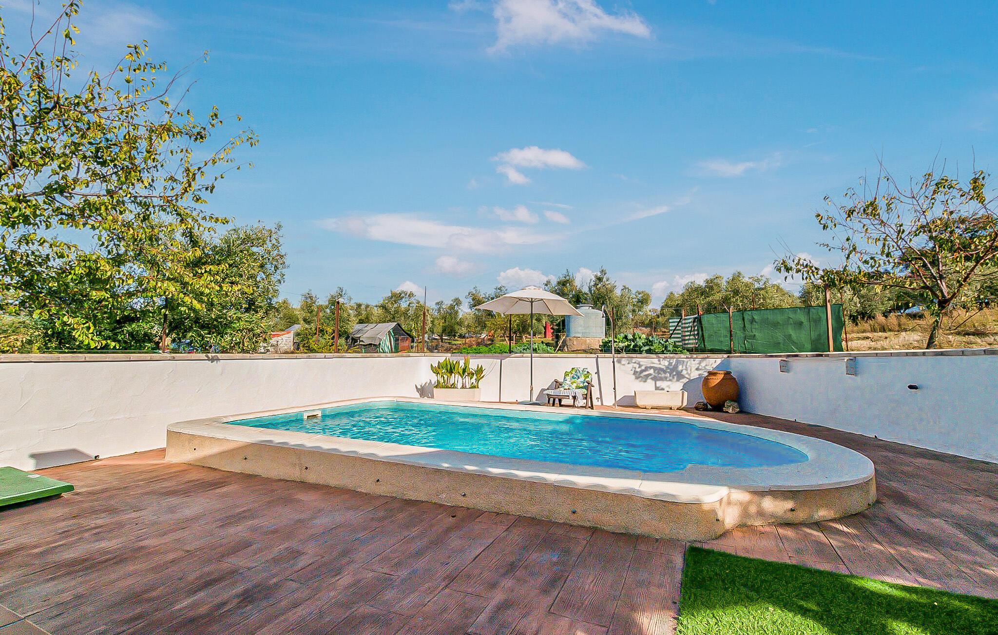 Genießen Sie in diesem geräumigen Ferienhaus mit Pool und Panoramablick eine authentische Auszeit.