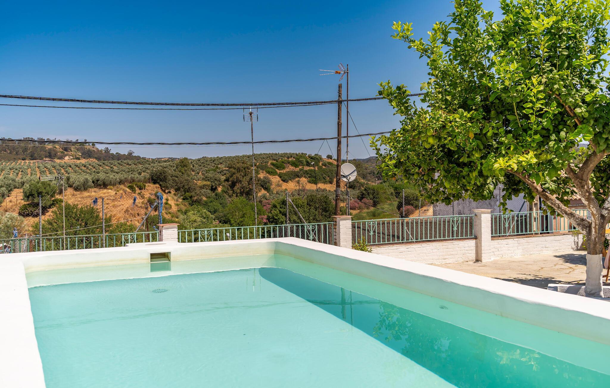 Auf der großen Terrasse mit Obstbäumen können Sie die atemberaubende Aussicht auf die umliegende Landschaft genießen und im Schatten der Bäume Ihre Mahlzeiten genießen. Der Pool lädt zu erfrischenden Badefreuden ein, während die ruhige Lage Erholung pur verspricht.