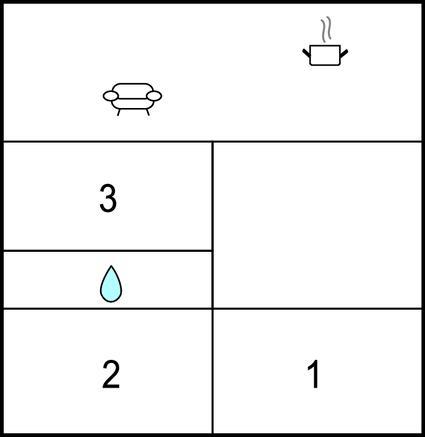 Badezimmer (nr. 1) - WC. Warmes und kaltes Wasser. Dusche