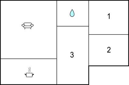 Badezimmer (nr. 1) - WC. Warmes und kaltes Wasser. Dusche