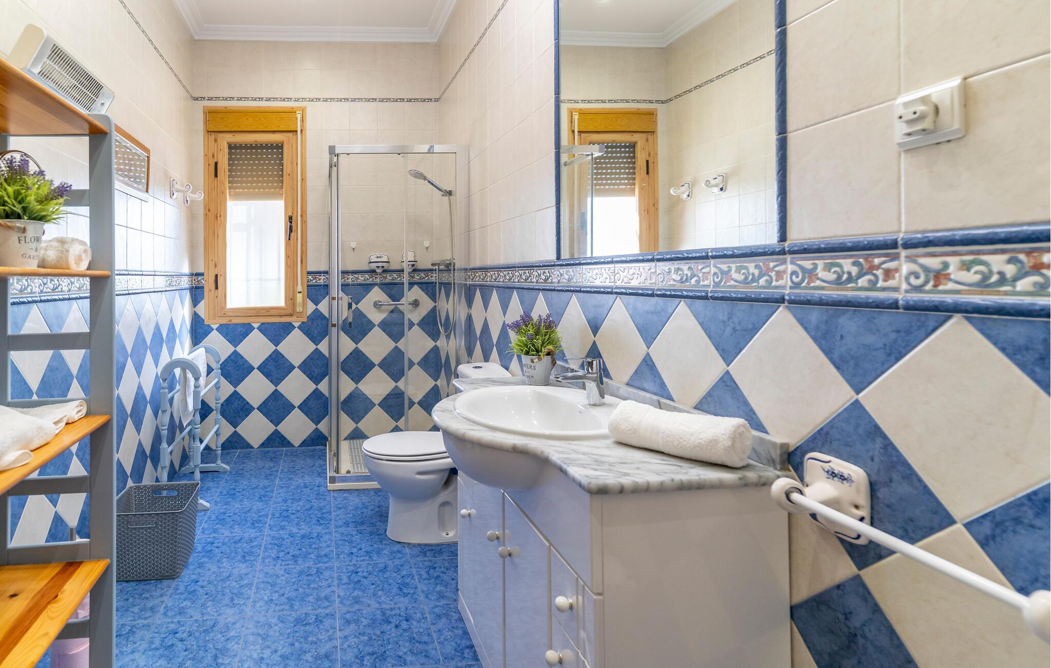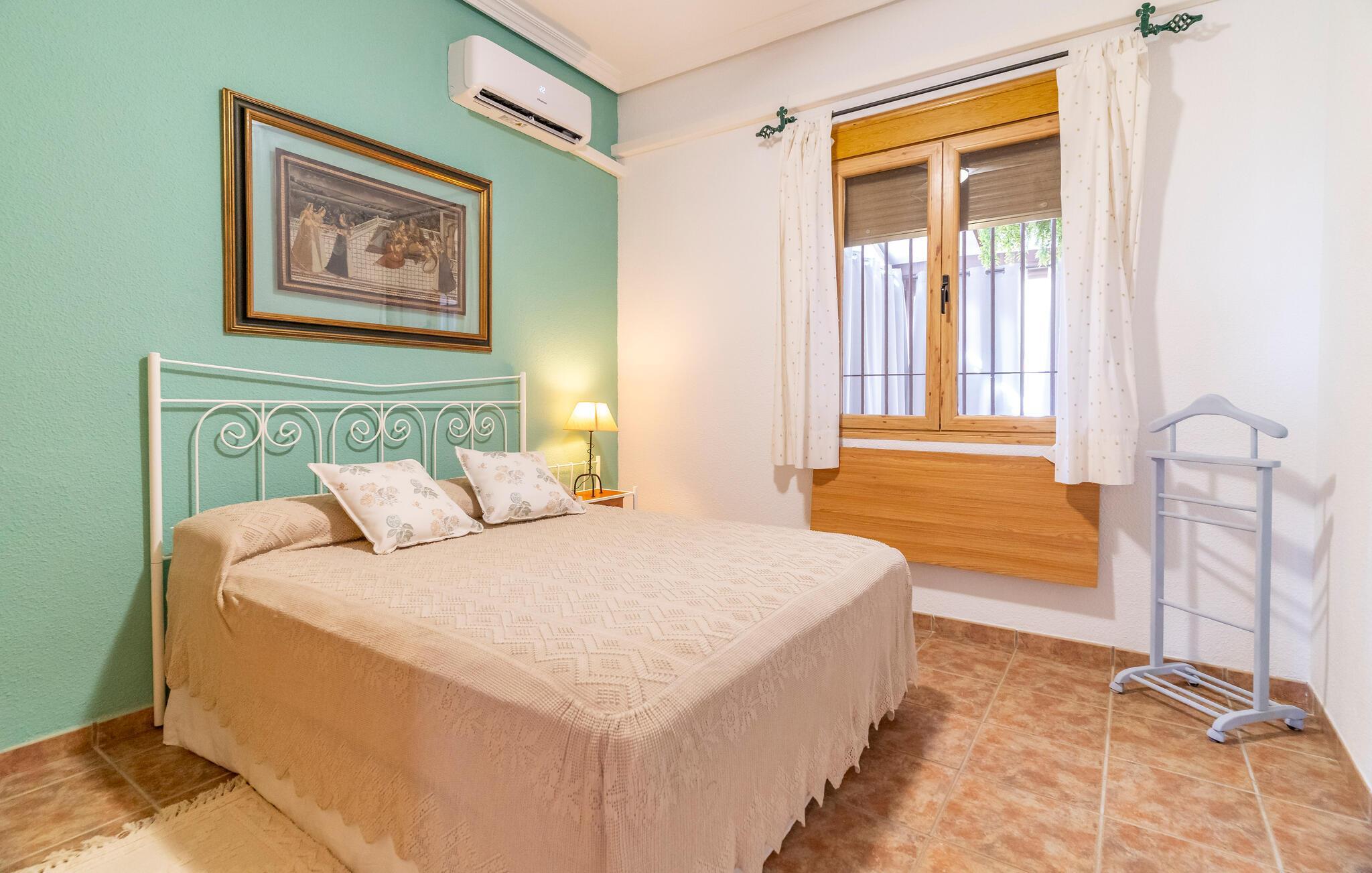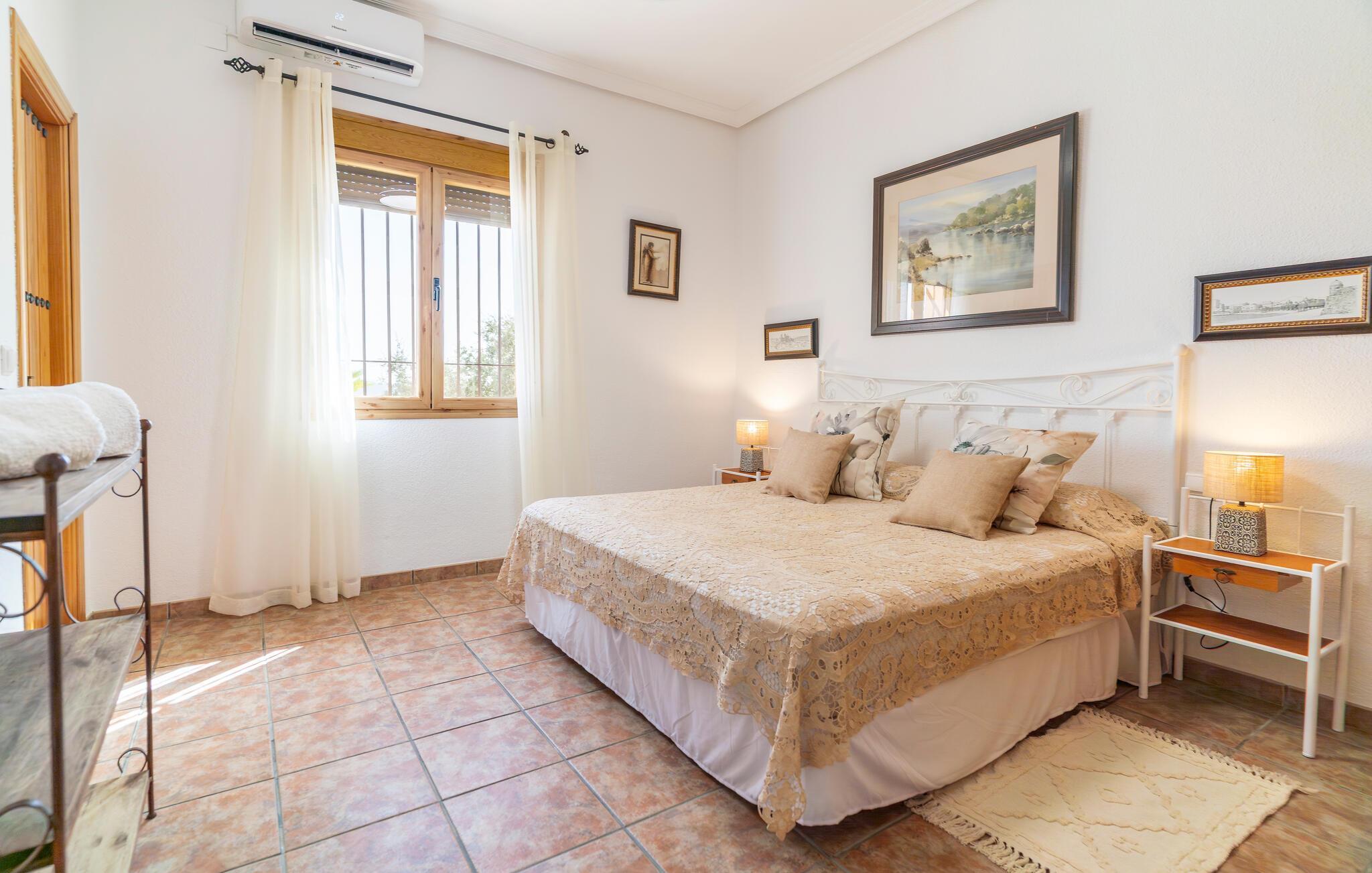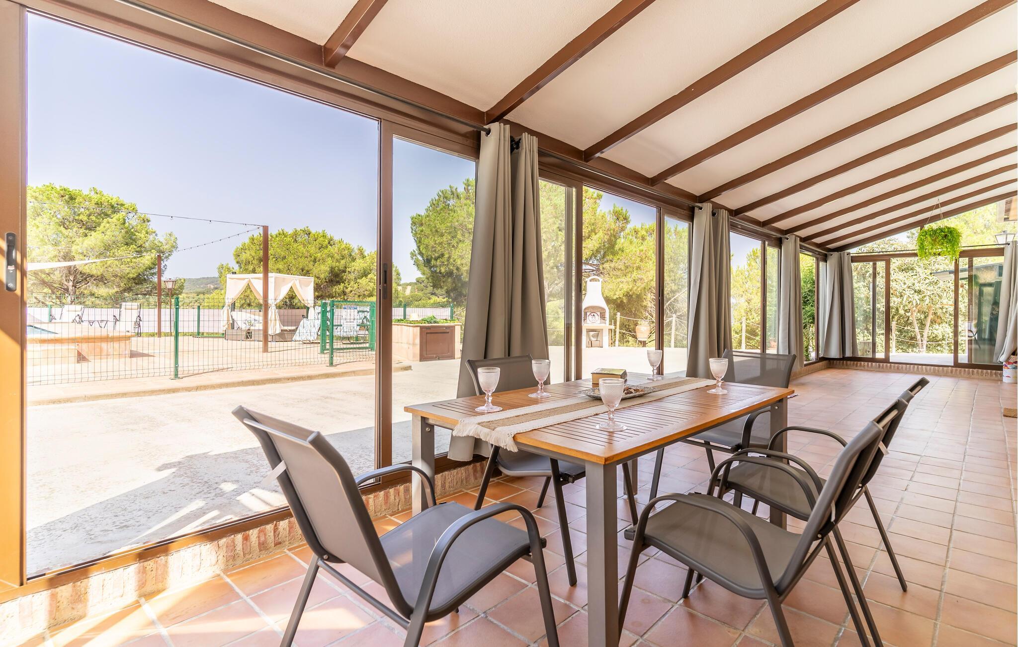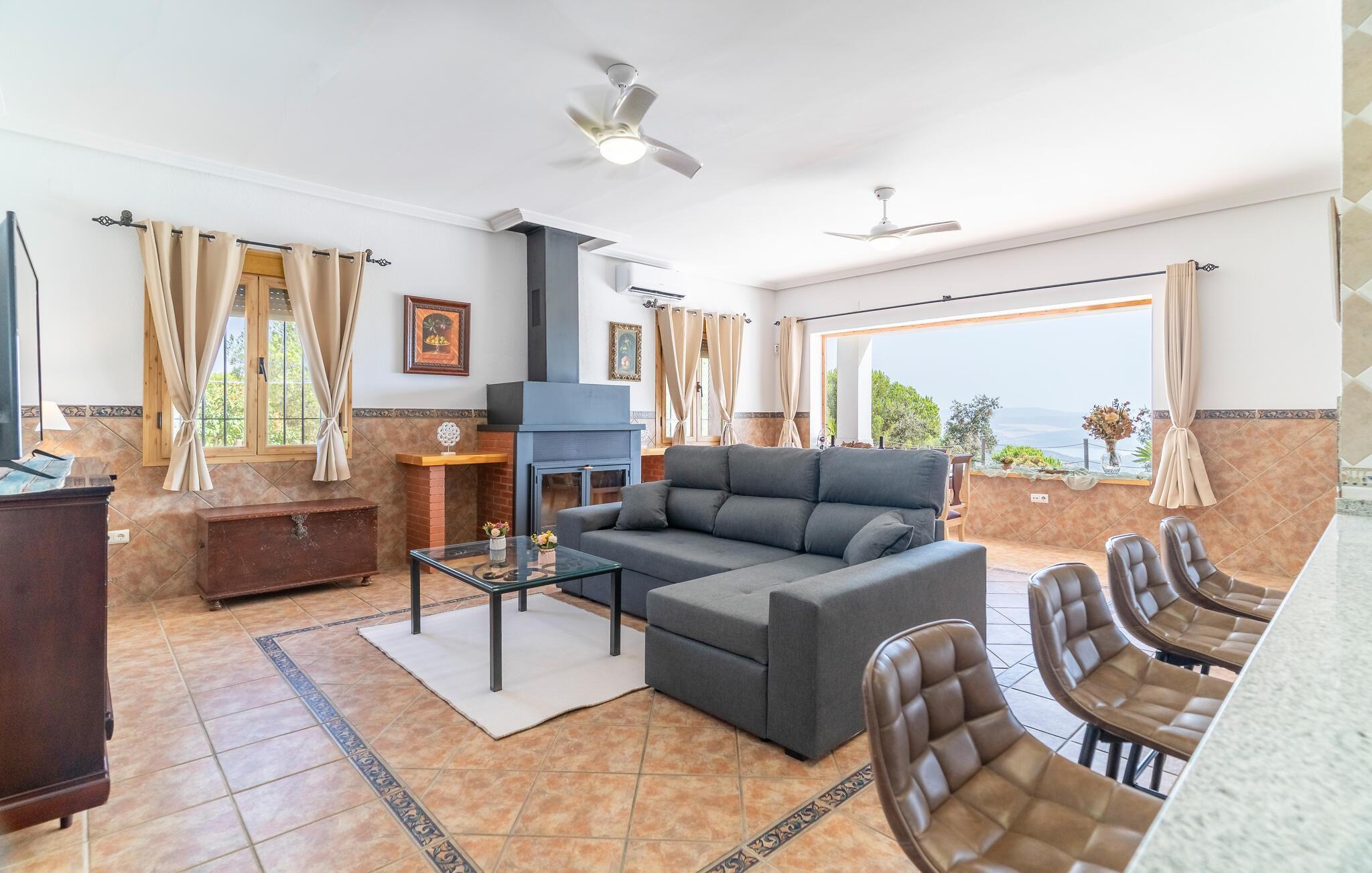 Freuen Sie sich auf eine entspannte Auszeit in diesem charmanten Ferienhaus, eingebettet in eine idyllische Landschaft. Treten Sie ein in den Wohnbereich, der mit schönen Möbeln und mediterranen Akzenten überzeugt. Machen Sie es sich auf dem komfortablen Sofa gemütlich oder genießen Sie ein gutes Buch im lichtdurchfluteten Raum. Bereiten Sie in der Küche unkompliziert Ihre Lieblingsgerichte zu. Nutzen Sie den angrenzenden Essbereich für gemeinsame Mahlzeiten.
