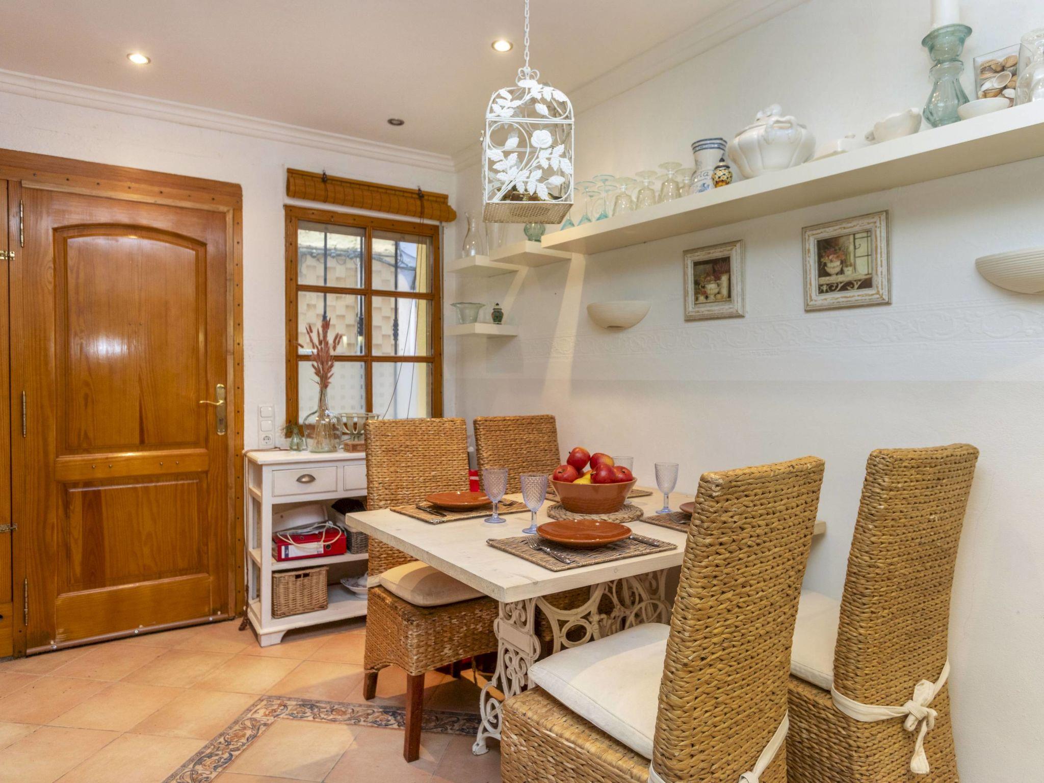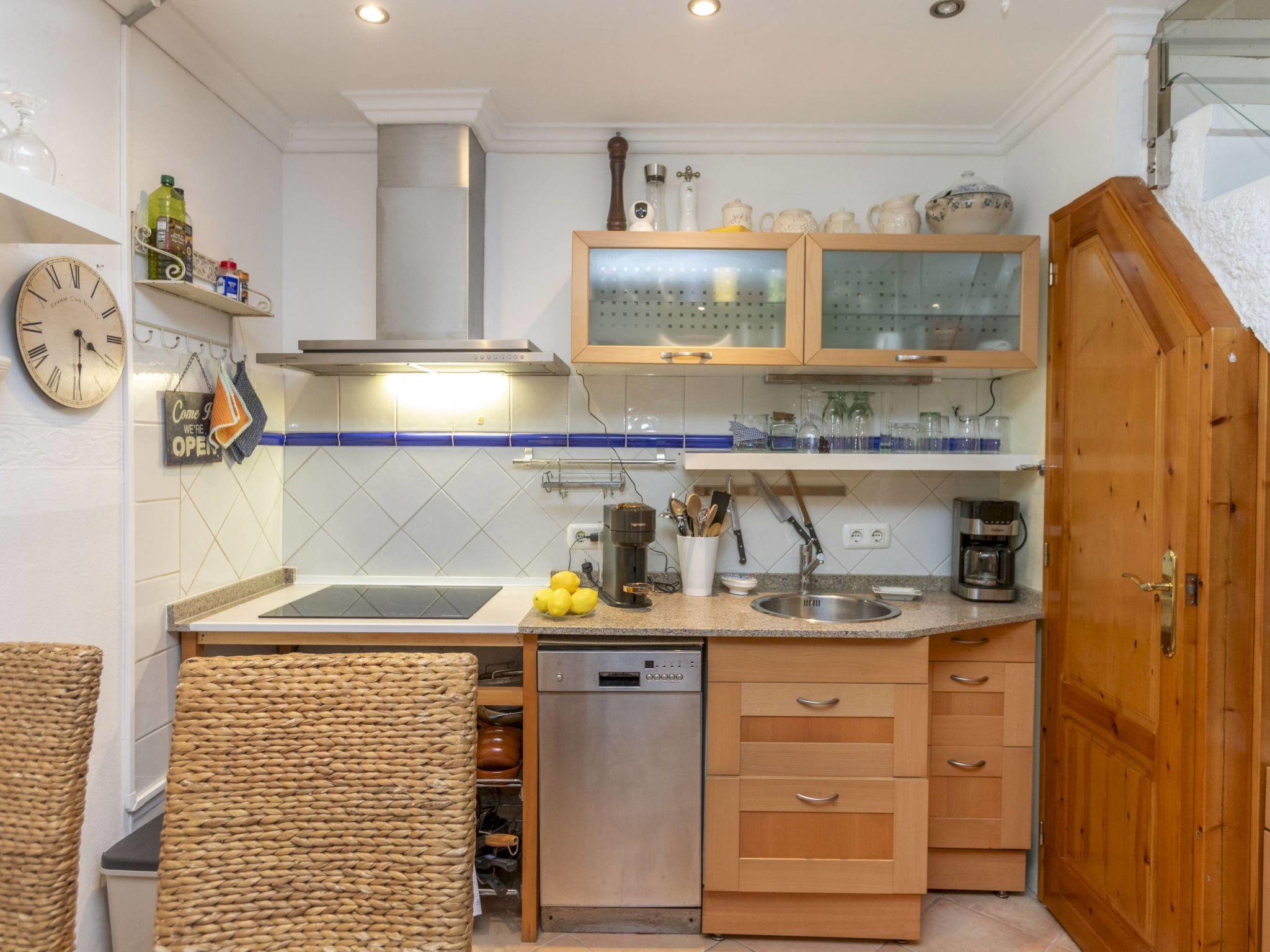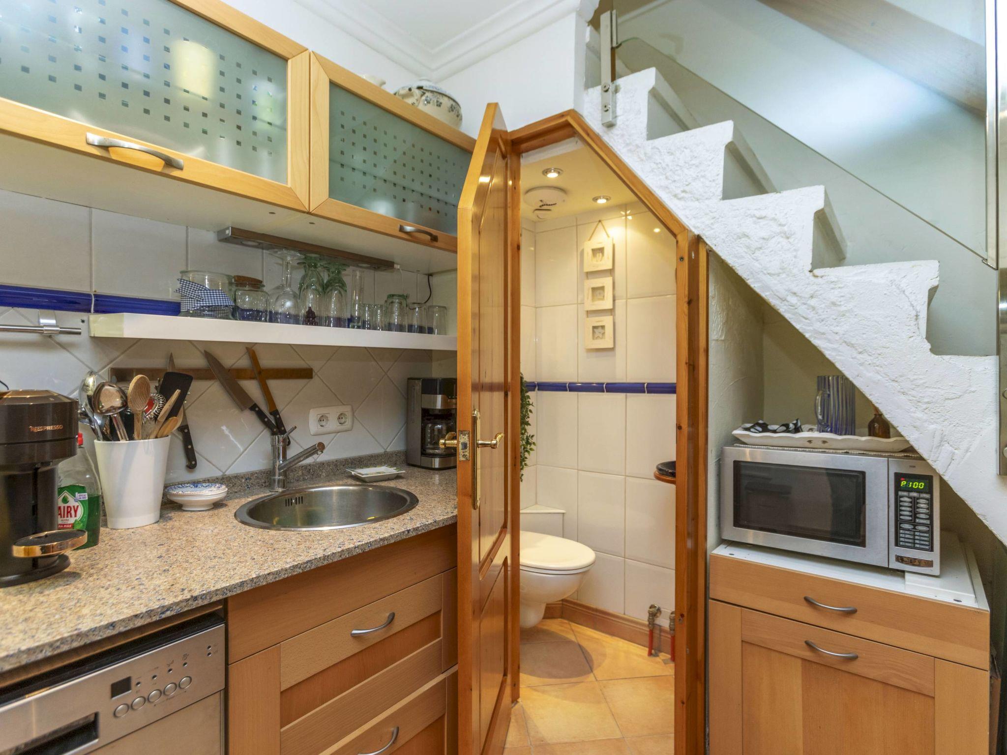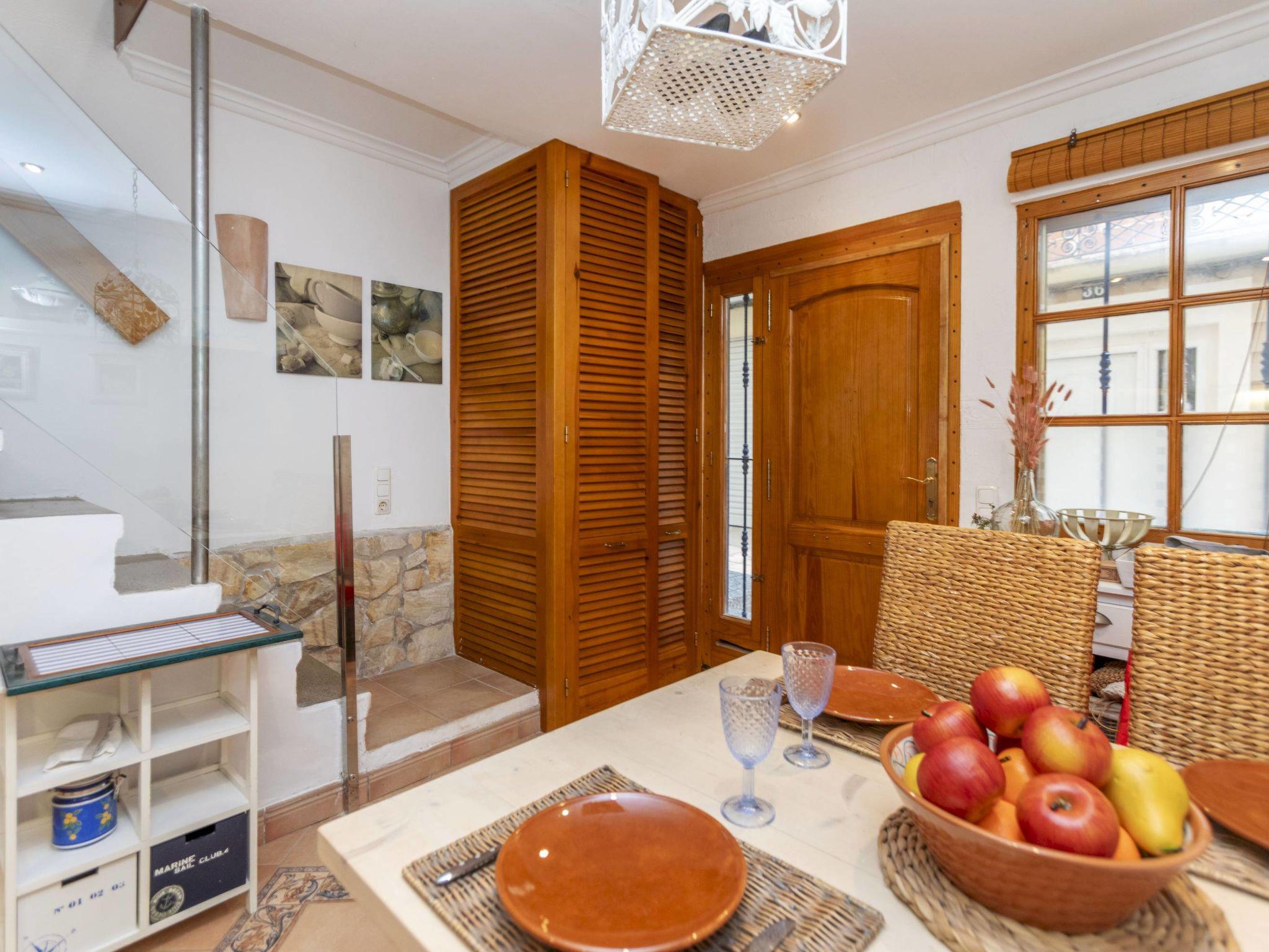 "Corazón de Vinaròs", 2-Zimmer-Haus 57 m2 auf 3 Stockwerken. Renoviert im Jahre 2005, komfortabel eingerichtet: offene Küche (Geschirrspüler, 3 Induktionskochplatten, Toaster, Mikrowelle, elektrische Kaffeemaschine) mit Esstisch. Sep. WC. Obergeschoss: (steile Treppe) Wohnzimmer mit 1 Diwanbett (135 cm, Länge 190 cm), Digital-TV, Klimaanlage und Warmluftheizung. Ausgang zum Balkon. 2. Obergeschoss: (steile Treppe) 1 Zimmer mit 1 franz. Bett (1 x 150 cm, Länge 190 cm), Klimaanlage und Warmluftheizung. Ausgang zum Balkon. Dusche/WC. Boiler (45 Liter). 3. Obergeschoss: (steile Treppe) Erker. Grosse Terrasse 9 m2. Terrassenmöbel. Zur Verfügung: Waschmaschine, Wäschetrockner, Haartrockner. Internet (WLAN, gratis). Bitte beachten: Nichtraucher-Haus. Kein Fahrstuhl. VT-40083CS // Reg. Nr.: ESFCTU000012009000375526000000000000000000VT-40083CS2