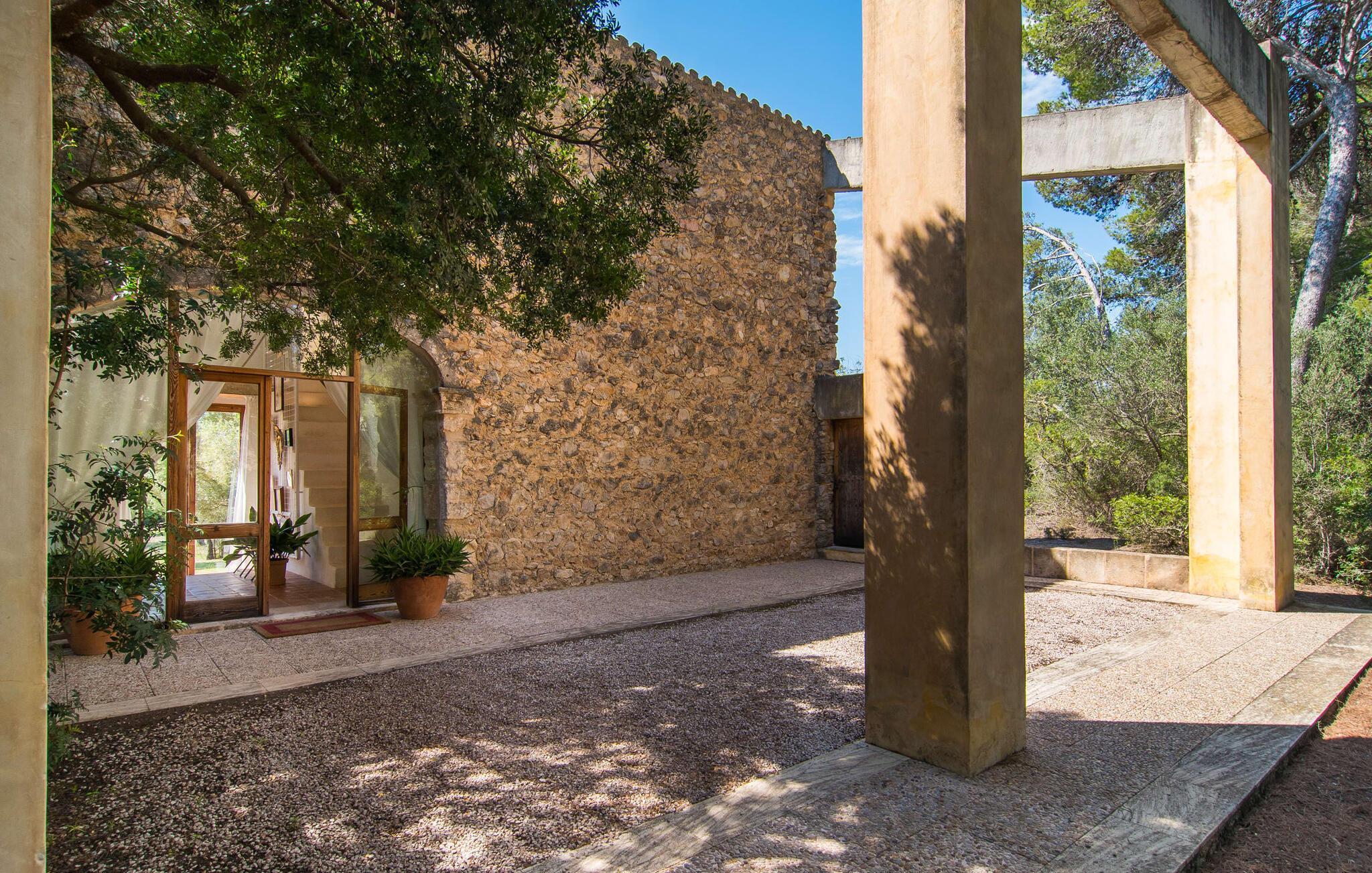 Die nächstgelegene Stadt ist das 3,2 km entfernte Son Servera, dessen Freitags-Wochenmarkt unbedingt auf dem Programm stehen sollte. Das charmante Städtchen Artà, ebenfalls mit einem beeindruckenden Wochenmarkt, lädt zum Verweilen und Bummeln ein. Ein Besuch der Cafés und Restaurants in der Altstadt, auch neben der Festung auf dem Hügel, lohnt sich immer. Der nächste Golfplatz (Pula Golf) ist 2,4 km entfernt. Die nächsten schönen Naturstrände sind nur 5 km entfernt. Die architektonisch bemerkenswerte Villa „Viterbo“ liegt in absolut ruhiger Alleinlage im Osten der Insel nahe einem kleinen Wäldchen. Vom Grundstück aus haben Sie einen weiten Blick auf das Meer. Die nächste Stadt Son Servera ist nur 2,5 km entfernt. Die kleine, aber feine Stadt Artà mit ihrem bekannten Wochenmarkt und tollen Einkaufsmöglichkeiten ist in überschaubarer Entfernung erreichbar. Die Strände sind nur ca. 5 km entfernt.