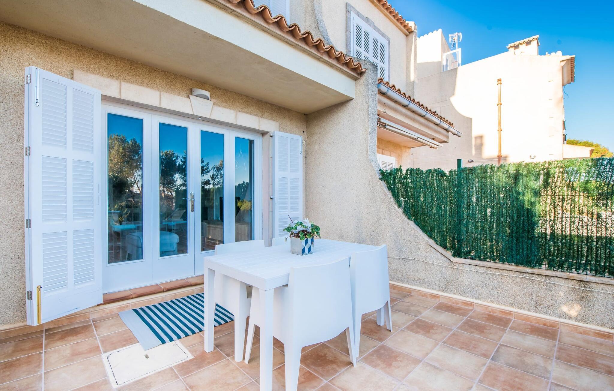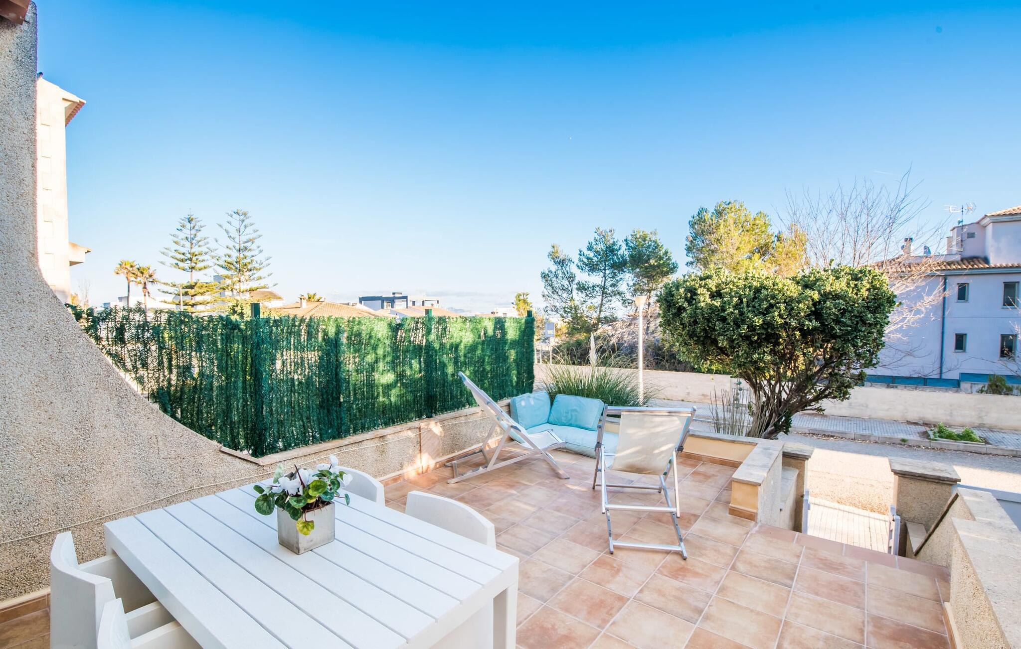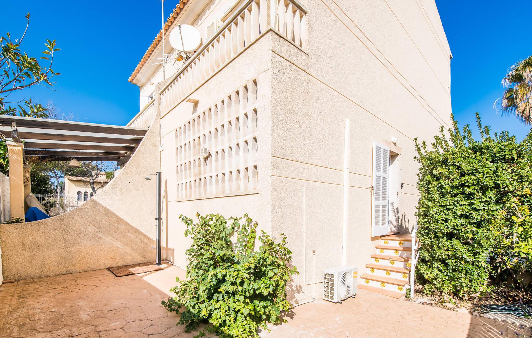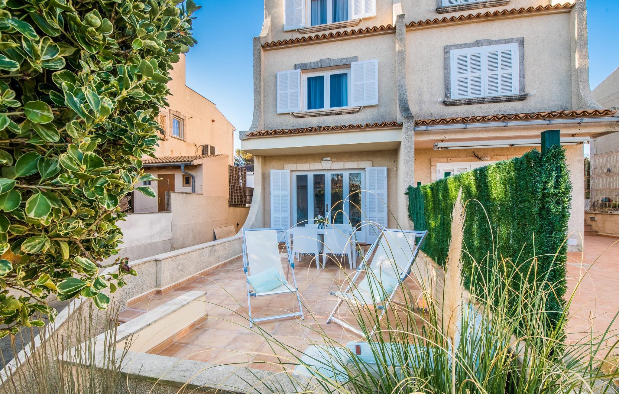 Ungetrübte Tage am Meer verbringen, in einer sommerlichen Villa mitten im wunderschönen Küstenort Son Serra de Marina residieren – dieser Urlaubstraum wird mit „Vora Mar“ Wirklichkeit! Die leicht erhöhte Terrasse, ausgestattet mit vielfältigen Möbeln, bietet wunderbare Möglichkeiten, es sich unter freiem mediterranen Himmel gemütlich zu machen. Ein Sichtschutz der benachbarten Doppelhaushälfte sorgt für die nötige Privatsphäre und eine Außendusche – sogar mit Warmwasser – sorgt für die ersehnte Erfrischung. Der natürliche Mega-Pool ist nicht weit entfernt und Sand und Meerwasser warten auf Sonnenhungrige, die lange Tage am Strand lieben. Wenn Sie nach Hause kommen und Ihren Sundowner genießen, können Sie die lebendige Atmosphäre des Dorfes aufsaugen und darüber nachdenken, wo Sie am Abend vielleicht hingehen möchten. Vielleicht schlendern Sie in eines der einladenden Restaurants und genießen regionale Köstlichkeiten?