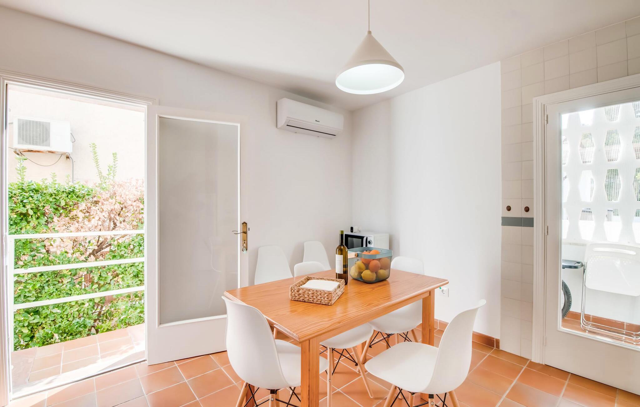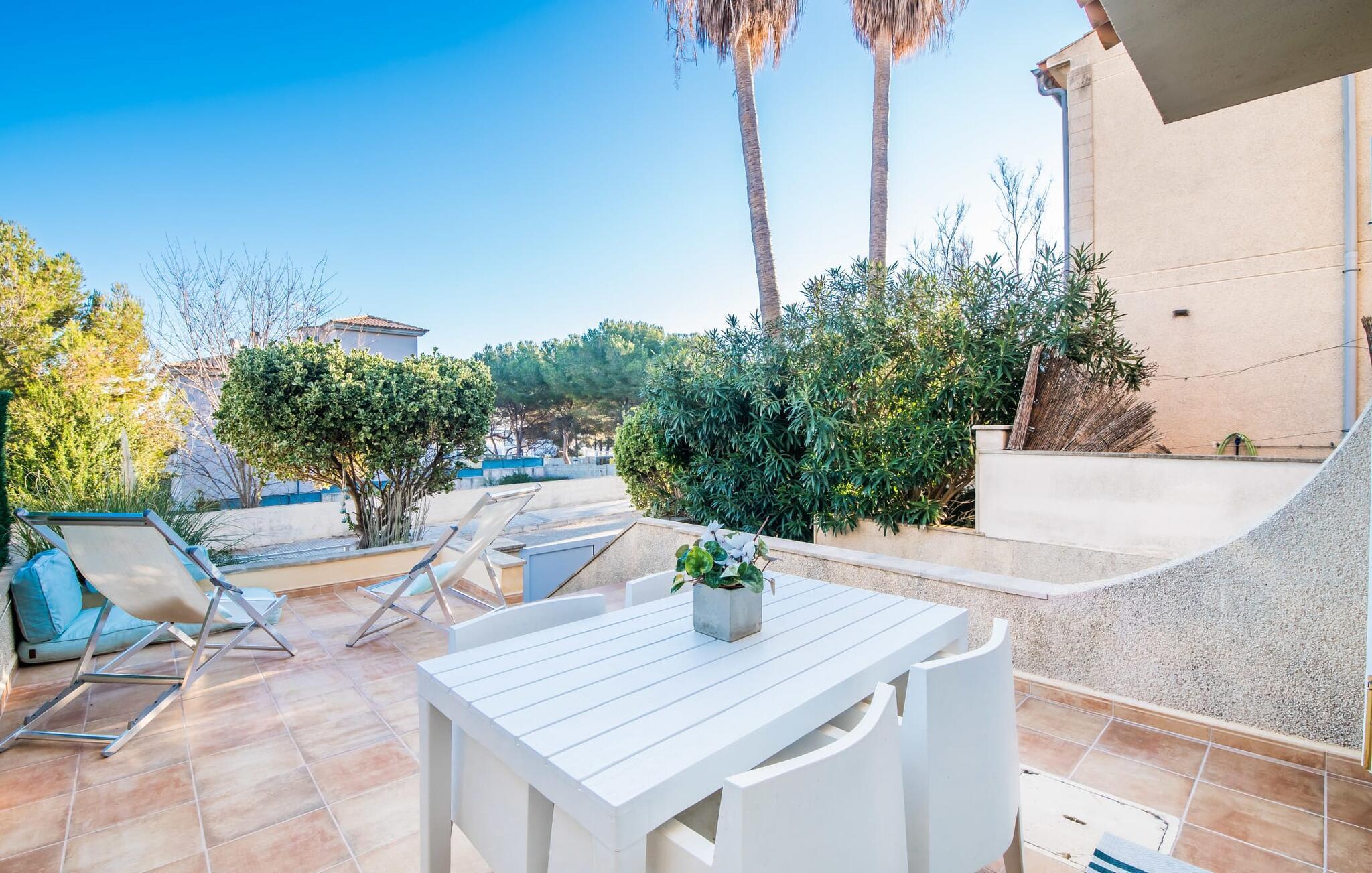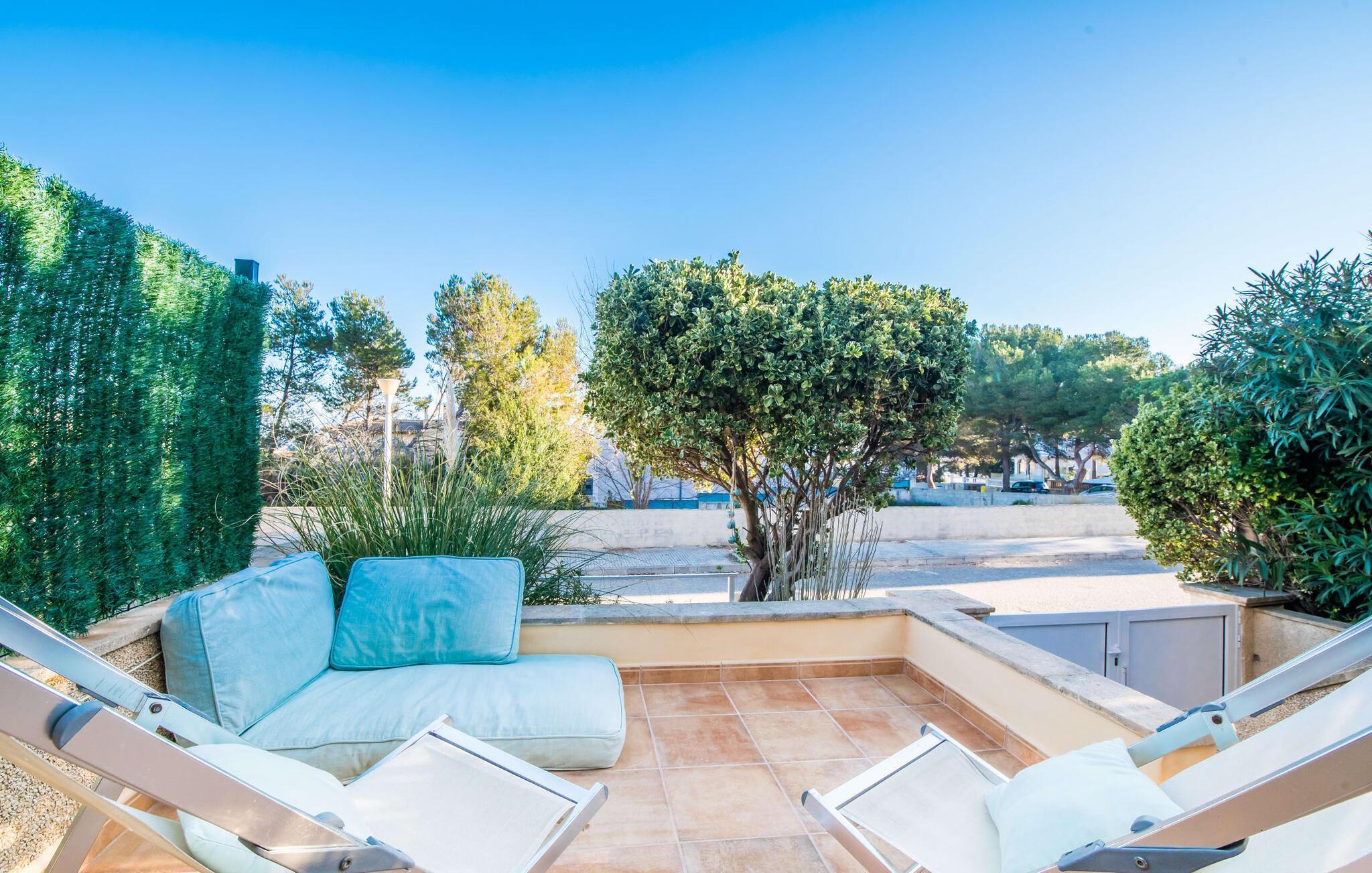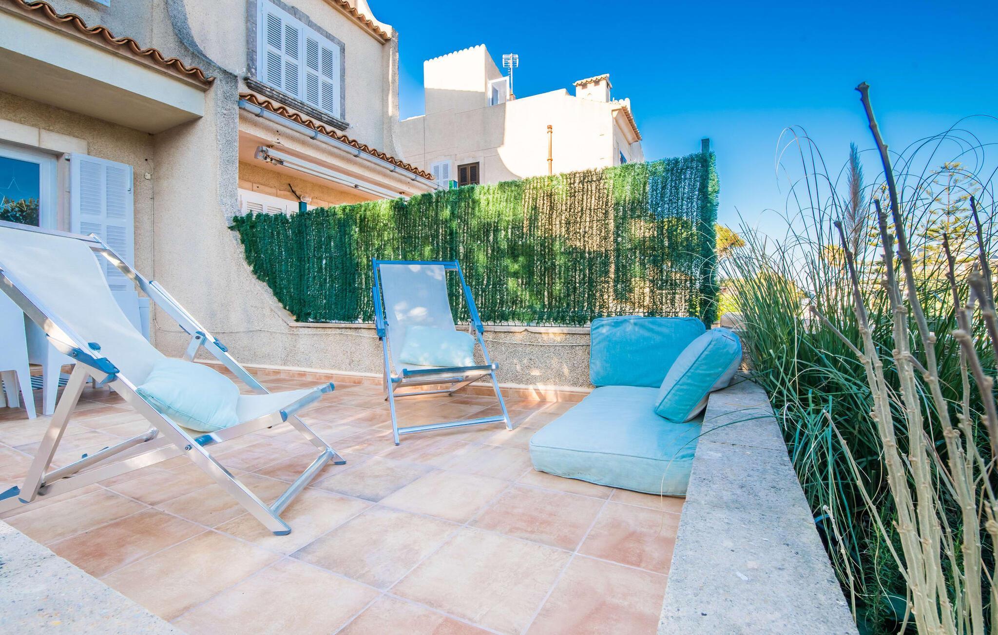 Ungetrübte Tage am Meer verbringen, in einer sommerlichen Villa mitten im wunderschönen Küstenort Son Serra de Marina residieren – dieser Urlaubstraum wird mit „Vora Mar“ Wirklichkeit! Die leicht erhöhte Terrasse, ausgestattet mit vielfältigen Möbeln, bietet wunderbare Möglichkeiten, es sich unter freiem mediterranen Himmel gemütlich zu machen. Ein Sichtschutz der benachbarten Doppelhaushälfte sorgt für die nötige Privatsphäre und eine Außendusche – sogar mit Warmwasser – sorgt für die ersehnte Erfrischung. Der natürliche Mega-Pool ist nicht weit entfernt und Sand und Meerwasser warten auf Sonnenhungrige, die lange Tage am Strand lieben. Wenn Sie nach Hause kommen und Ihren Sundowner genießen, können Sie die lebendige Atmosphäre des Dorfes aufsaugen und darüber nachdenken, wo Sie am Abend vielleicht hingehen möchten. Vielleicht schlendern Sie in eines der einladenden Restaurants und genießen regionale Köstlichkeiten?