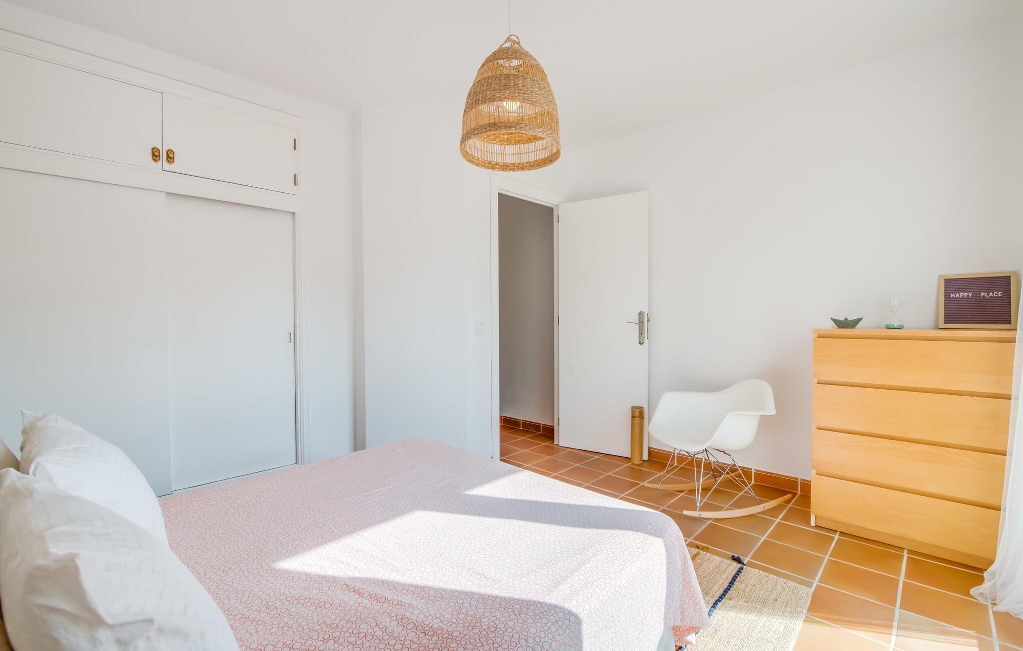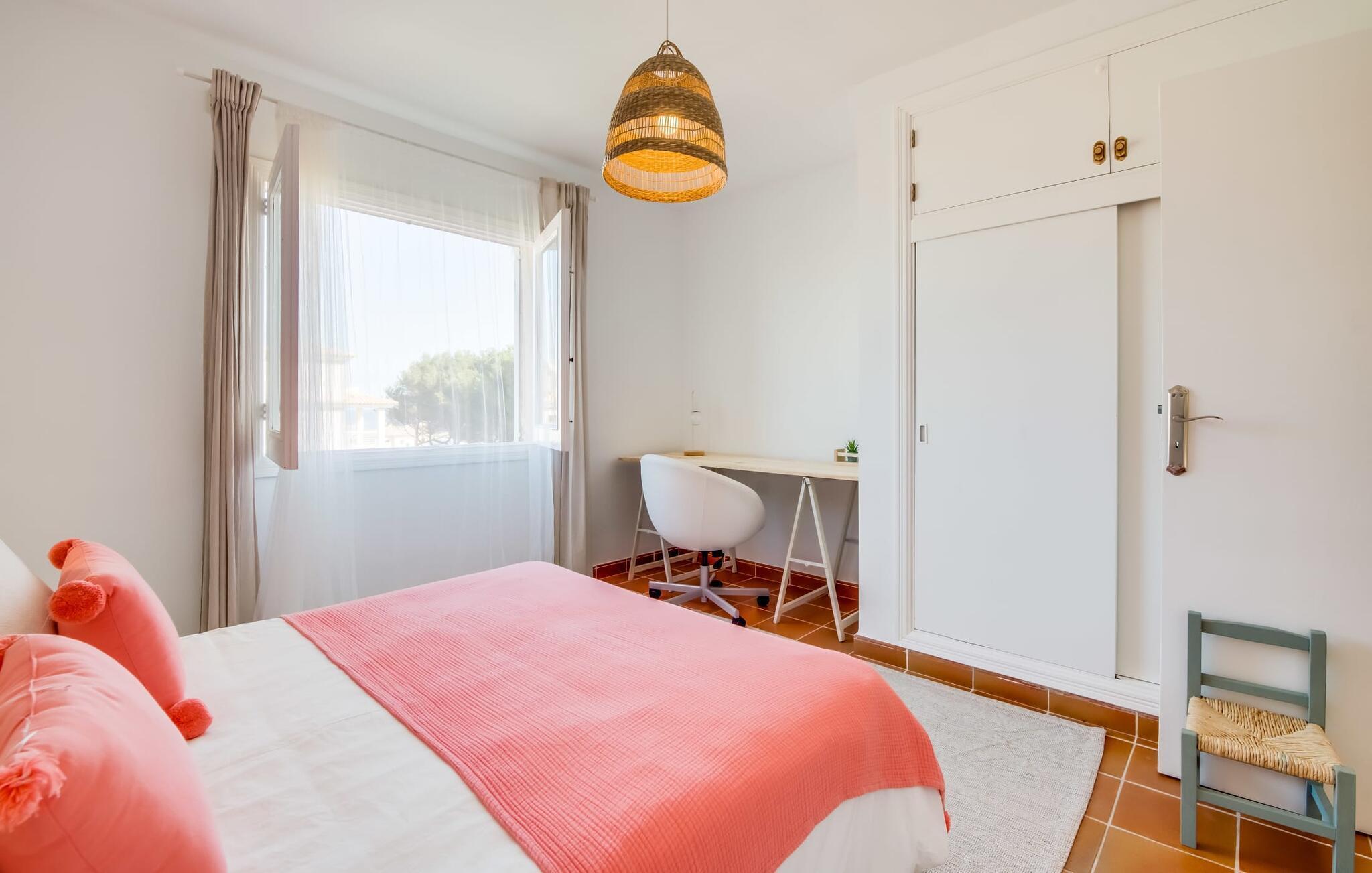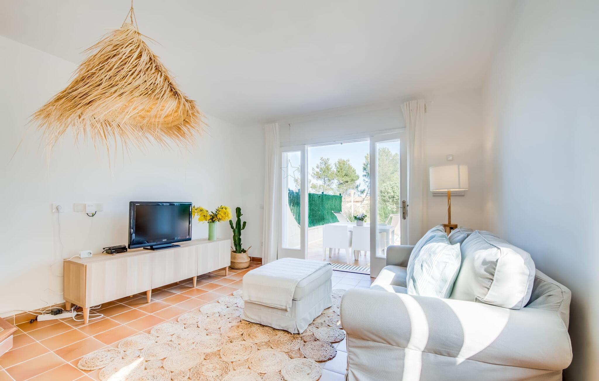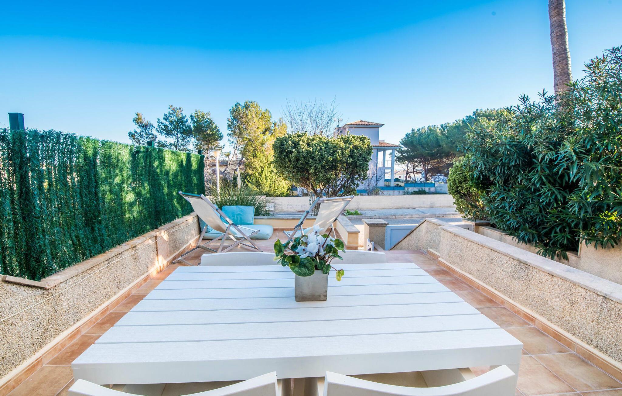 Ungetrübte Tage am Meer verbringen, in einer sommerlichen Villa mitten im wunderschönen Küstenort Son Serra de Marina residieren – dieser Urlaubstraum wird mit „Vora Mar“ Wirklichkeit! Die leicht erhöhte Terrasse, ausgestattet mit vielfältigen Möbeln, bietet wunderbare Möglichkeiten, es sich unter freiem mediterranen Himmel gemütlich zu machen. Ein Sichtschutz der benachbarten Doppelhaushälfte sorgt für die nötige Privatsphäre und eine Außendusche – sogar mit Warmwasser – sorgt für die ersehnte Erfrischung. Der natürliche Mega-Pool ist nicht weit entfernt und Sand und Meerwasser warten auf Sonnenhungrige, die lange Tage am Strand lieben. Wenn Sie nach Hause kommen und Ihren Sundowner genießen, können Sie die lebendige Atmosphäre des Dorfes aufsaugen und darüber nachdenken, wo Sie am Abend vielleicht hingehen möchten. Vielleicht schlendern Sie in eines der einladenden Restaurants und genießen regionale Köstlichkeiten?