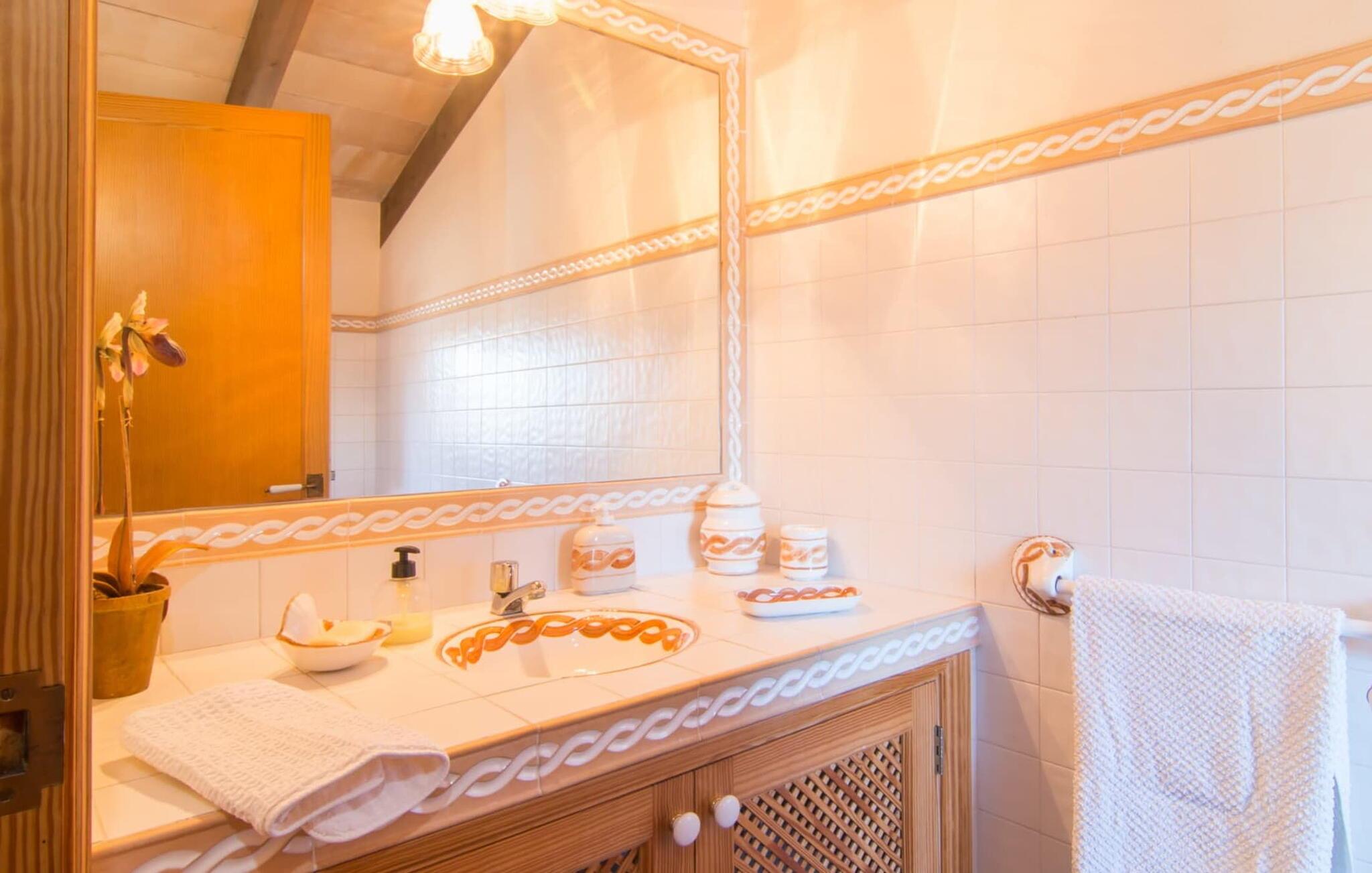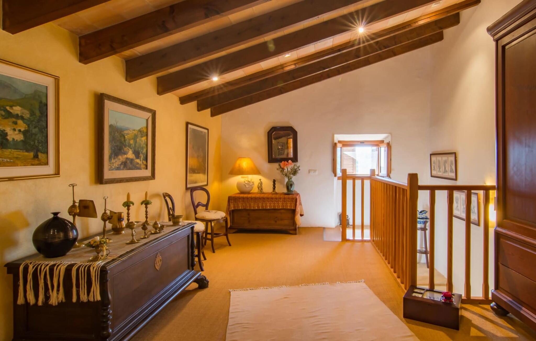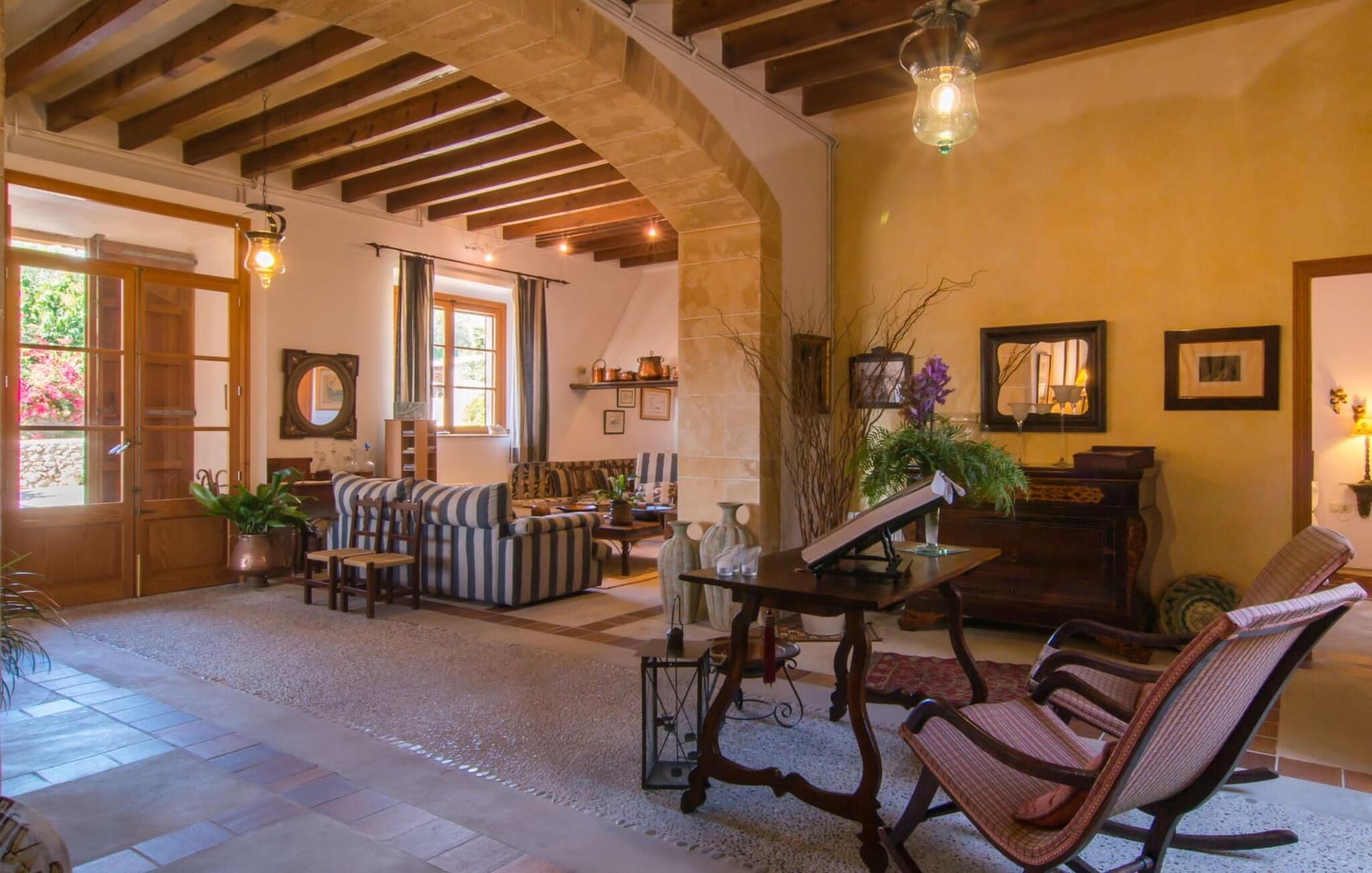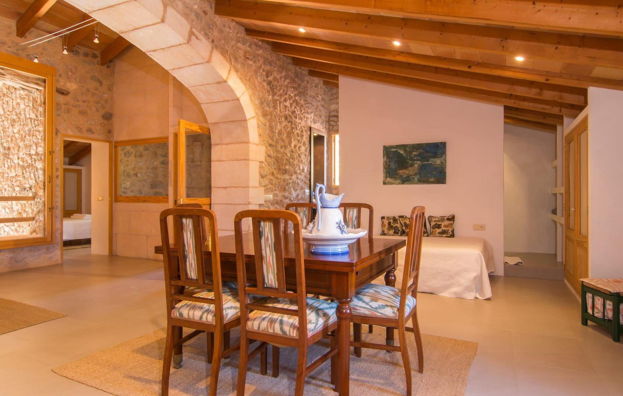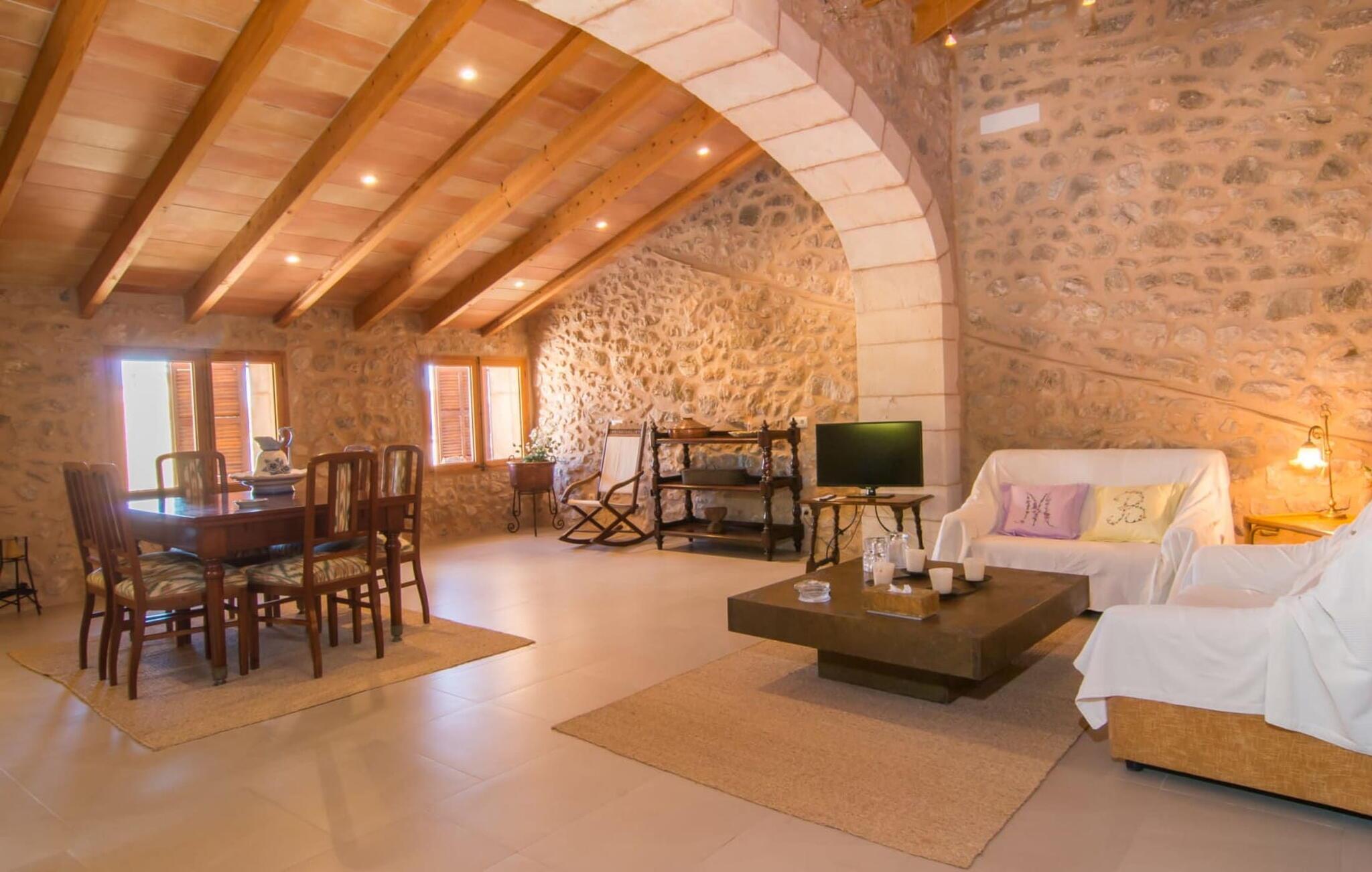 Trotz der langen Geschichte dieses Anwesens, das zu den bedeutendsten auf Mallorca zählt, ist es heute ein modernes Ferienhaus, ausgestattet mit allem Komfort, den Sie für einen erholsamen und erholsamen Villenurlaub benötigen. Lassen Sie den Alltagsstress langsam in den Hintergrund treten und tanken Sie neue Kraft in diesem traditionellen, wunderbar rustikalen Ambiente. Die Liebe zum Detail des Eigentümers bei der Gestaltung des Hauses hat Platz für eine rundum stimmungsvolle und erfrischende Atmosphäre geschaffen. Insgesamt verfügt das Haus über sechs komfortabel eingerichtete Doppelzimmer – vier mit einem großen Doppelbett und die anderen beiden mit jeweils zwei Einzelbetten –, in denen Sie tagsüber eine Siesta genießen und nachts gut schlafen können. Darüber hinaus stehen Ihnen vier Badezimmer zur Verfügung. Eines davon befindet sich im separaten Poolhaus; Ein weiteres befindet sich in einer separaten Wohnung mit eigenem Eingang, zusammen mit einem Schlafzimmer und einem großen Wohnzimmer. Es gibt ein zusätzliches Gäste-WC, was vor allem bei voller Belegung des Hauses sehr praktisch ist. Eine voll ausgestattete Küche im spanischen Stil steht für die gemeinsame Zubereitung von Mahlzeiten zur Verfügung und eignet sich hervorragend zum Hand-in-Hand-Arbeiten. Neben Kühlschrank, Herd, Backofen, Geschirrspüler, Toaster und Mikrowelle ist es auch mit Wasserkocher, Nespresso- und Espressomaschine ausgestattet, sodass dem morgendlichen Tee oder Kaffee auf der Frühstücksterrasse nichts im Wege steht. Vor der Küche erstreckt sich ein großer Essbereich mit einem riesigen Esstisch und passenden Holzsitzen. Dieser Teil führt in den eigentlichen Wohnbereich des Hauses, der sich über zwei durch Stufen getrennte Etagen erstreckt. Die verschiedenen Sitzecken und der Fernseher laden dazu ein, es sich im Innenbereich gemütlich zu machen und die verschiedenen Ruhebereiche voll auszunutzen. Das Haus ist praktischerweise mit einer Heizungsanlage ausgestattet, so dass eine ganzjährige Nutzung unter optimalen Bedingungen möglich ist. Da „Xiclati“ in das Haupthaus und ein Apartment aufgeteilt ist, ist es besonders ideal für größere Reisegruppen. Unsere Empfehlung gilt auch für gemeinsam reisende Familien mit Kindern, da die clevere Aufteilung und die üppige Fläche ein besonders hohes Maß an Privatsphäre ermöglichen.