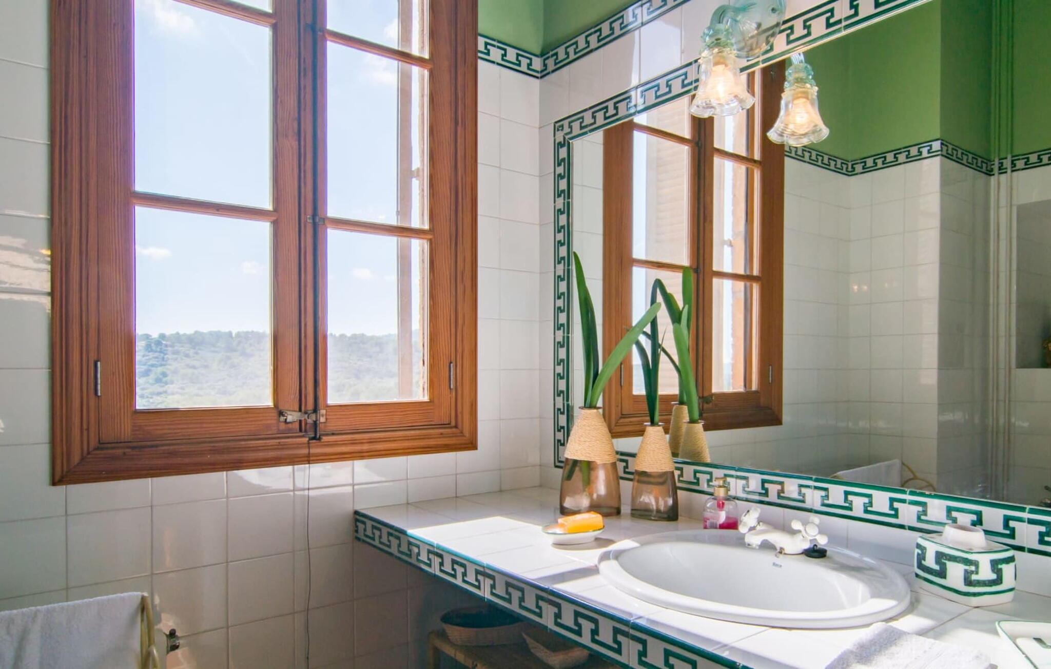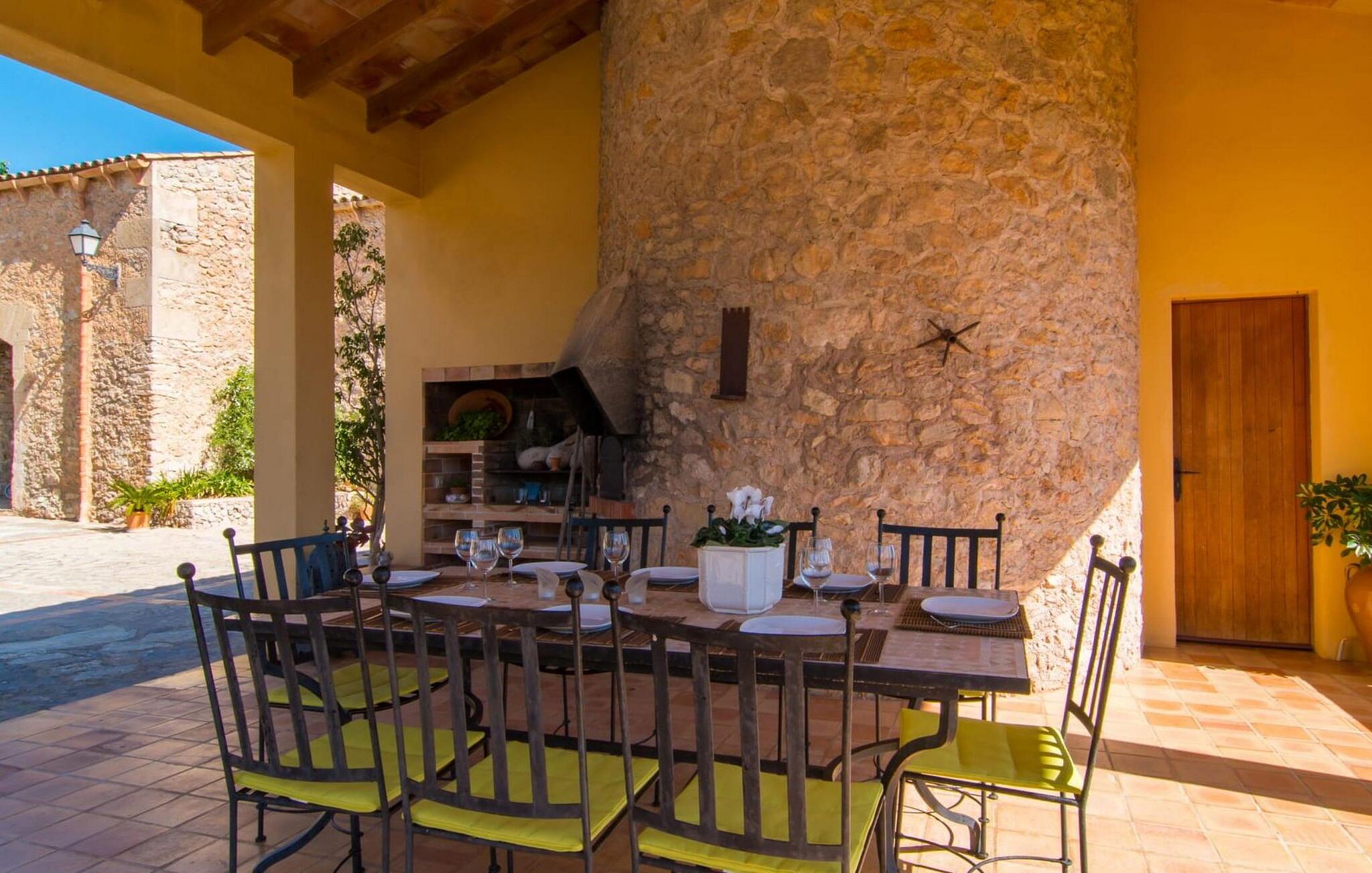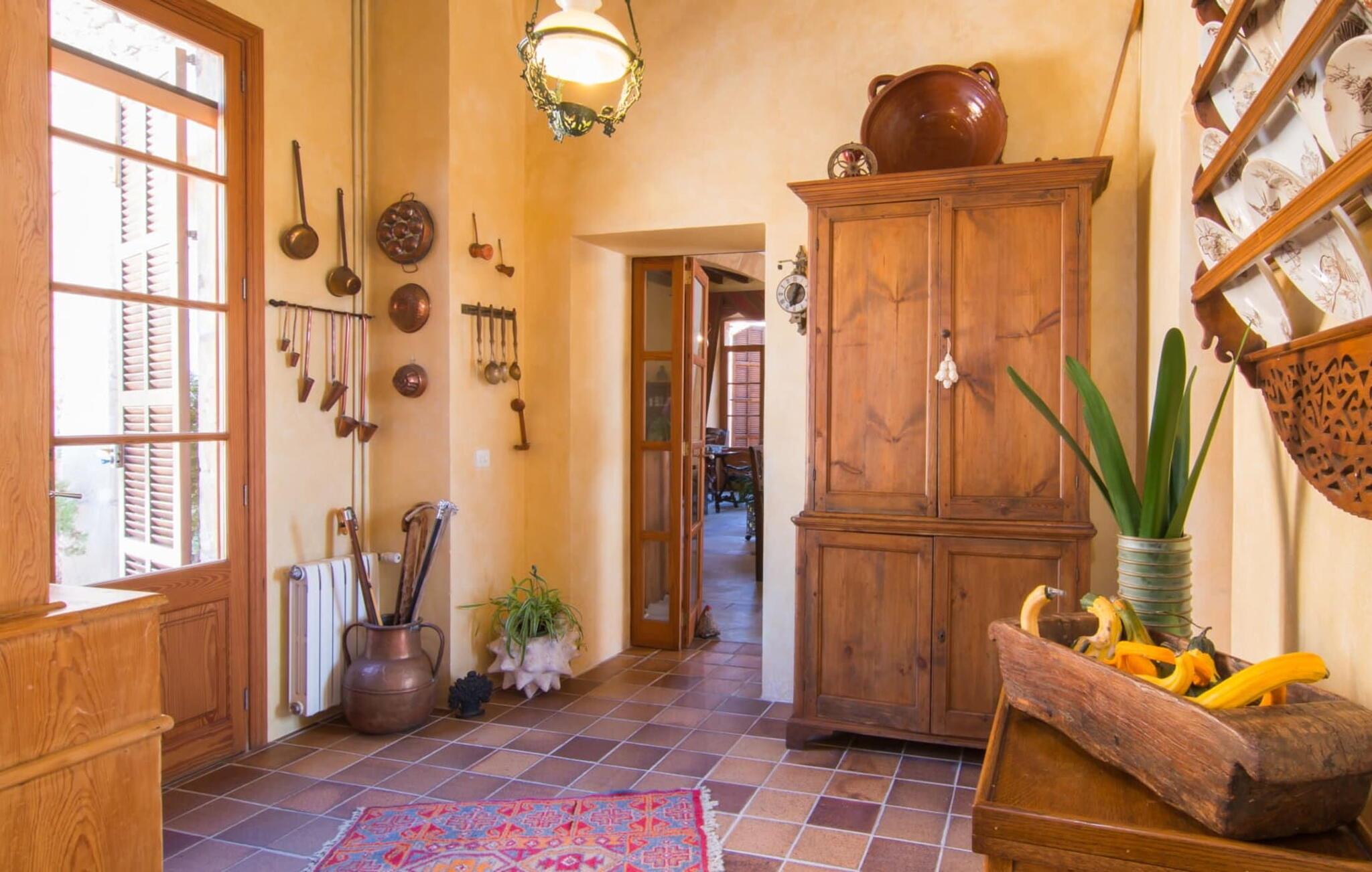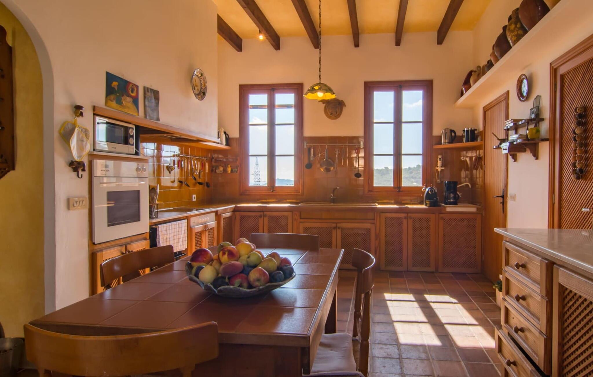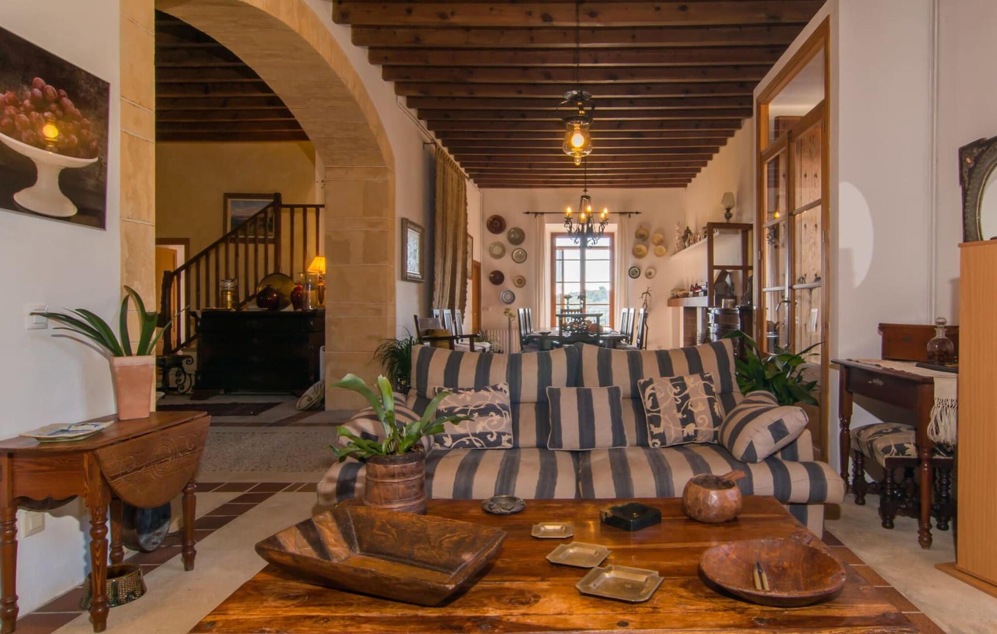 Trotz der langen Geschichte dieses Anwesens, das zu den bedeutendsten auf Mallorca zählt, ist es heute ein modernes Ferienhaus, ausgestattet mit allem Komfort, den Sie für einen erholsamen und erholsamen Villenurlaub benötigen. Lassen Sie den Alltagsstress langsam in den Hintergrund treten und tanken Sie neue Kraft in diesem traditionellen, wunderbar rustikalen Ambiente. Die Liebe zum Detail des Eigentümers bei der Gestaltung des Hauses hat Platz für eine rundum stimmungsvolle und erfrischende Atmosphäre geschaffen. Insgesamt verfügt das Haus über sechs komfortabel eingerichtete Doppelzimmer – vier mit einem großen Doppelbett und die anderen beiden mit jeweils zwei Einzelbetten –, in denen Sie tagsüber eine Siesta genießen und nachts gut schlafen können. Darüber hinaus stehen Ihnen vier Badezimmer zur Verfügung. Eines davon befindet sich im separaten Poolhaus; Ein weiteres befindet sich in einer separaten Wohnung mit eigenem Eingang, zusammen mit einem Schlafzimmer und einem großen Wohnzimmer. Es gibt ein zusätzliches Gäste-WC, was vor allem bei voller Belegung des Hauses sehr praktisch ist. Eine voll ausgestattete Küche im spanischen Stil steht für die gemeinsame Zubereitung von Mahlzeiten zur Verfügung und eignet sich hervorragend zum Hand-in-Hand-Arbeiten. Neben Kühlschrank, Herd, Backofen, Geschirrspüler, Toaster und Mikrowelle ist es auch mit Wasserkocher, Nespresso- und Espressomaschine ausgestattet, sodass dem morgendlichen Tee oder Kaffee auf der Frühstücksterrasse nichts im Wege steht. Vor der Küche erstreckt sich ein großer Essbereich mit einem riesigen Esstisch und passenden Holzsitzen. Dieser Teil führt in den eigentlichen Wohnbereich des Hauses, der sich über zwei durch Stufen getrennte Etagen erstreckt. Die verschiedenen Sitzecken und der Fernseher laden dazu ein, es sich im Innenbereich gemütlich zu machen und die verschiedenen Ruhebereiche voll auszunutzen. Das Haus ist praktischerweise mit einer Heizungsanlage ausgestattet, so dass eine ganzjährige Nutzung unter optimalen Bedingungen möglich ist. Da „Xiclati“ in das Haupthaus und ein Apartment aufgeteilt ist, ist es besonders ideal für größere Reisegruppen. Unsere Empfehlung gilt auch für gemeinsam reisende Familien mit Kindern, da die clevere Aufteilung und die üppige Fläche ein besonders hohes Maß an Privatsphäre ermöglichen.