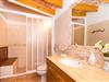 Im Inneren dieses sorgfältig restaurierten Refugiums verschmilzt der rustikale Charme nahtlos mit modernem Komfort. Im Erdgeschoss befinden sich ein gemütliches Wohnzimmer mit Kamin, eine separate Landhausküche mit Essecke, ein großzügiges Esszimmer mit Sofaecke und Zugang zur überdachten Terrasse, ein Doppelschlafzimmer mit Bad en Suite und ein Gäste-WC . Im Obergeschoss erwarten Sie drei weitere gemütliche Doppelzimmer. Eines davon verfügt über ein eigenes Bad und einen eigenen Balkon, während sich die anderen beiden ein separates Badezimmer teilen. Mallorquinische Fensterläden und Moskitonetze sorgen für erholsame Siestas und friedliche Nächte. Alle vier Schlafzimmer sind mit einer Klimaanlage ausgestattet, während Heizkörper das gesamte Ferienhaus wärmen.