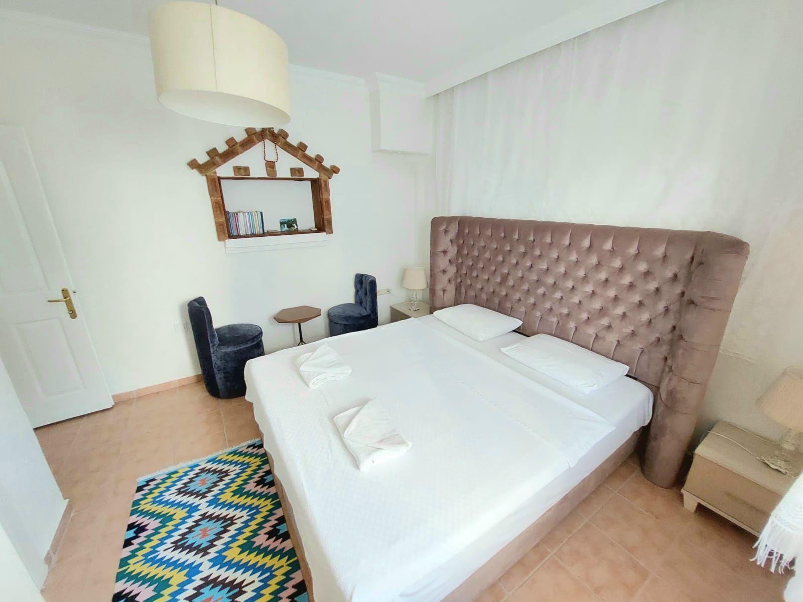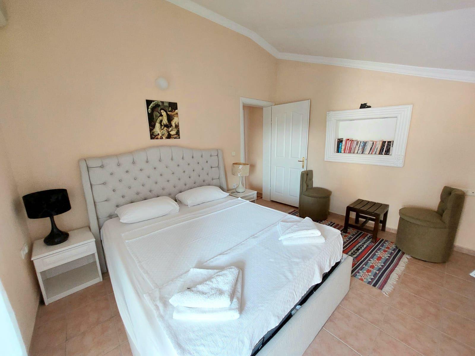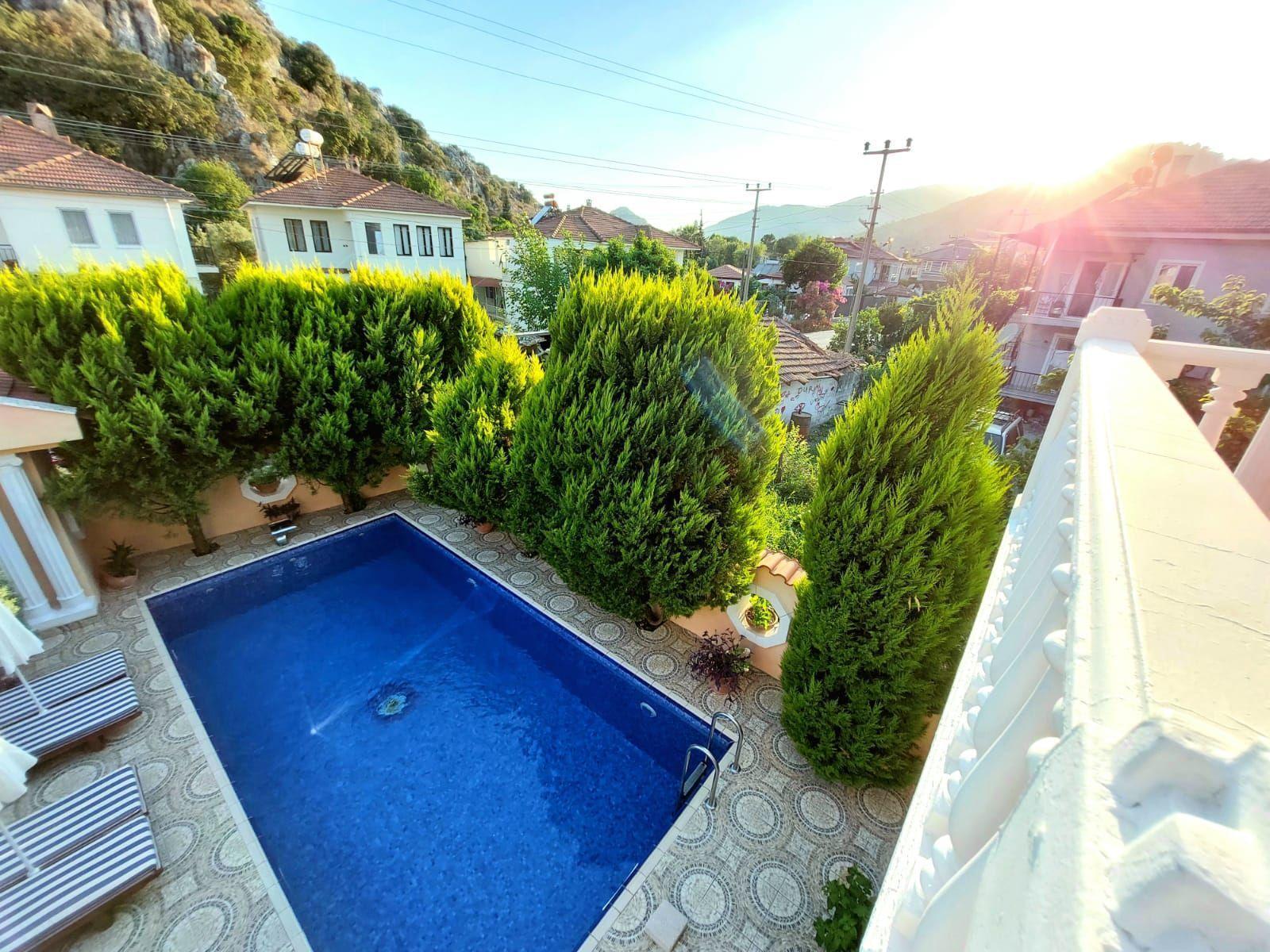 Das Innere dieser Villa mit fünf Schlafzimmern strahlt Luxus und Komfort aus und bietet Platz für bis zu 13 Gäste. Alle Zimmer sind klimatisiert und mit Marmorböden und modern renovierten Badezimmern ausgestattet, um einen Aufenthalt zu gewährleisten, der Modernität mit Komfort verbindet. Die Villa verfügt über eine voll ausgestattete Küche mit allen wichtigen Geräten wie Kühlschrank mit Gefrierfach, Waschmaschine, Geschirrspüler, Backofen, Herd, Wasserkocher und Toaster. Die Wohnbereiche sind geräumig, mit bequemen Möbeln ausgestattet und bieten einen Blick auf die bezaubernden lykischen Felsengräber. Dies macht die Villa zu einem perfekten Domizil für diejenigen, die eine Mischung aus Opulenz und Komfort suchen.