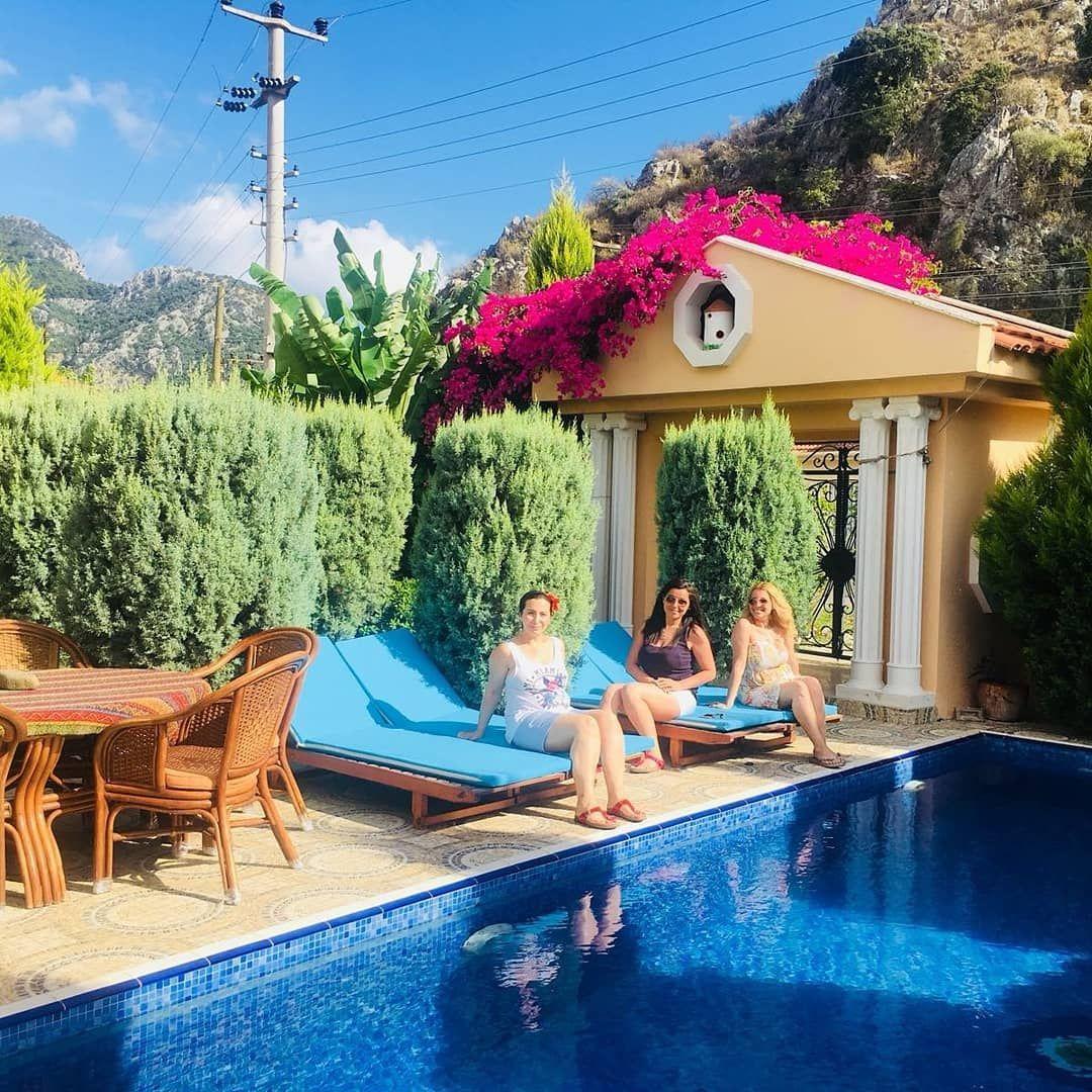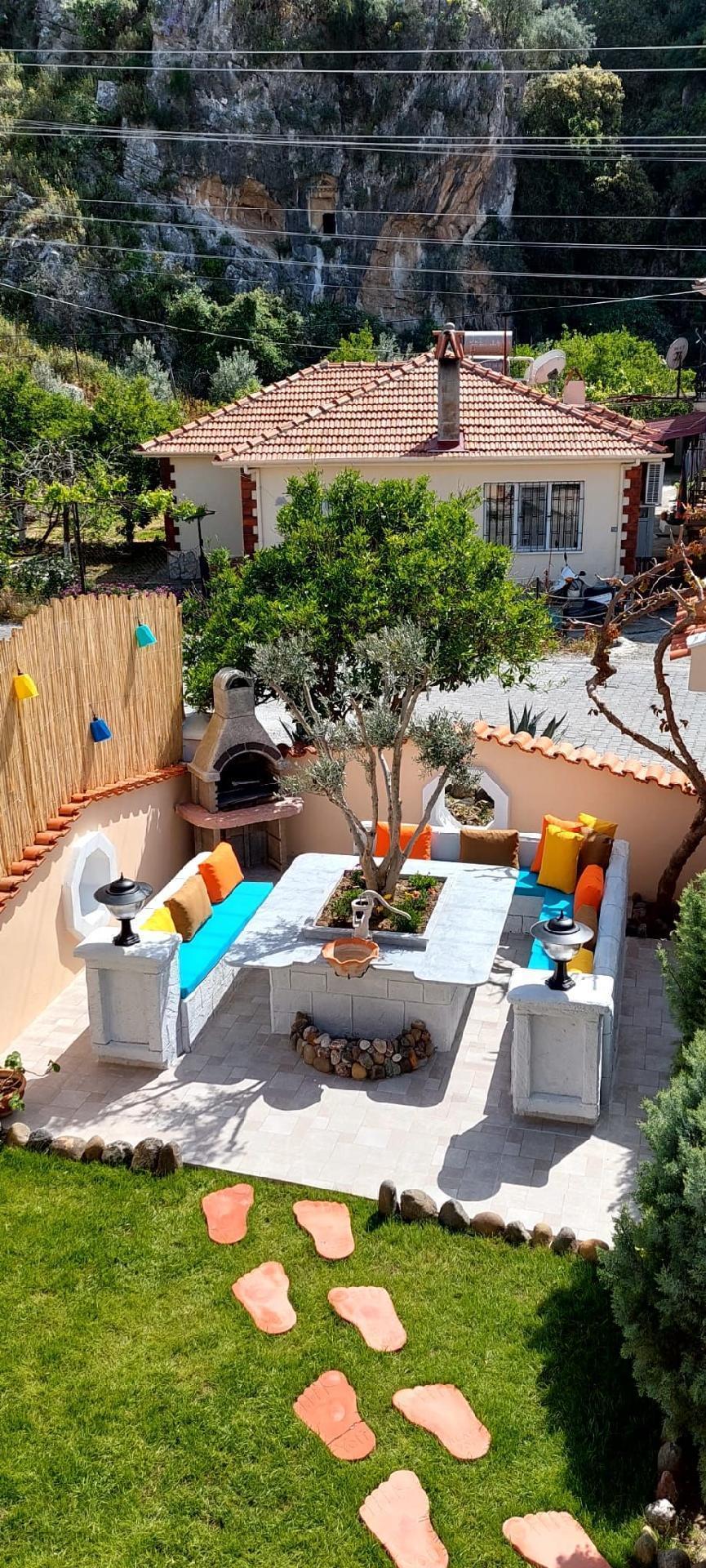 Der Außenbereich der Villa ist ebenso beeindruckend und ist auf Ruhe und Entspannung spezialisiert. Der private 36 m² große Swimmingpool mit natürlichem Salzsystem, der von einem gepflegten Garten mit alten Sträuchern, Blumen und grünem Rasen umgeben ist, lädt die Gäste ein, ruhige Momente unter der Sonne zu genießen. Ein privater Garten, Balkone, eine Terrasse, eine Außendusche, Sonnenliegen und ein Sitz- und Essbereich im Freien mit Grillmöglichkeiten bieten reichlich Gelegenheit, im Freien zu speisen und zu entspannen, während man den Blick auf das antike lykische Felsengrab genießt.