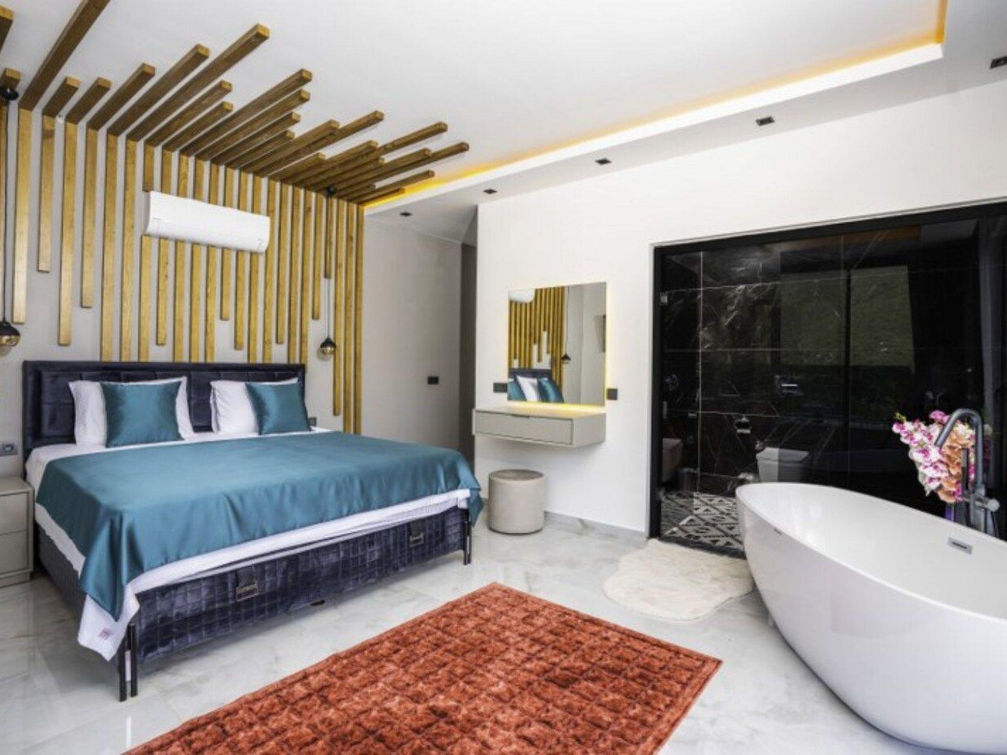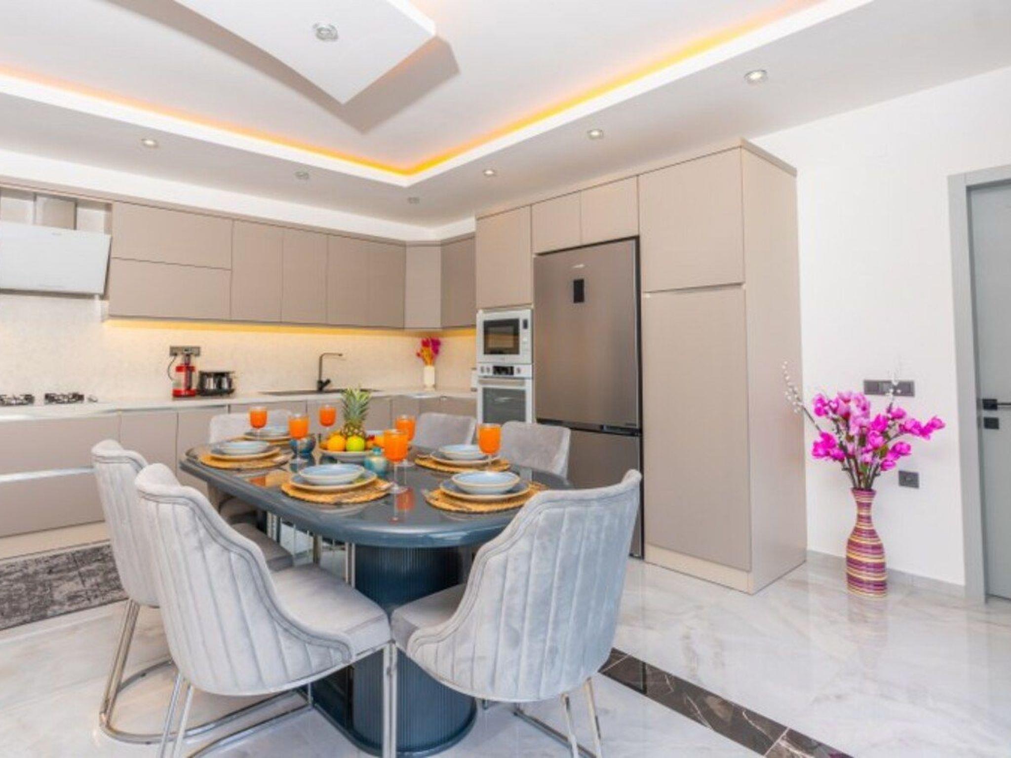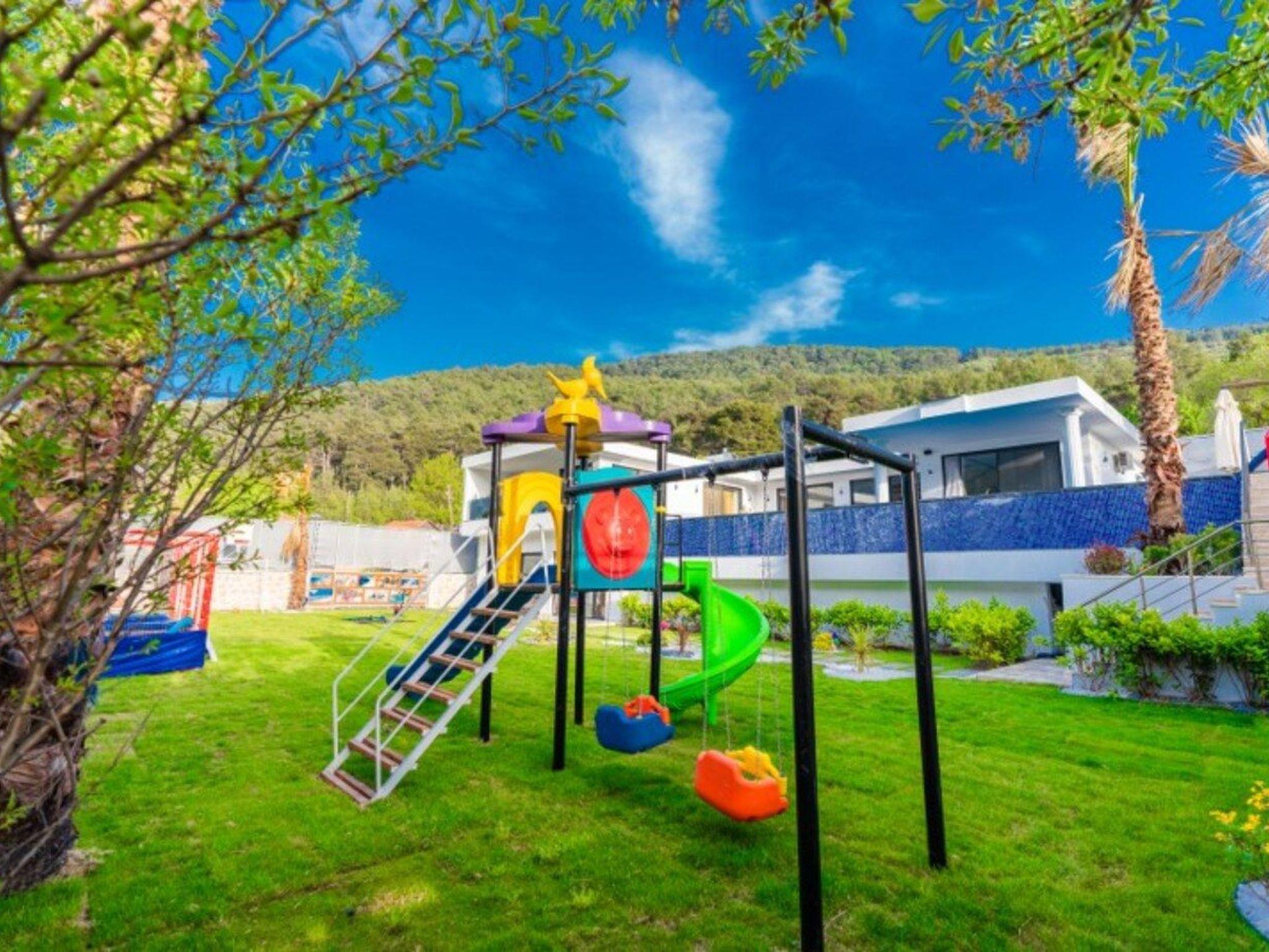 Die Villa befindet sich im Viertel Saribelen und bietet mit 3 Schlafzimmern Platz für 6 Personen. Der Pool ist abgeschirmt und der Garten ist von außen nicht einsehbar, was sie zu einer idealen Wahl für Familien macht, die Wert auf Privatsphäre legen. Unsere Villa gehört zu den ultra-luxuriösen Mietvillen und verfügt über Annehmlichkeiten wie Jacuzzi, Kinderspielplatz, Kinoraum, Sauna, Dampfbad, Fitnessraum, Innenpool, Tischtennis, Tischfußball und Playstation. Im Pool der Villa befinden sich ein Kinderbecken, ein Jacuzzi und ein Wasserfall. In unserer Villa, in der an alles gedacht wurde, müssen Sie nur noch unvergessliche Momente mit Ihren Liebsten erleben und den Urlaub genießen.