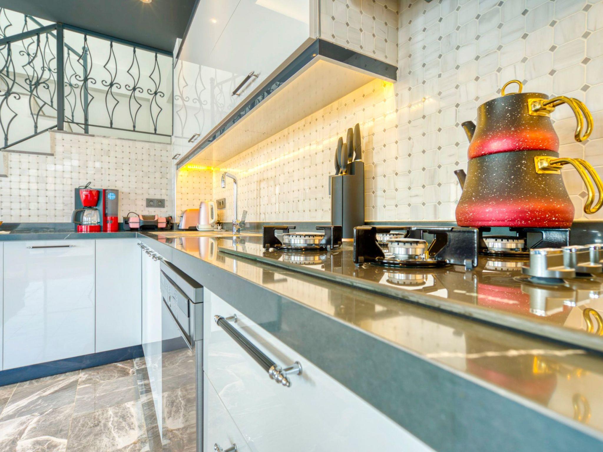 Die Lage der Villa ist ideal für Erkundungstouren und ruhige Entspannung gleichermaßen. Der Strand ist nur eine kurze Autofahrt entfernt, während der nächste Lebensmittelhandel bequem zu Fuß erreichbar ist. Die einzigartige Position ermöglicht es den Gästen, die Schönheit der anatolischen Landschaft zu erkunden, sei es durch Wanderungen, Bootsfahrten oder Kulturausflüge.
